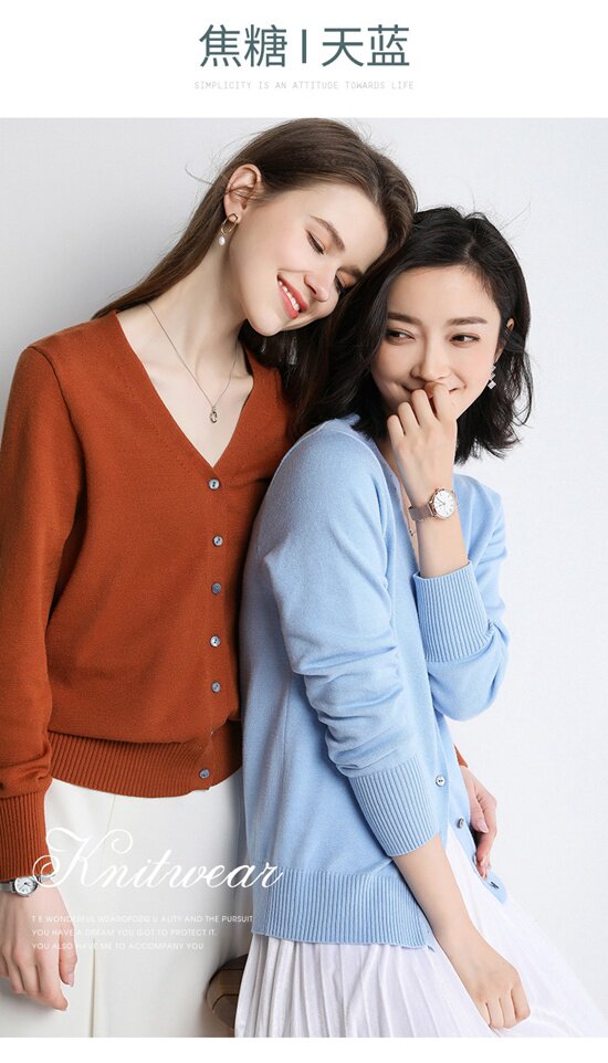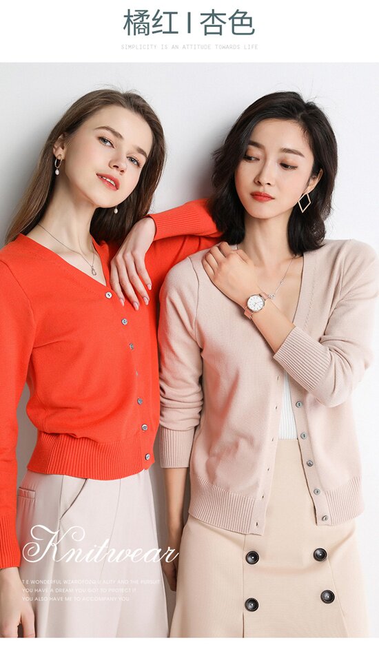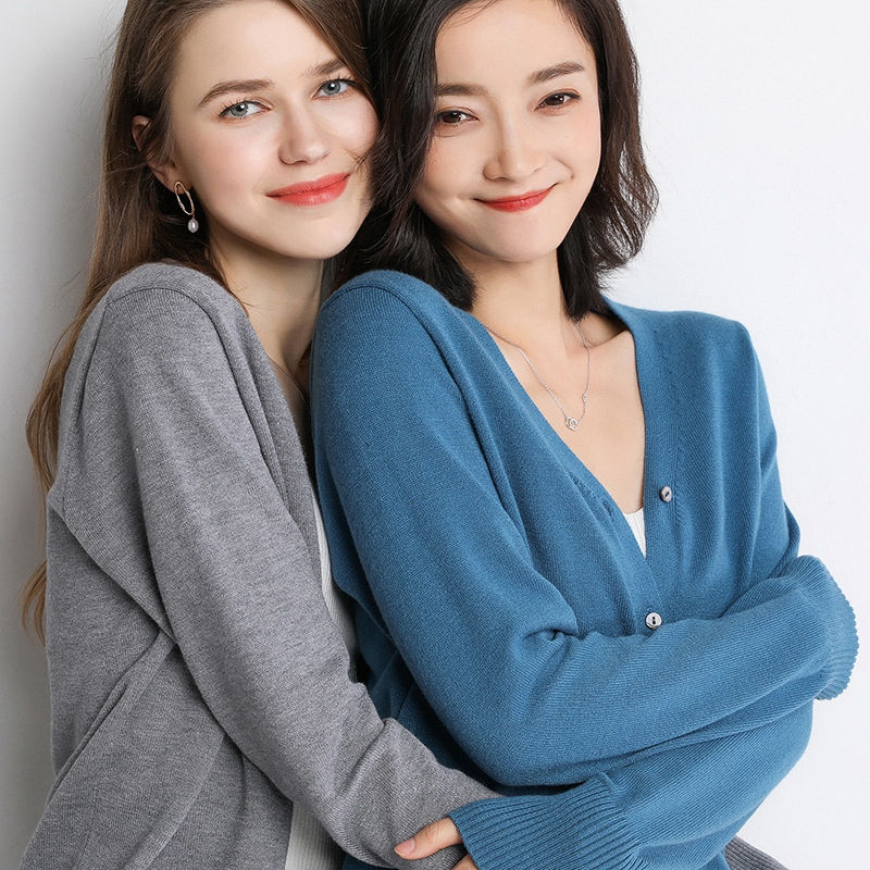 Осенний шерстяной кашемировый кардиган, рубашка, трикотажная куртка, короткий свитер, V-образный вырез