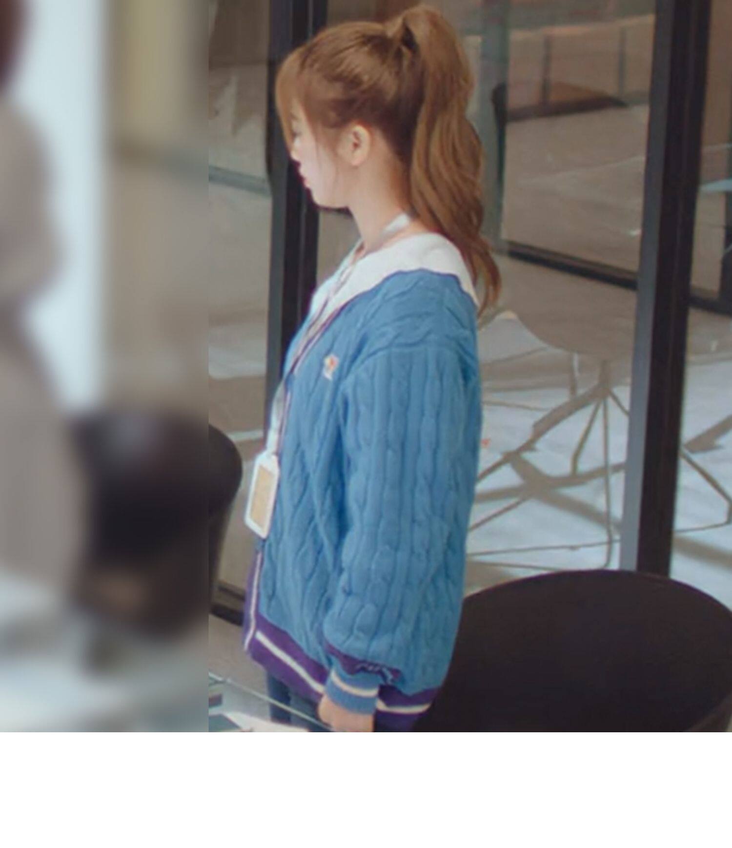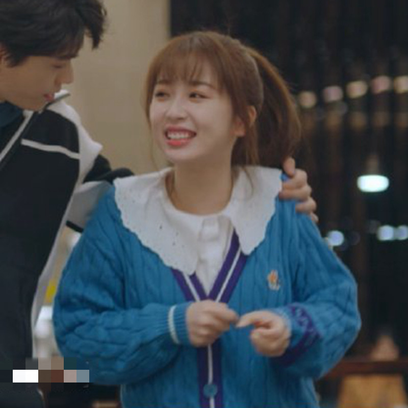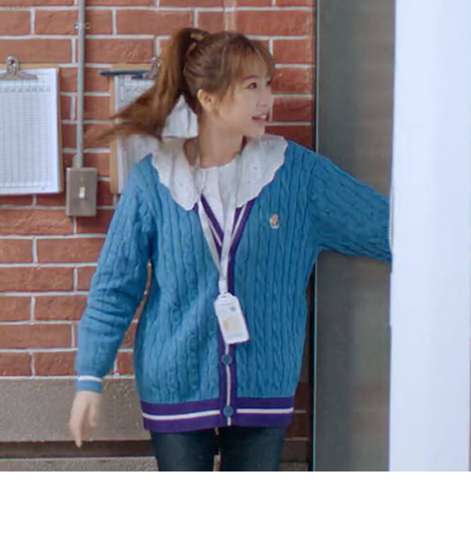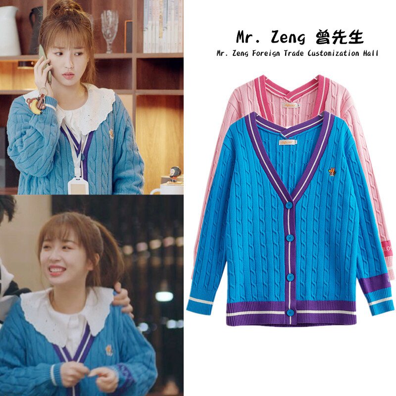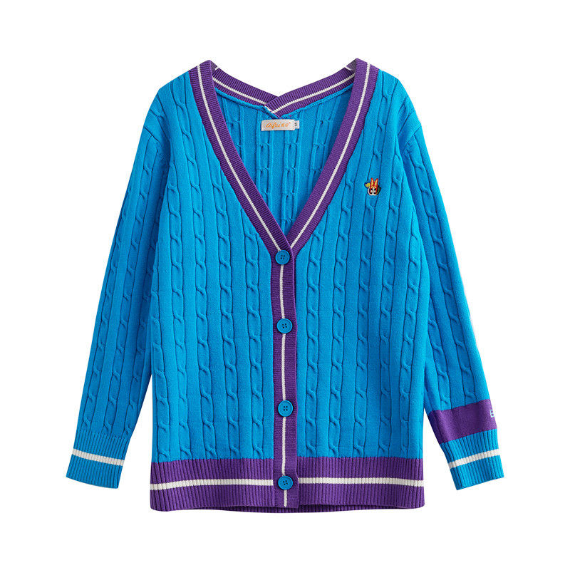 Синий трикотажный кардиган, свитер, куртка, в корейском стиле