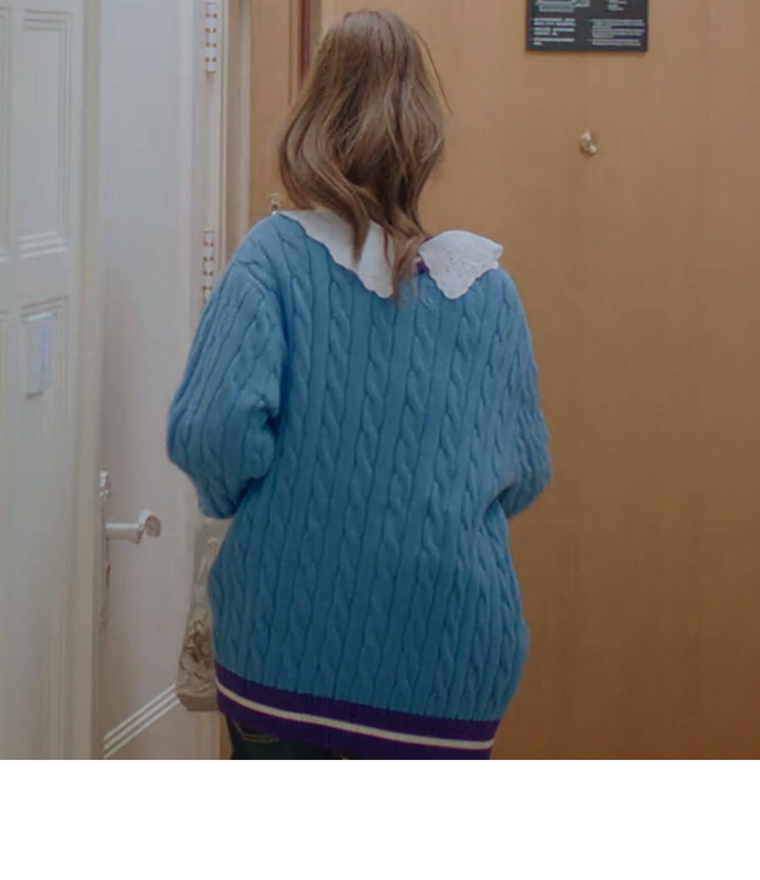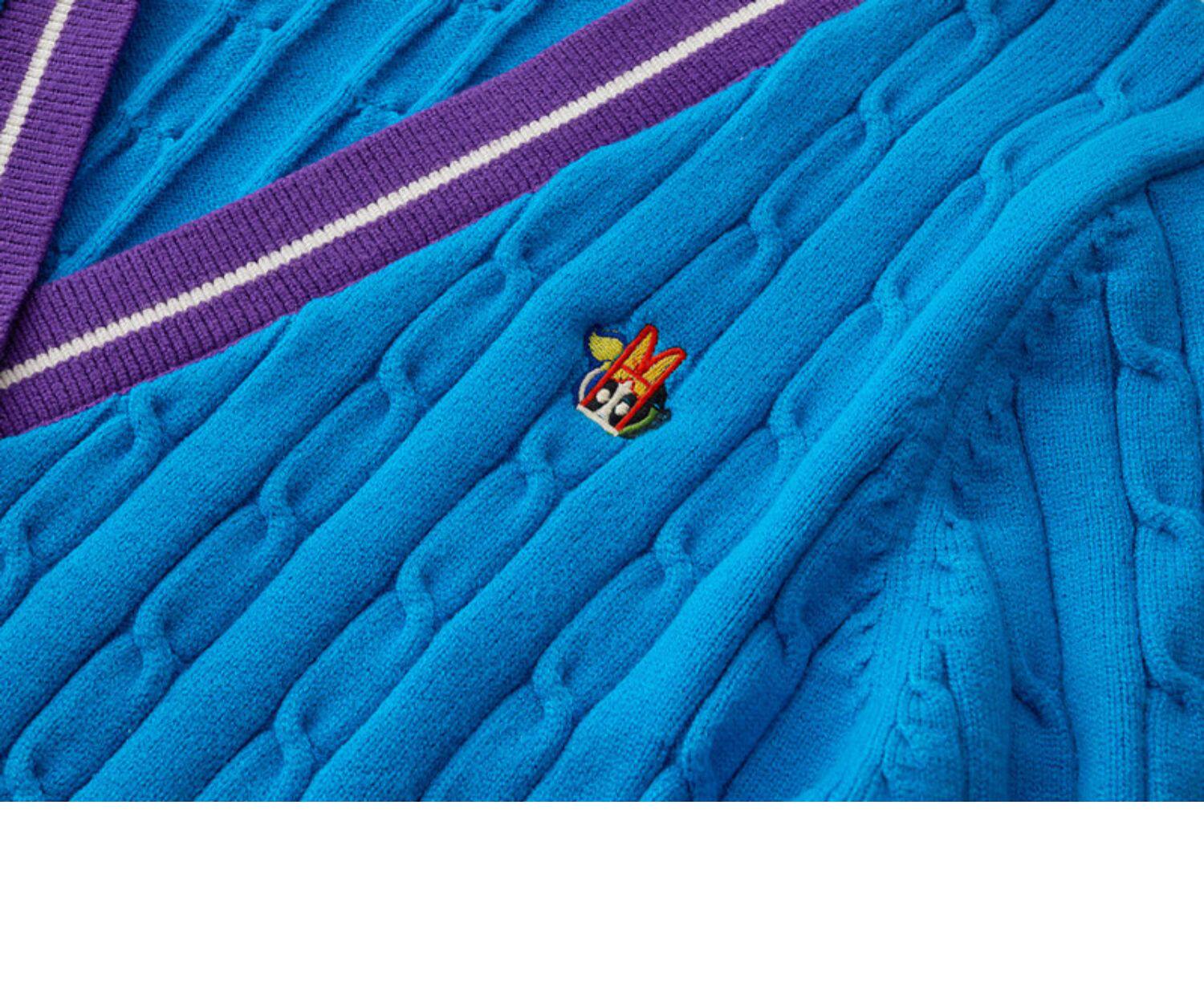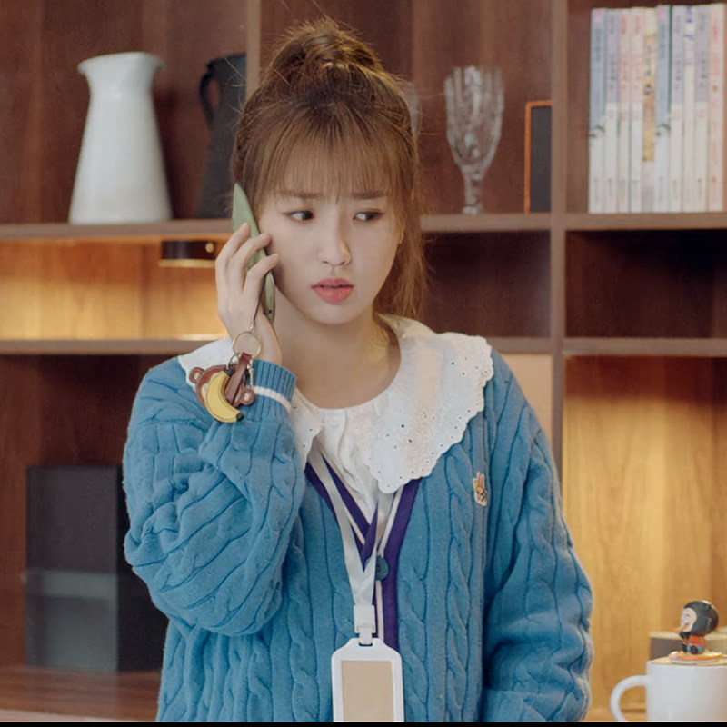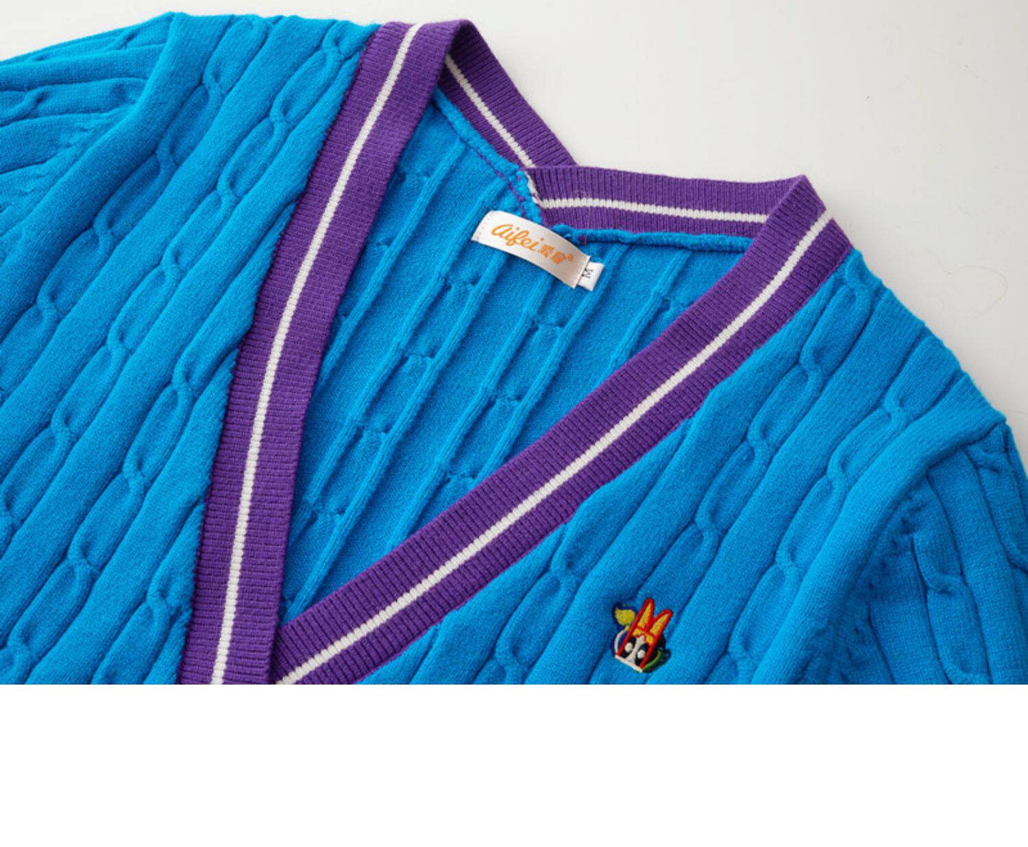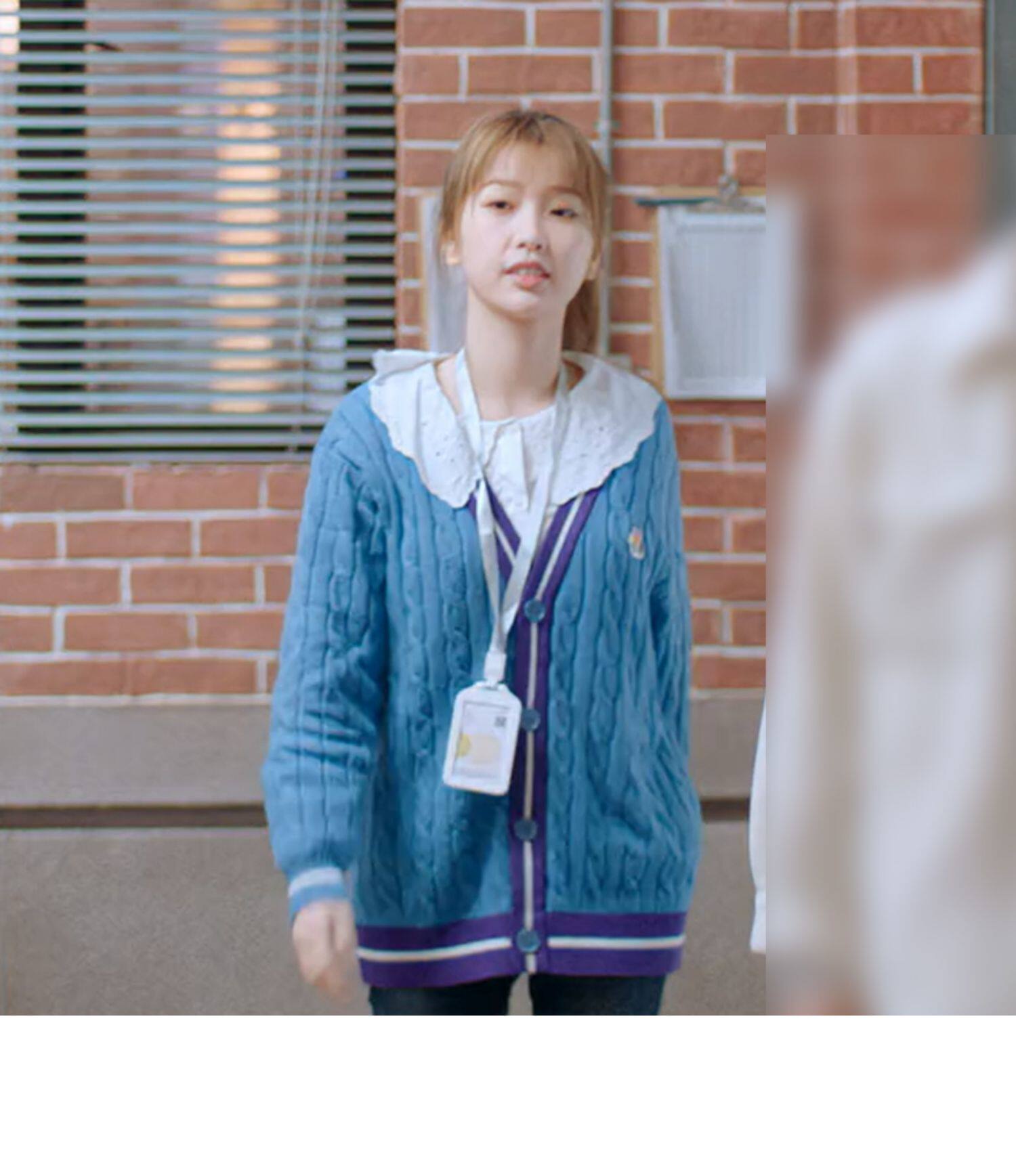 Синий трикотажный кардиган, свитер, куртка, в корейском стиле