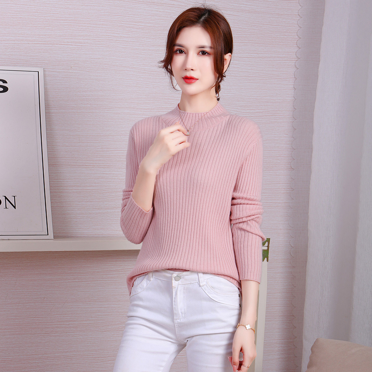 Демисезонный милый брендовый шерстяной комфортный модный свитер, по фигуре