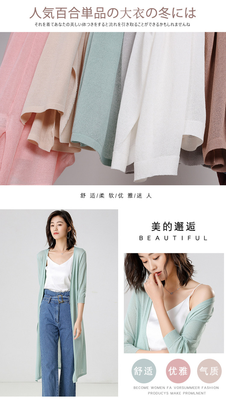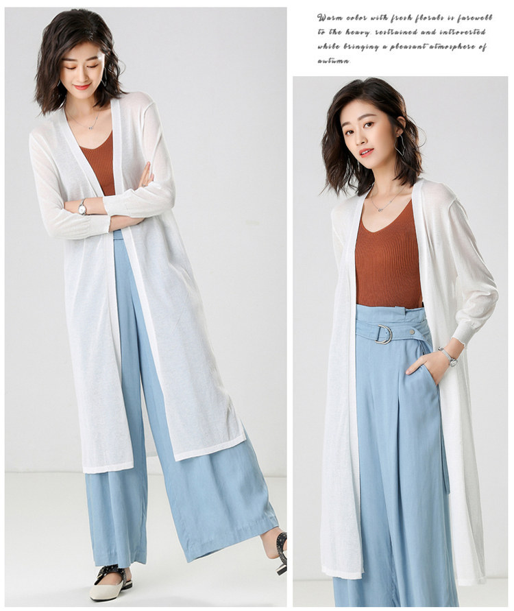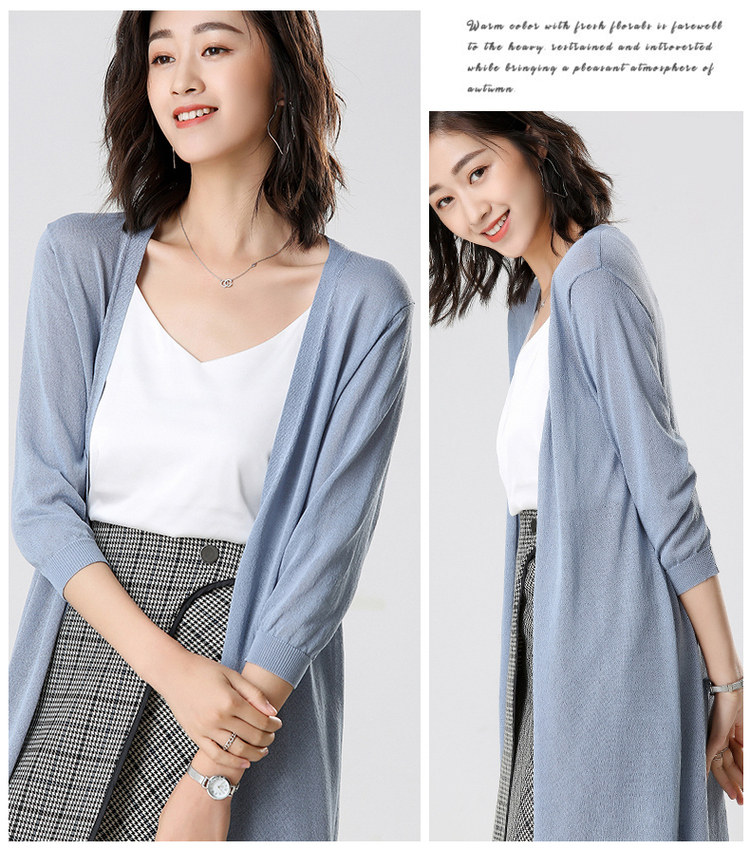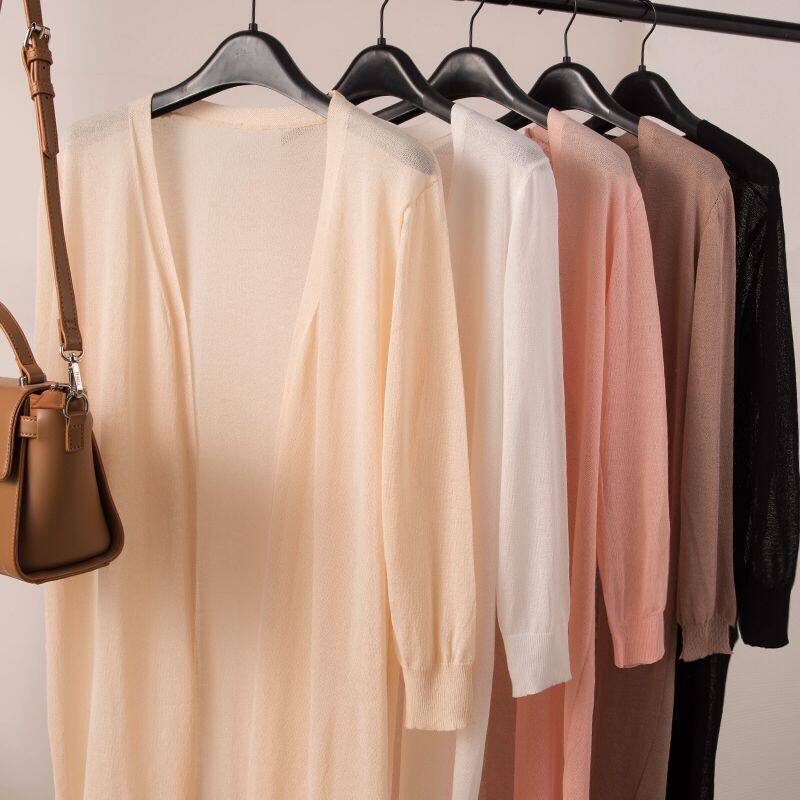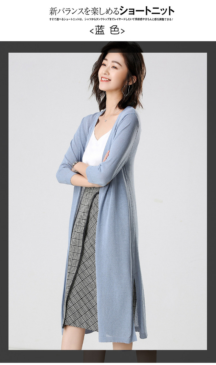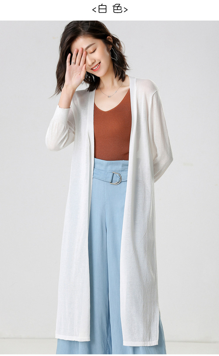 Трикотажный длинный летний тонкий кардиган, накидка, средней длины, защита от солнца, в корейском стиле, свободный крой