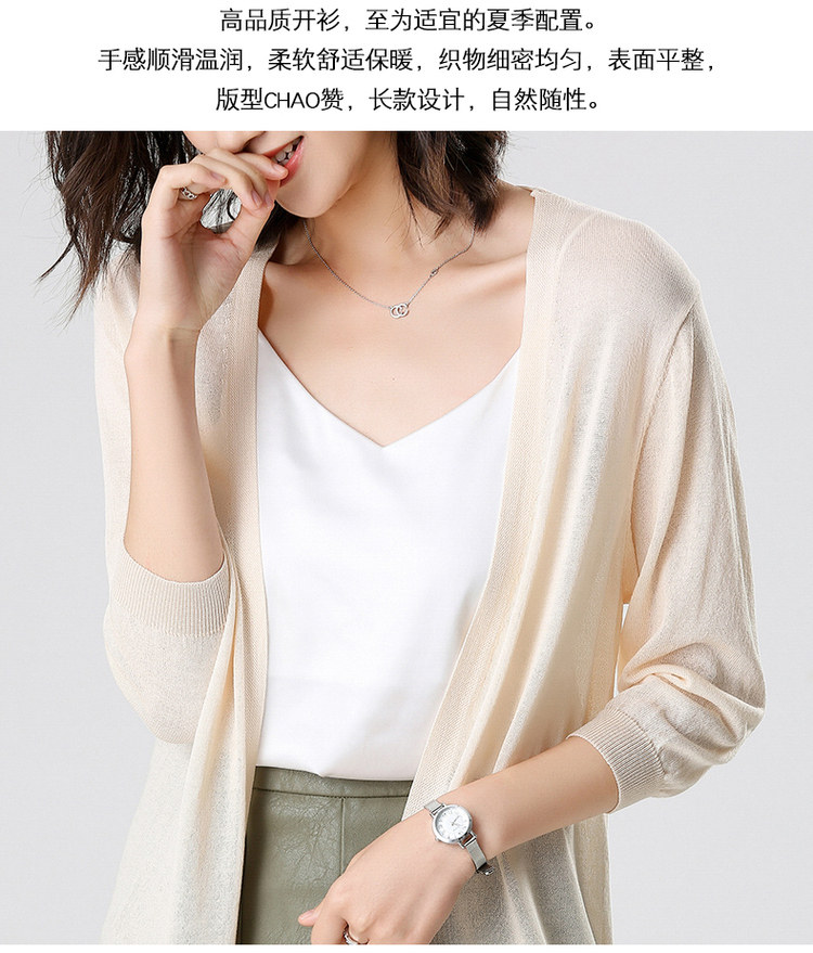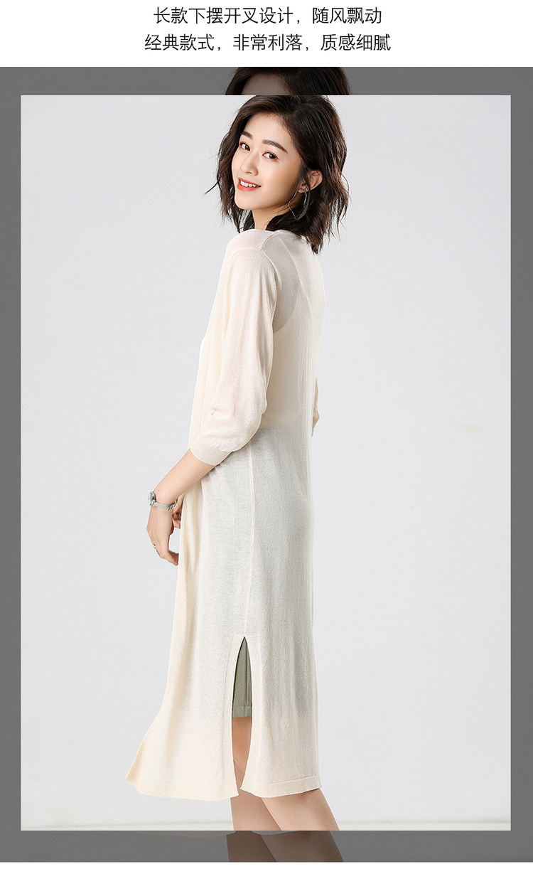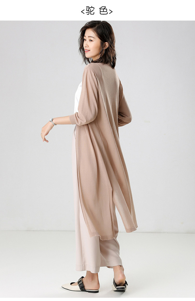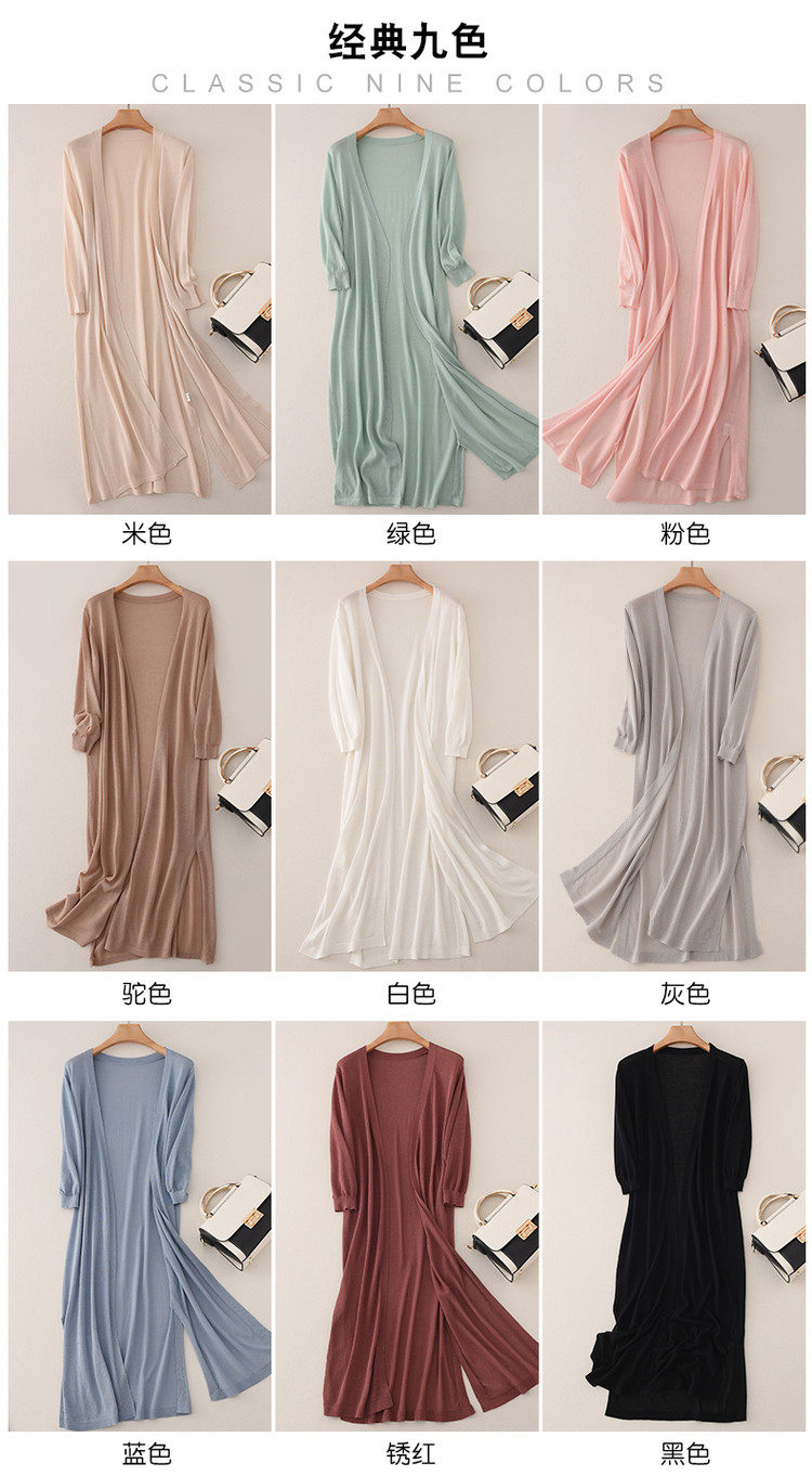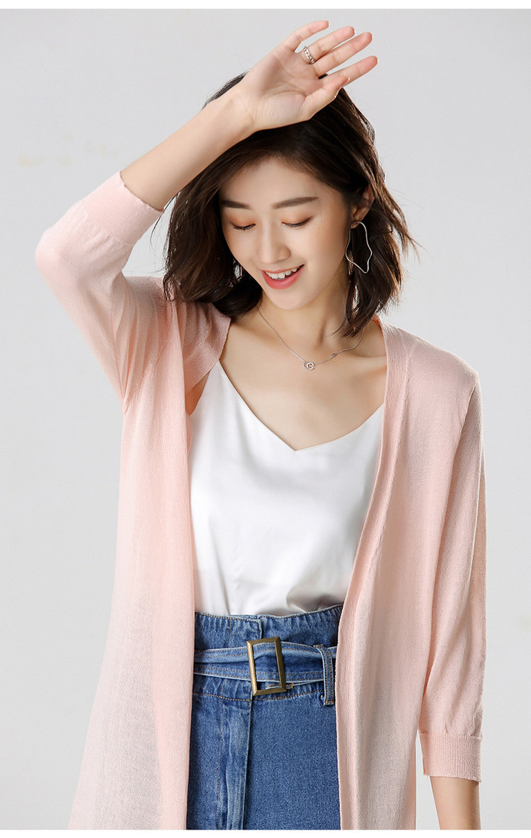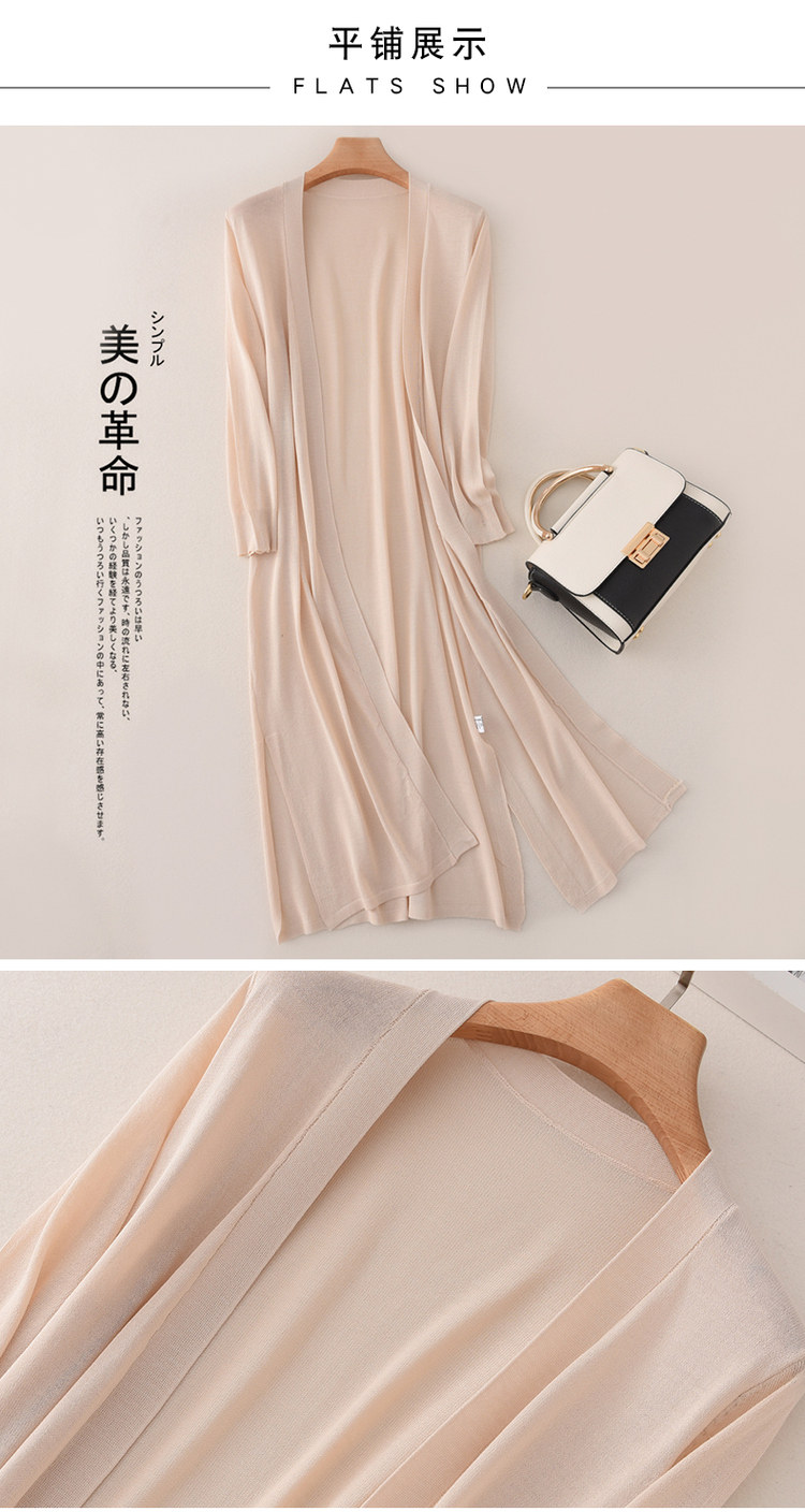Трикотажный длинный летний тонкий кардиган, накидка, средней длины, защита от солнца, в корейском стиле, свободный крой