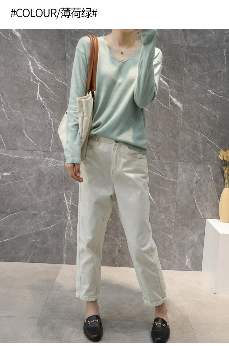Весенний кашемировый короткий трикотажный свитер, V-образный вырез, облегающий крой