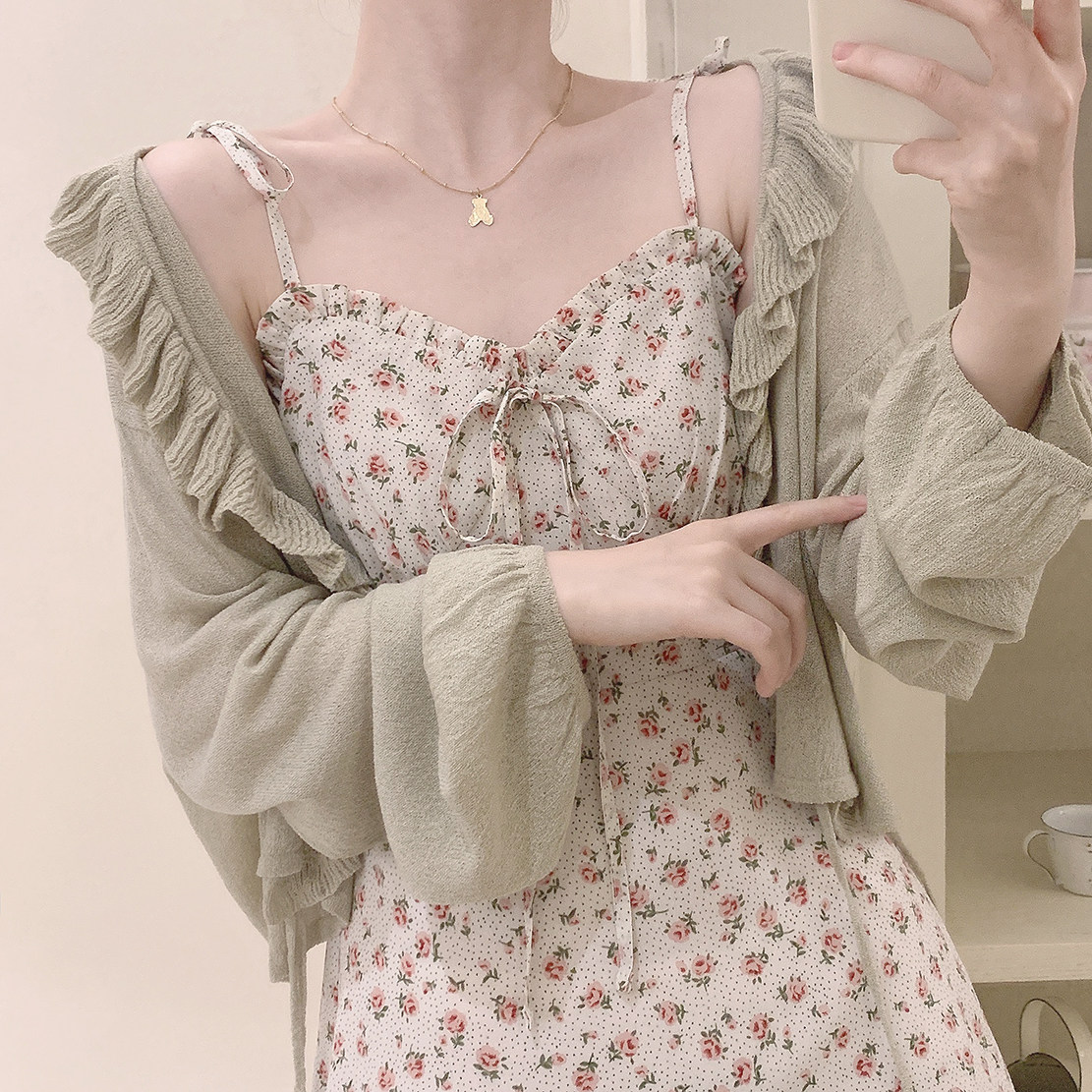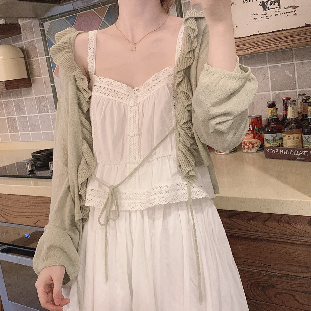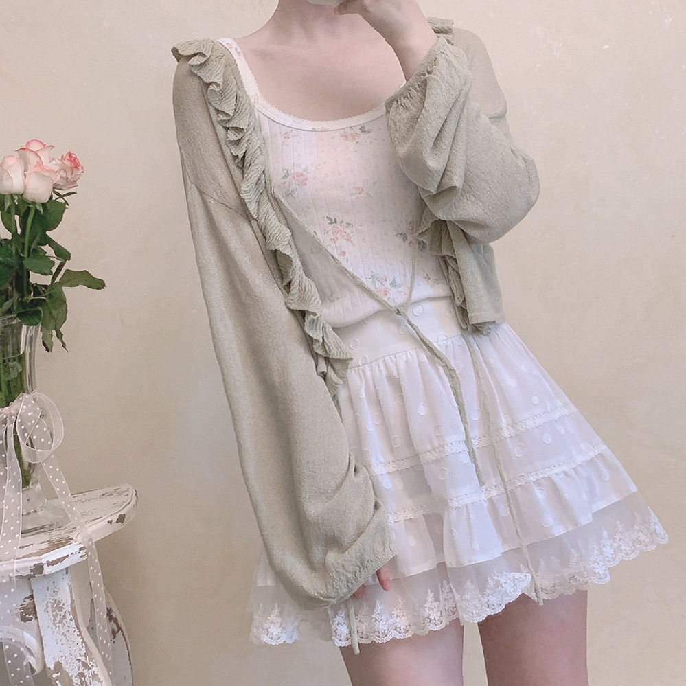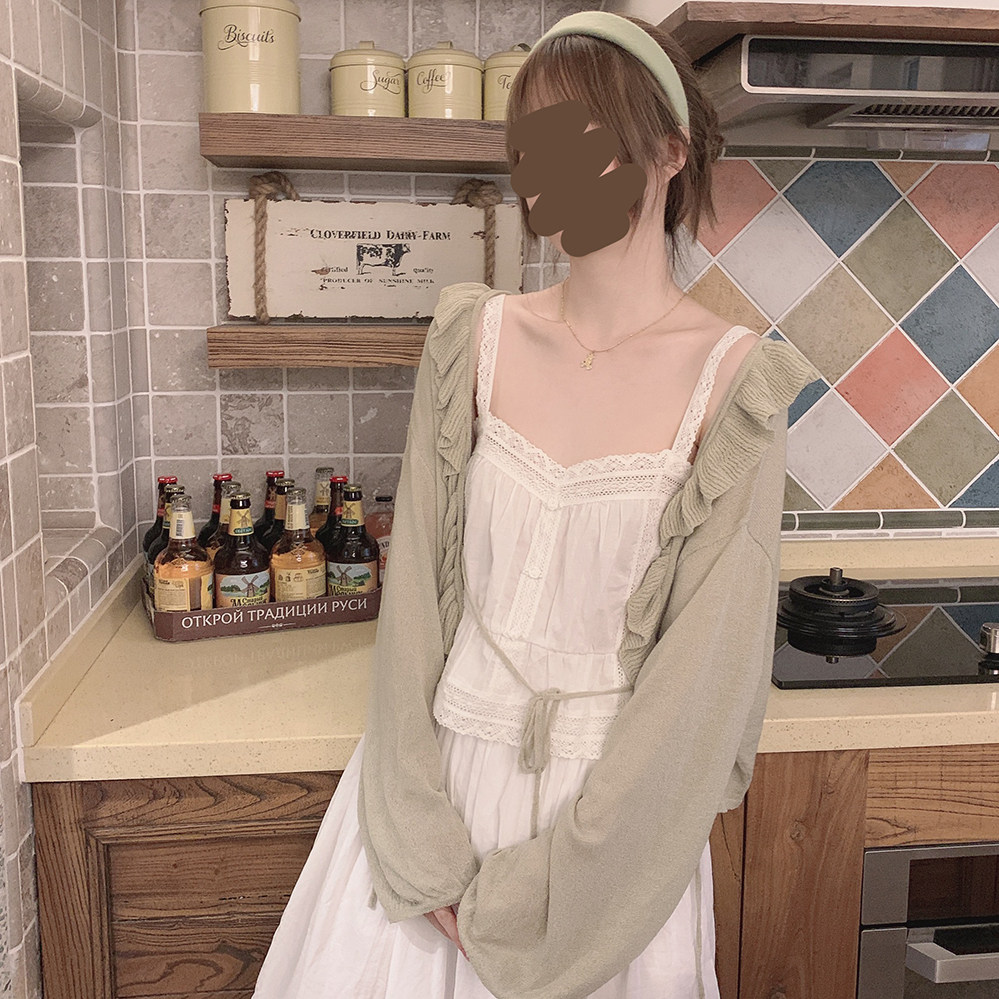 TT Make Make Retro, нежный зеленый рыхлый рукав рукав летний воздух с кондиционером, вязаная кардиган k