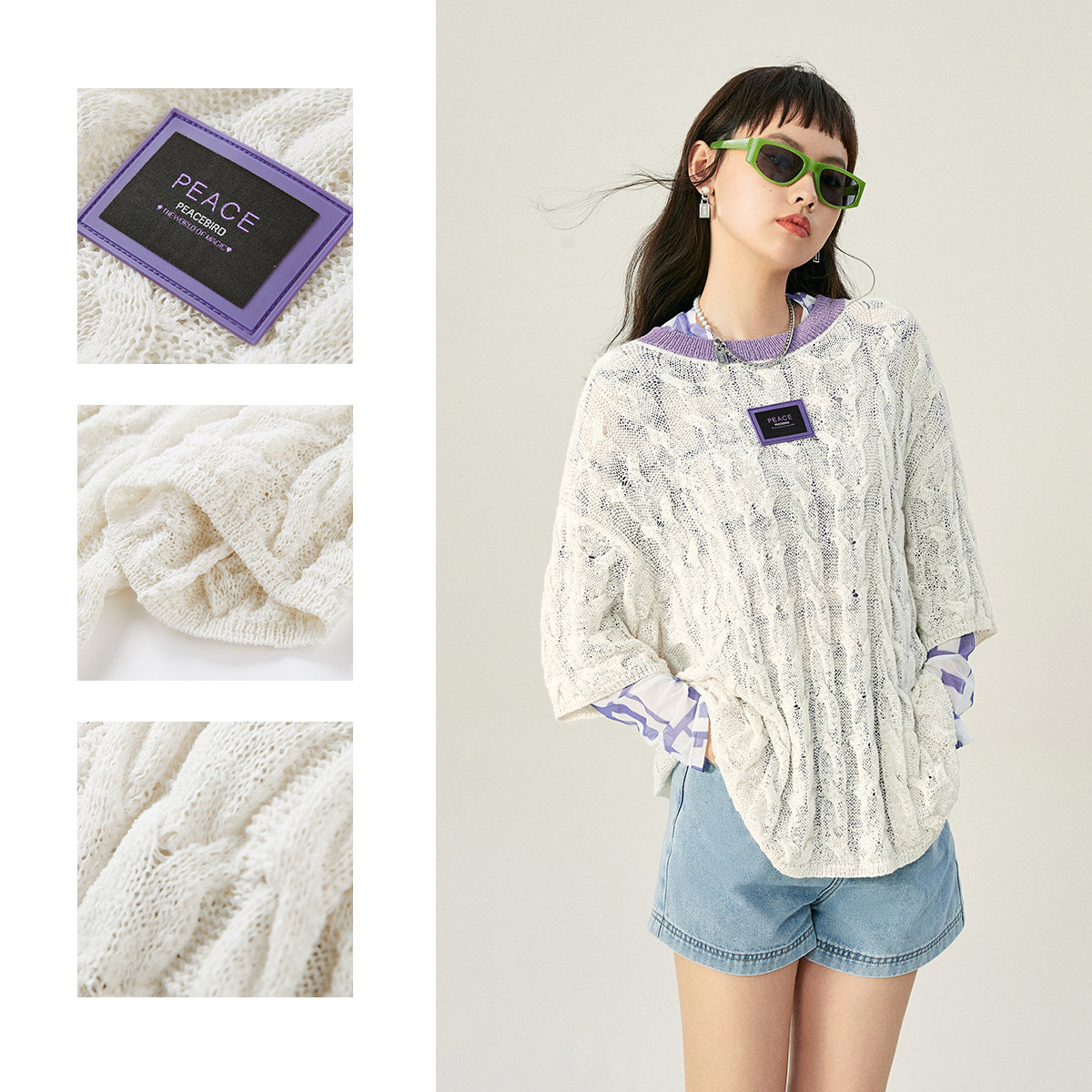 Трикотажный тонкий белый свитер, коллекция 2022, оверсайз