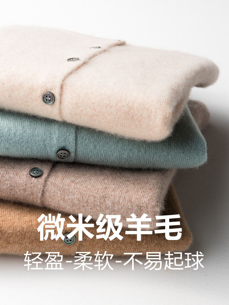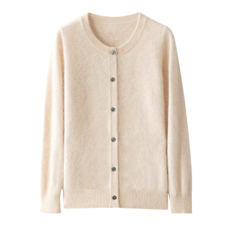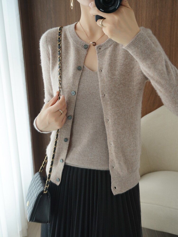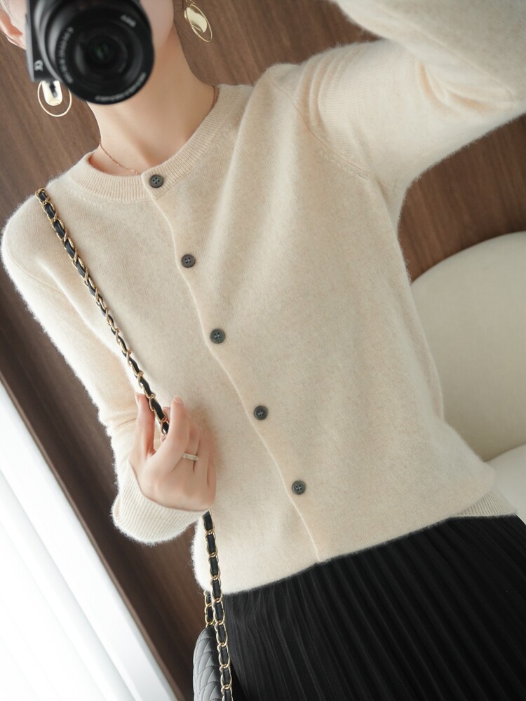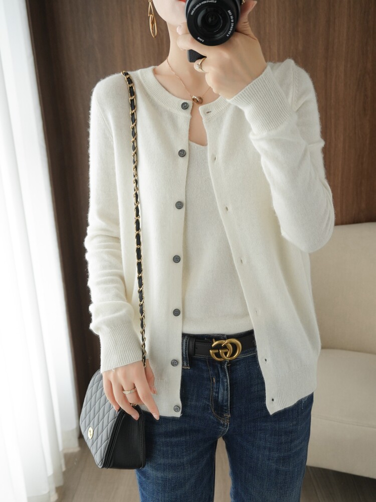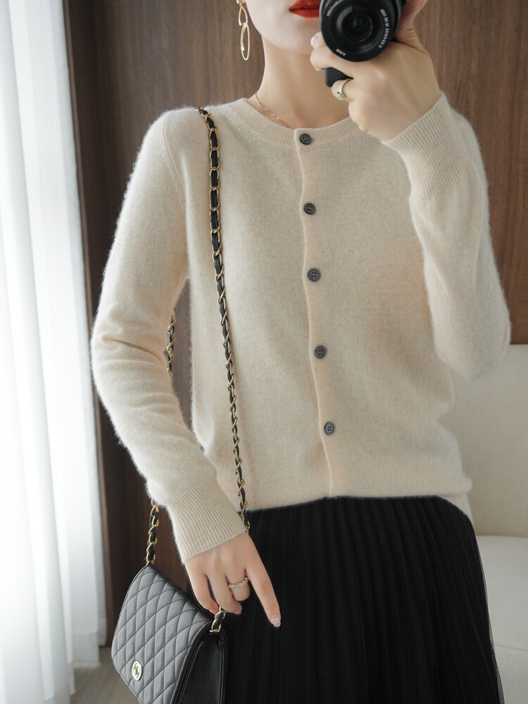 Шерстяной кардиган, трикотажная куртка с круглым воротником, осенний кашемировый свитер