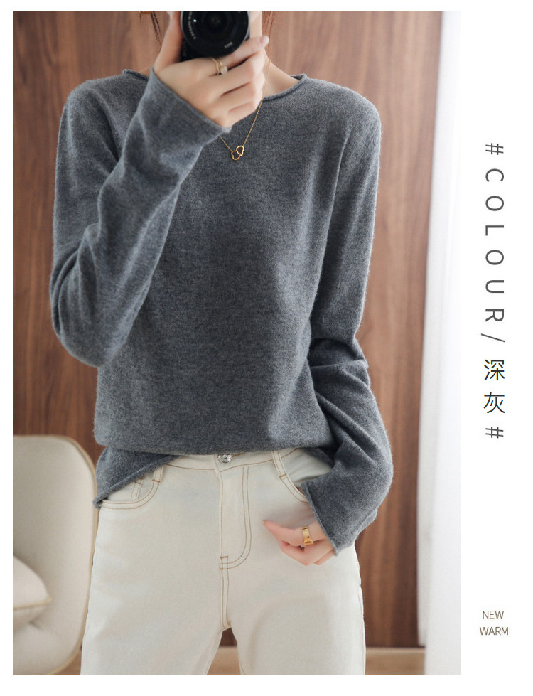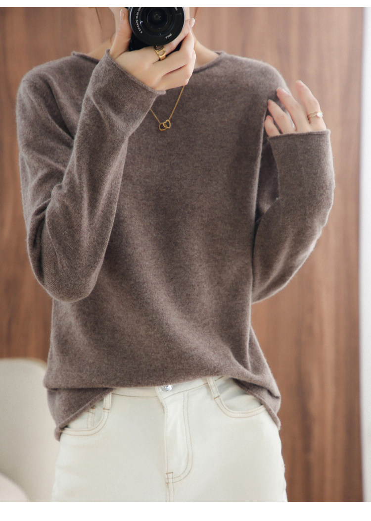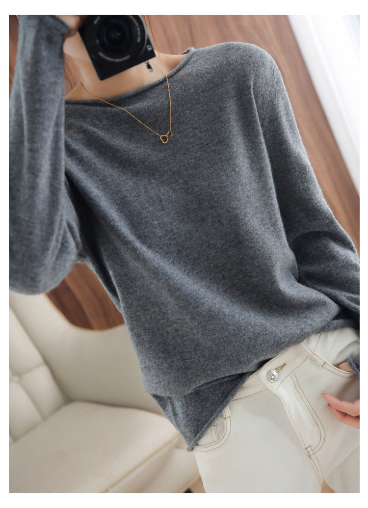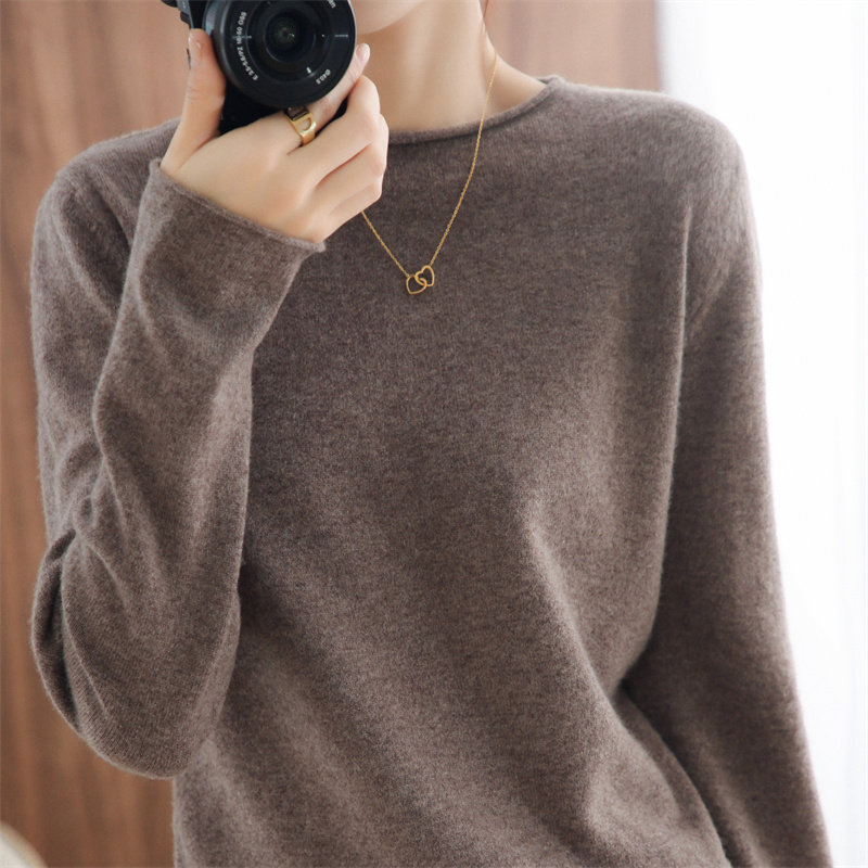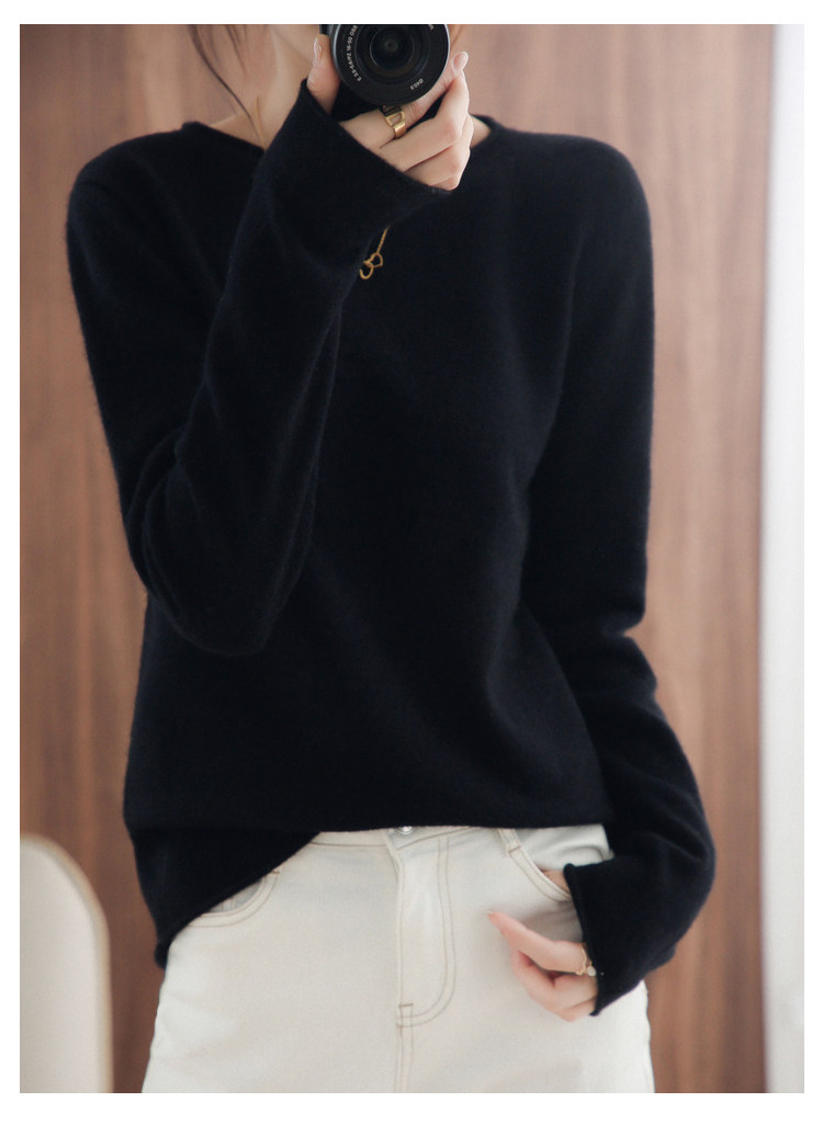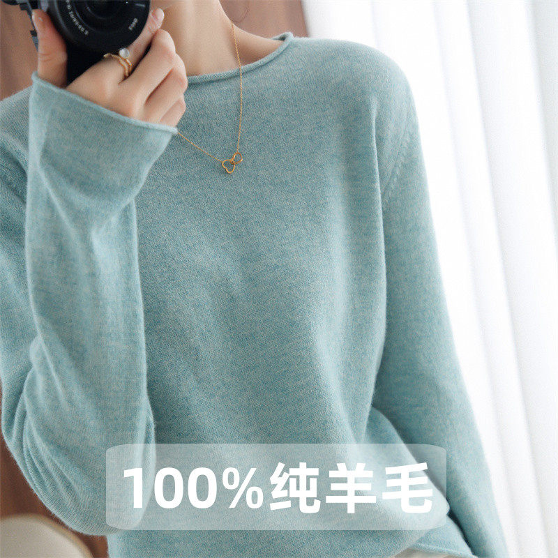 Шерстяной демисезонный трикотажный свитер с круглым воротником, оверсайз