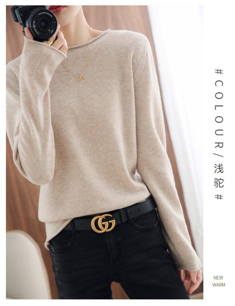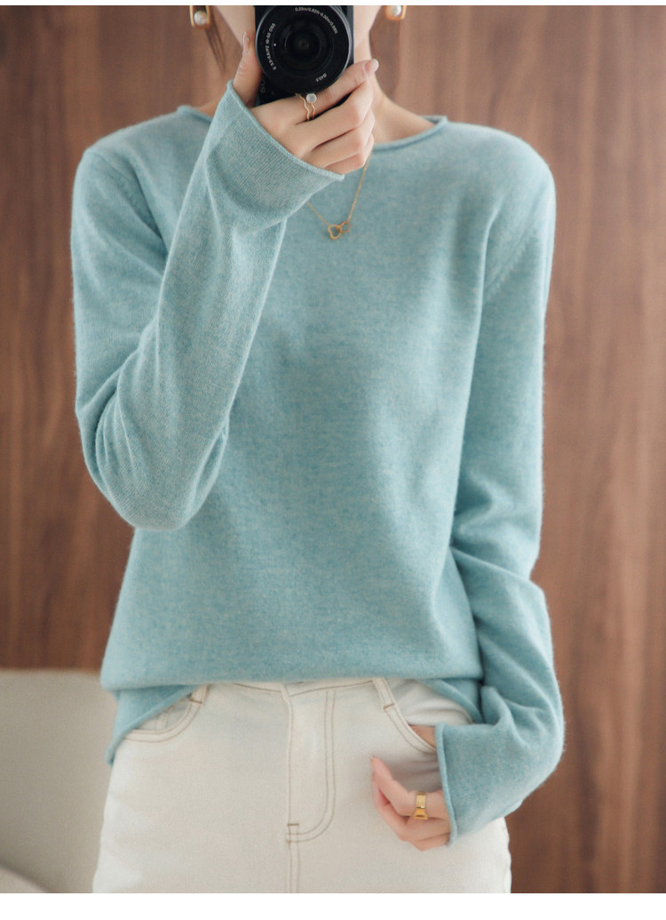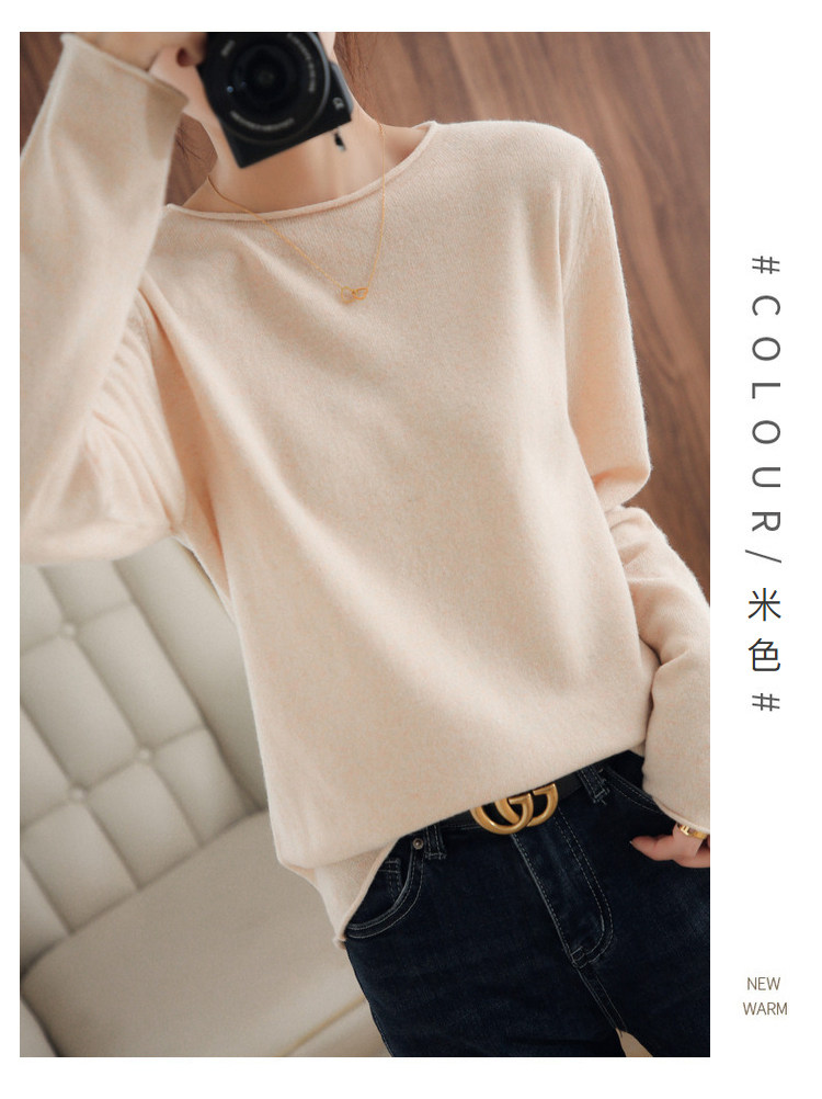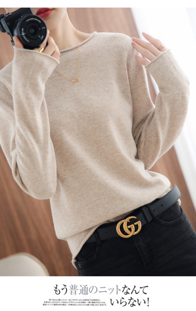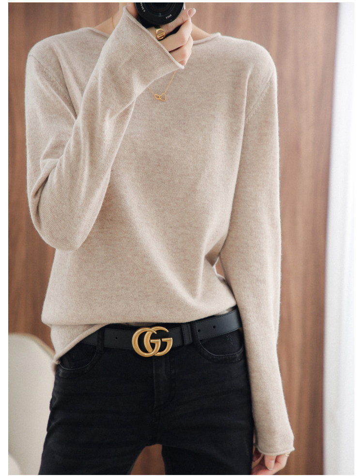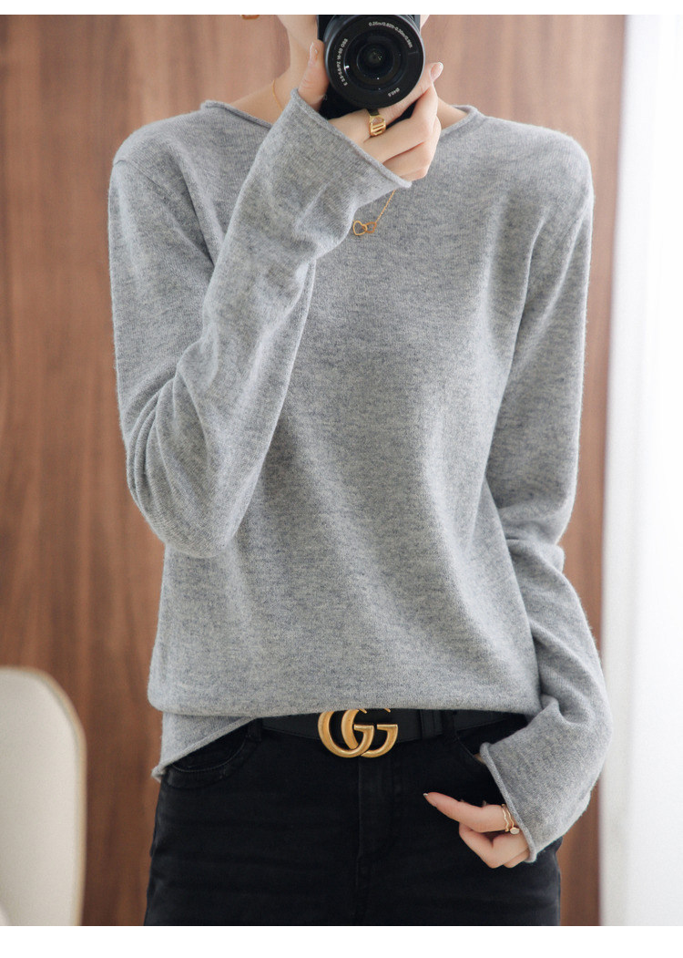 Шерстяной демисезонный трикотажный свитер с круглым воротником, оверсайз