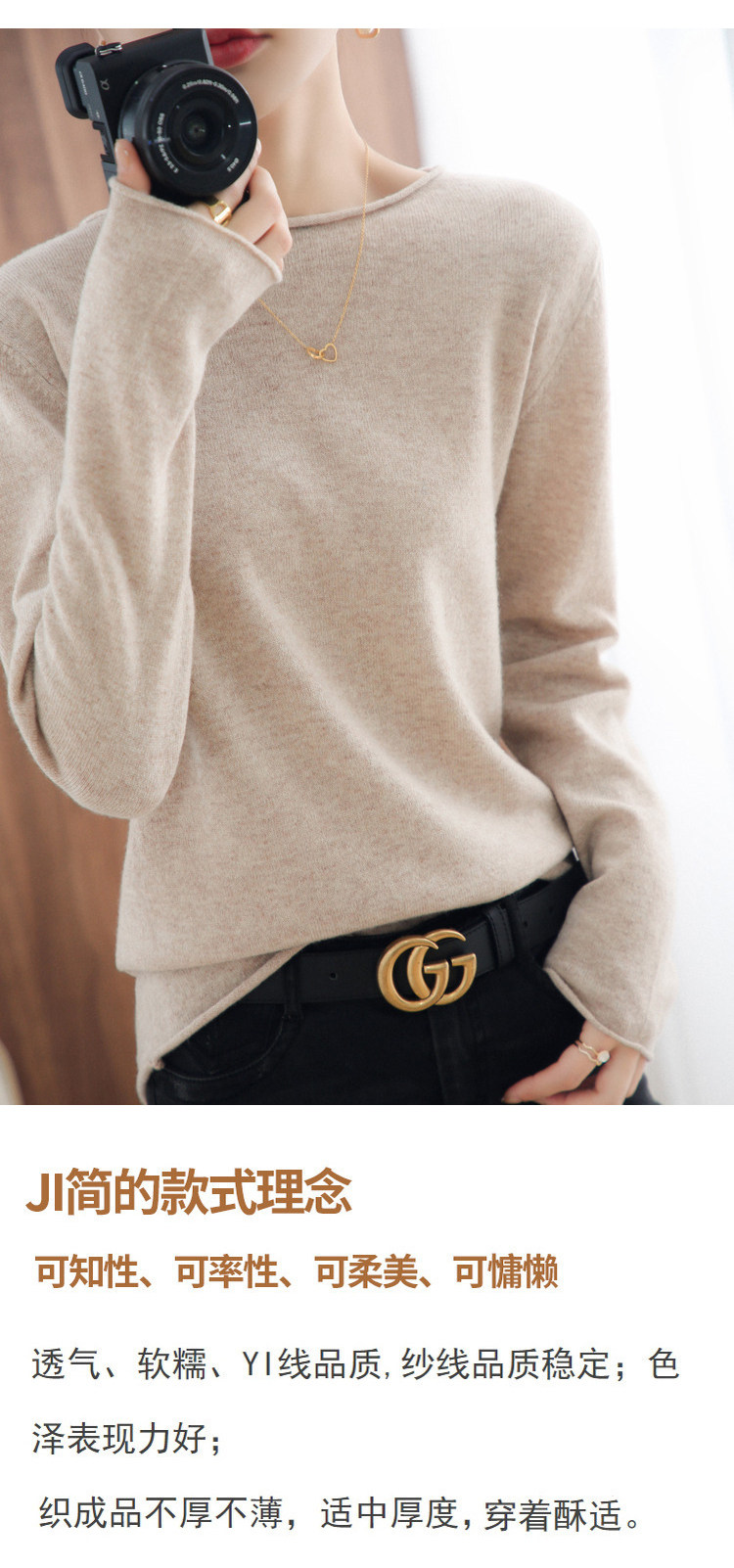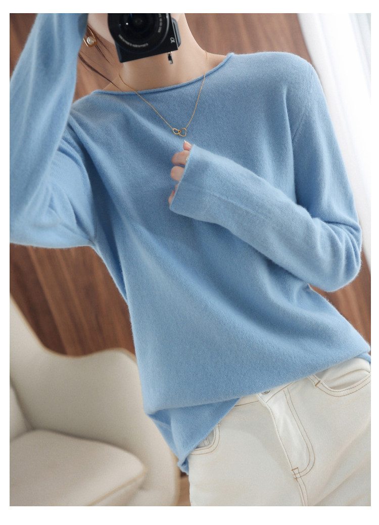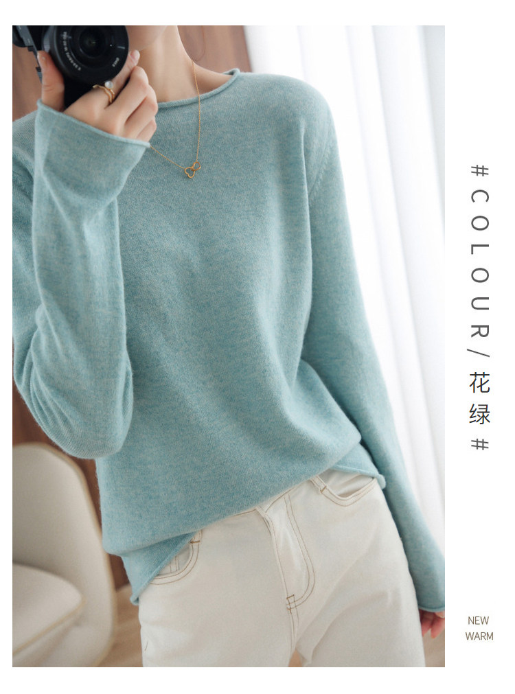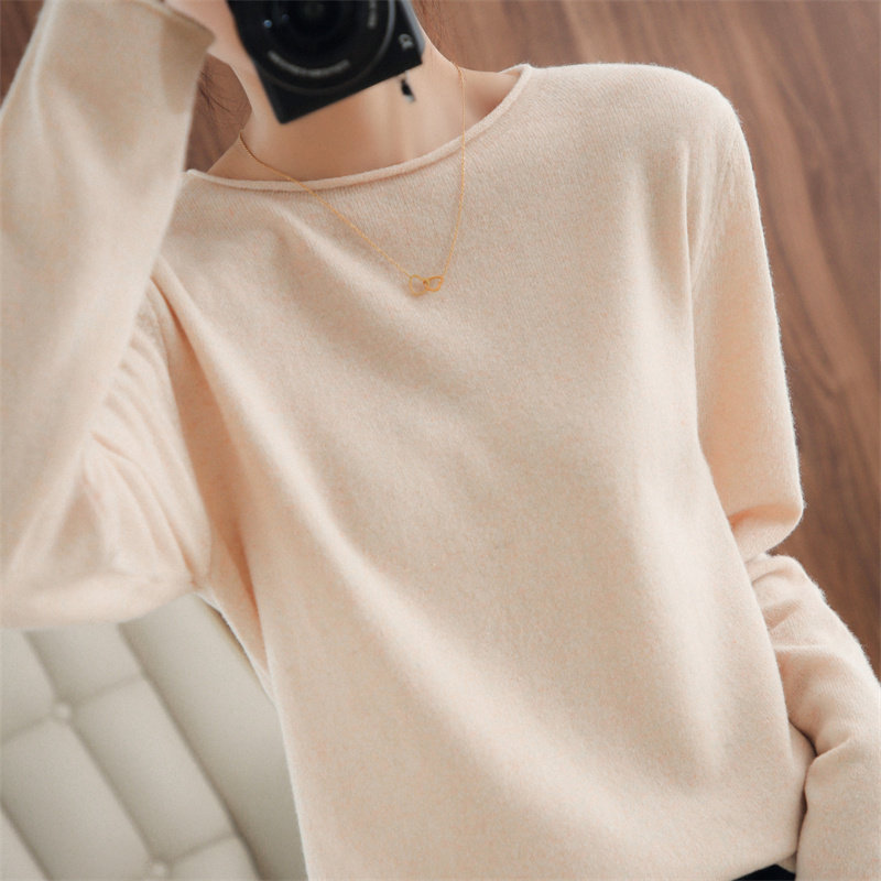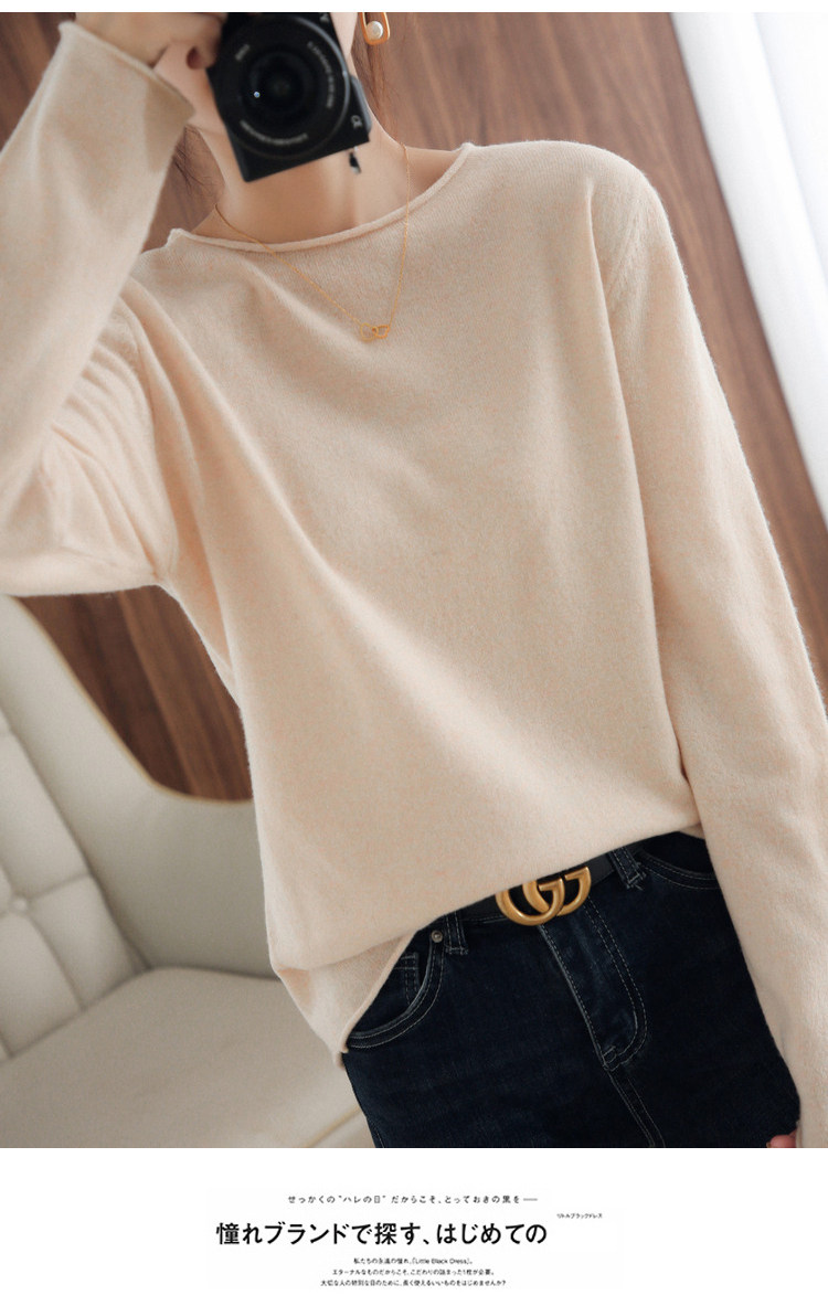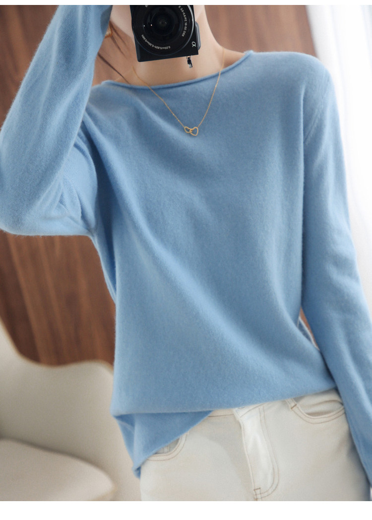 Шерстяной демисезонный трикотажный свитер с круглым воротником, оверсайз