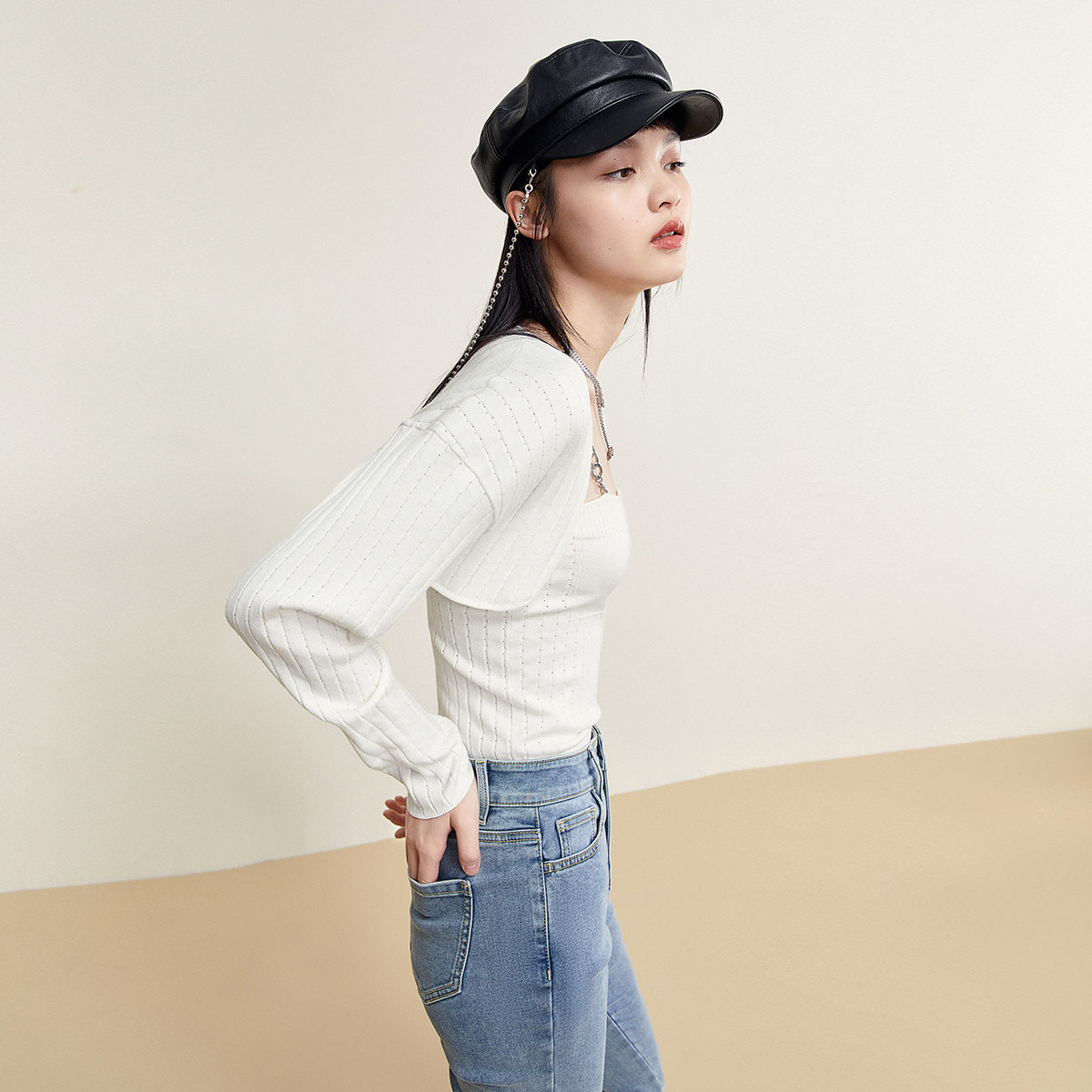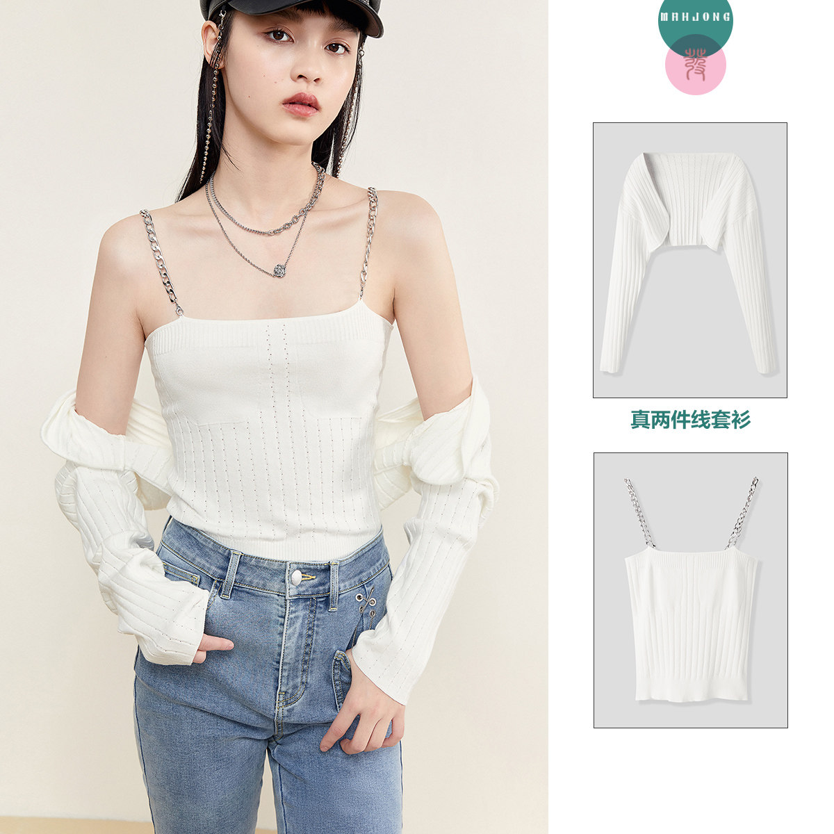 Трикотажный комплект, весенний белый свитер, 2022, в обтяжку