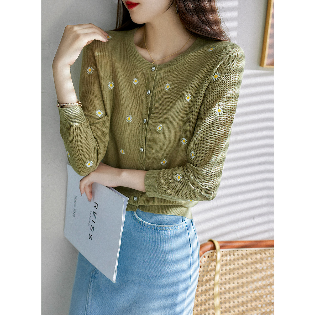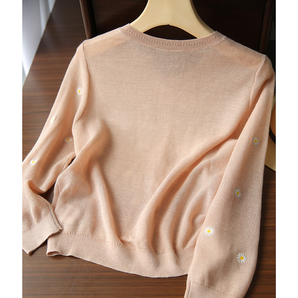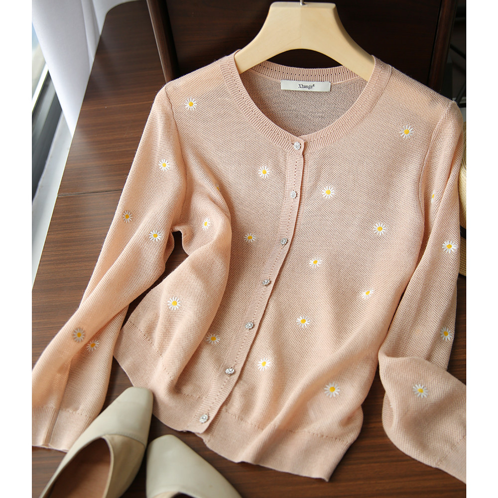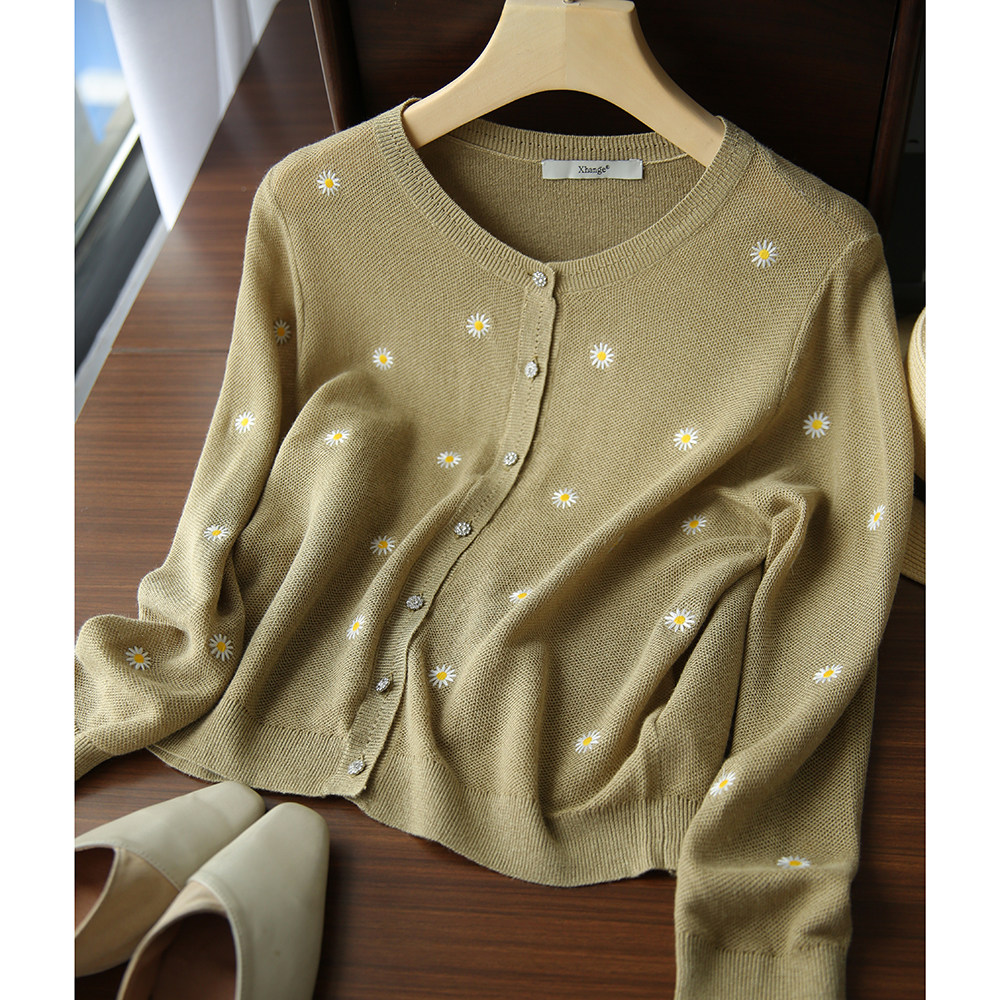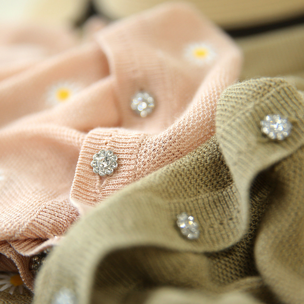 の [ZY358166MG] Очаровательная маленькая вышивка DAISY, дышащая вязаная кастора -вязаная рубашка кардиган