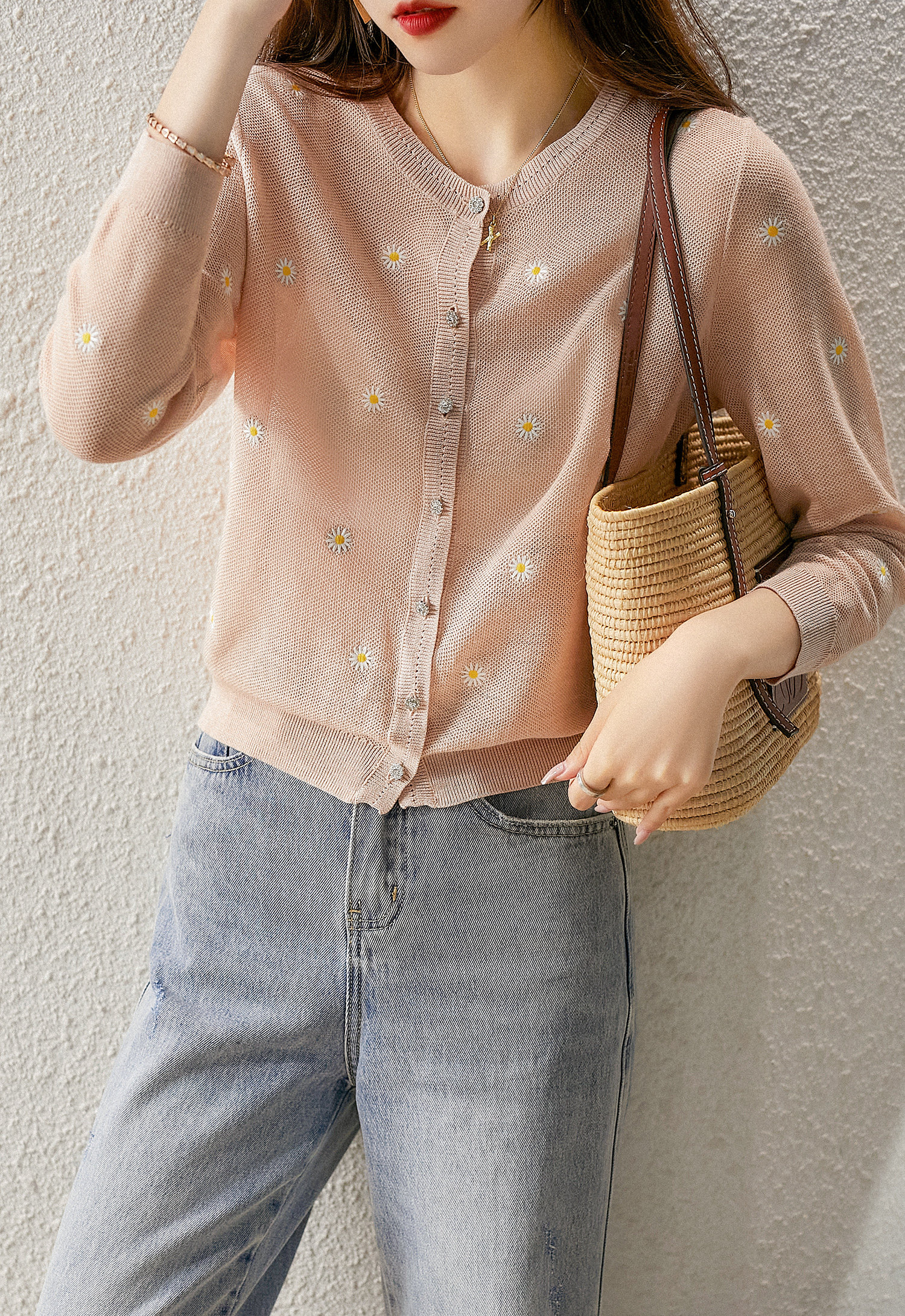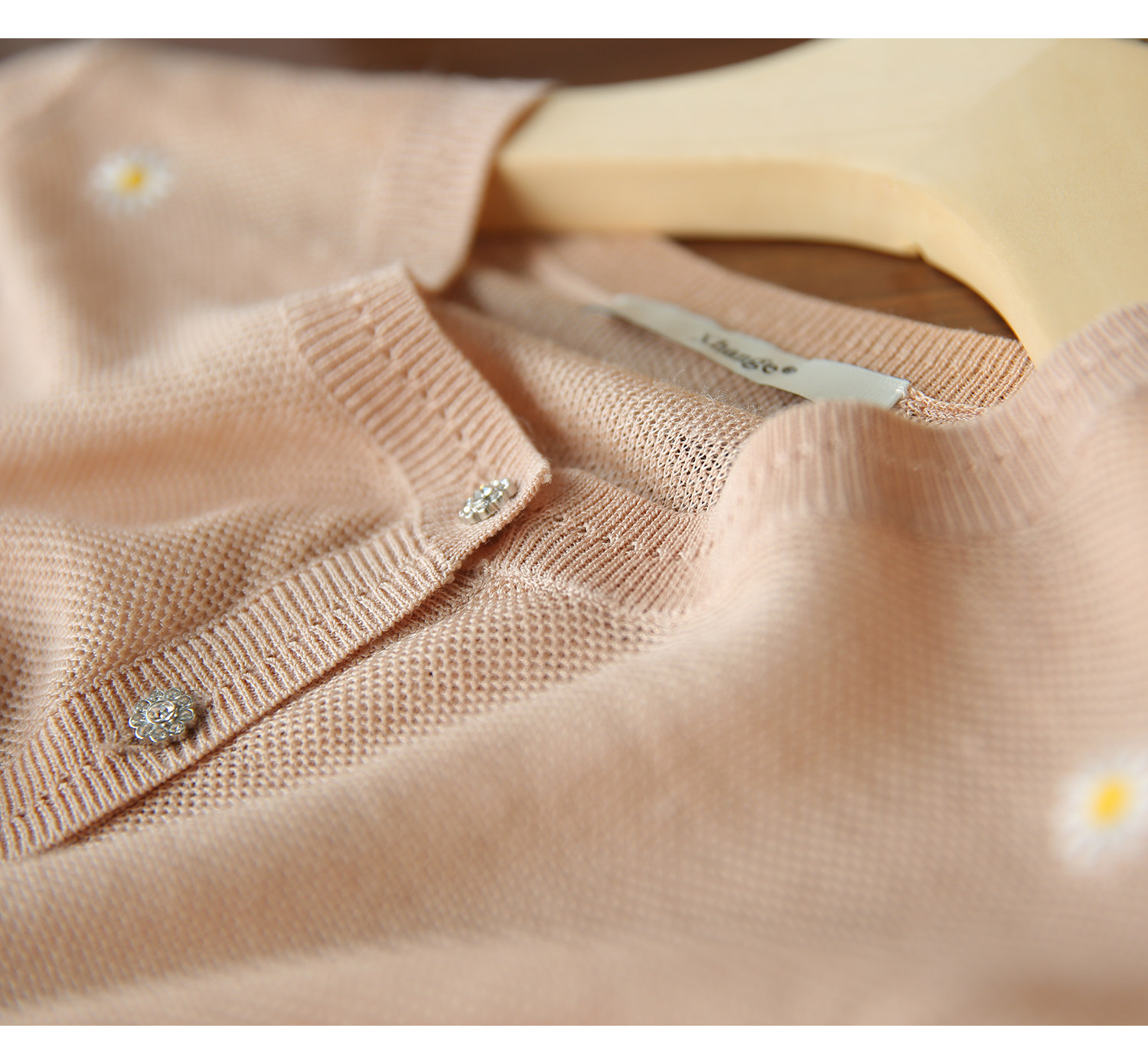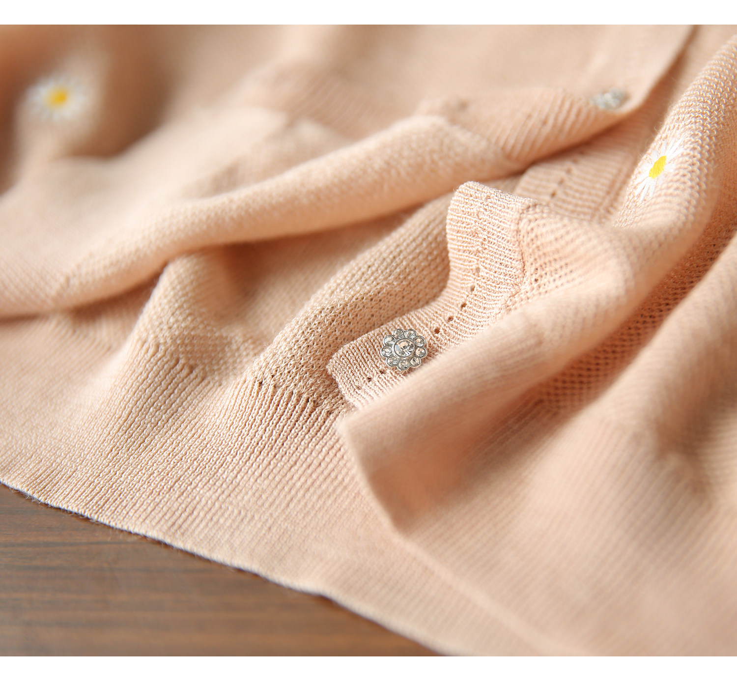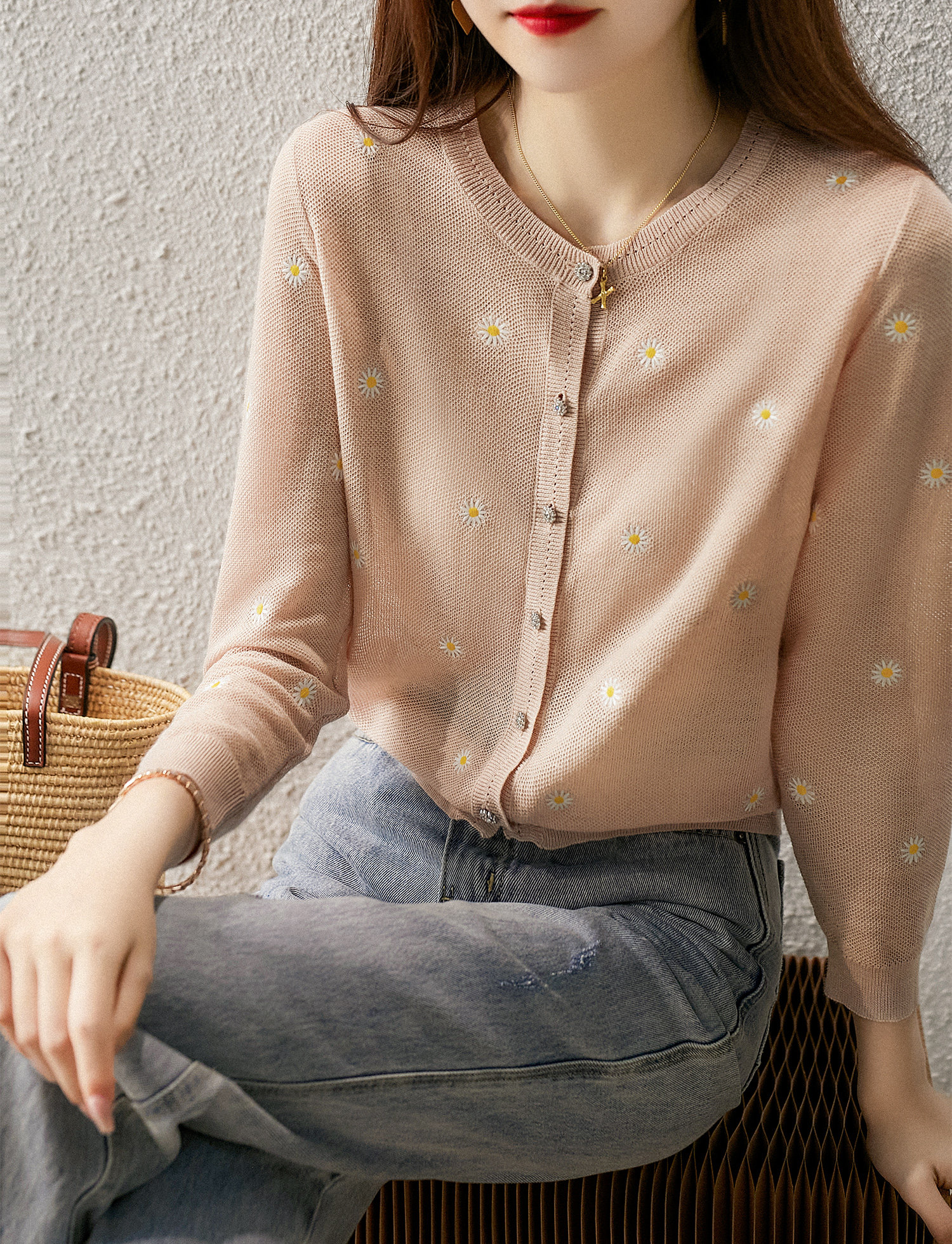 の [ZY358166MG] Очаровательная маленькая вышивка DAISY, дышащая вязаная кастора -вязаная рубашка кардиган