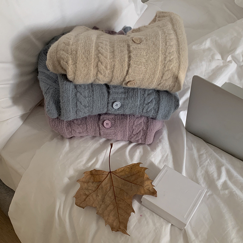 Свитер, трикотажный осенний кардиган, куртка с круглым воротником, коллекция 2022, в корейском стиле, оверсайз