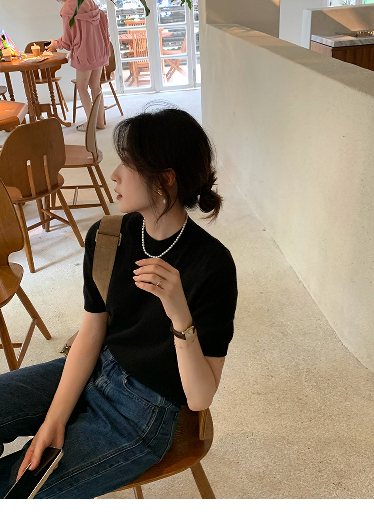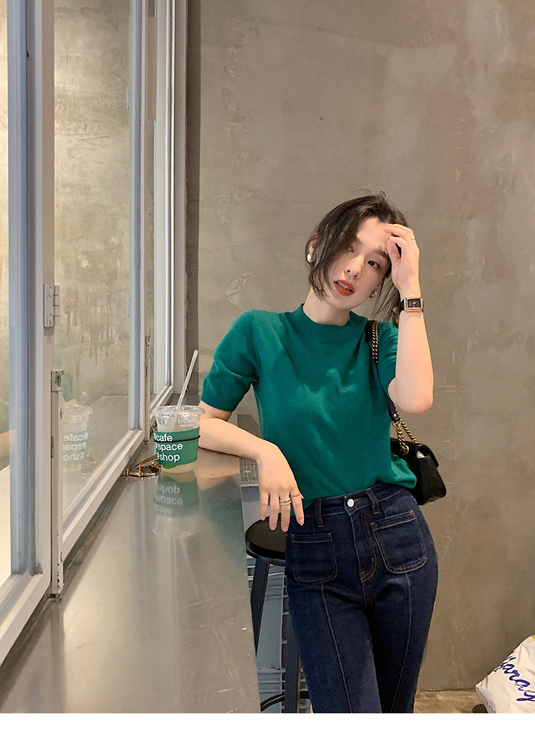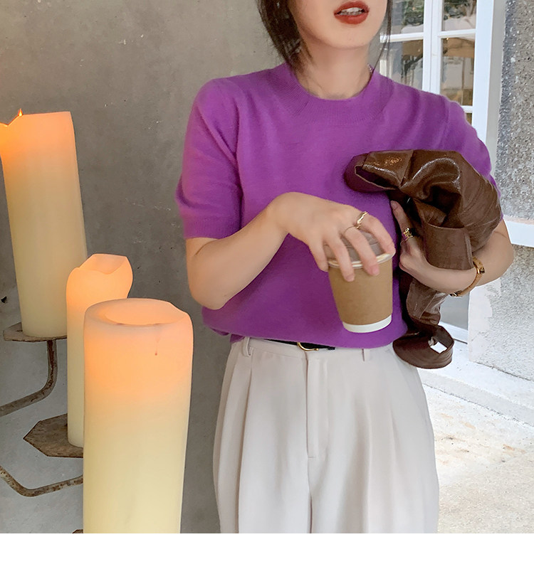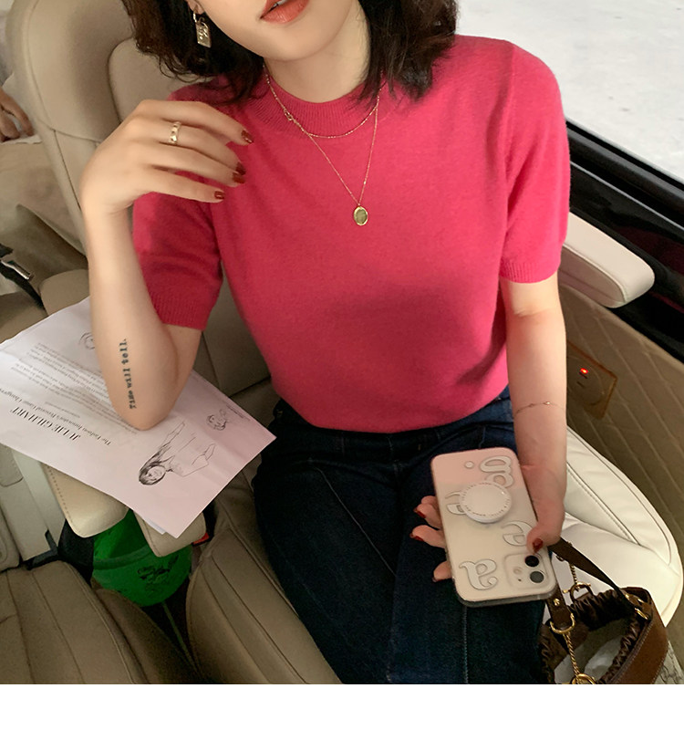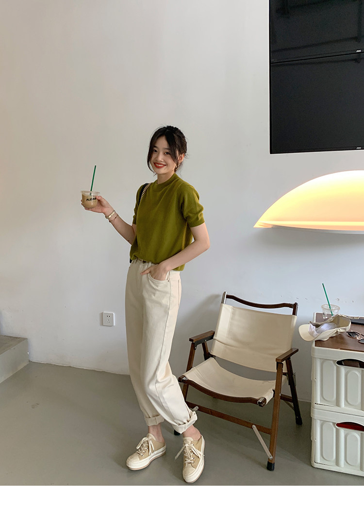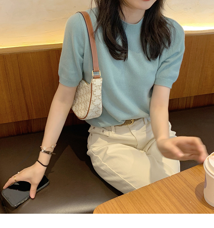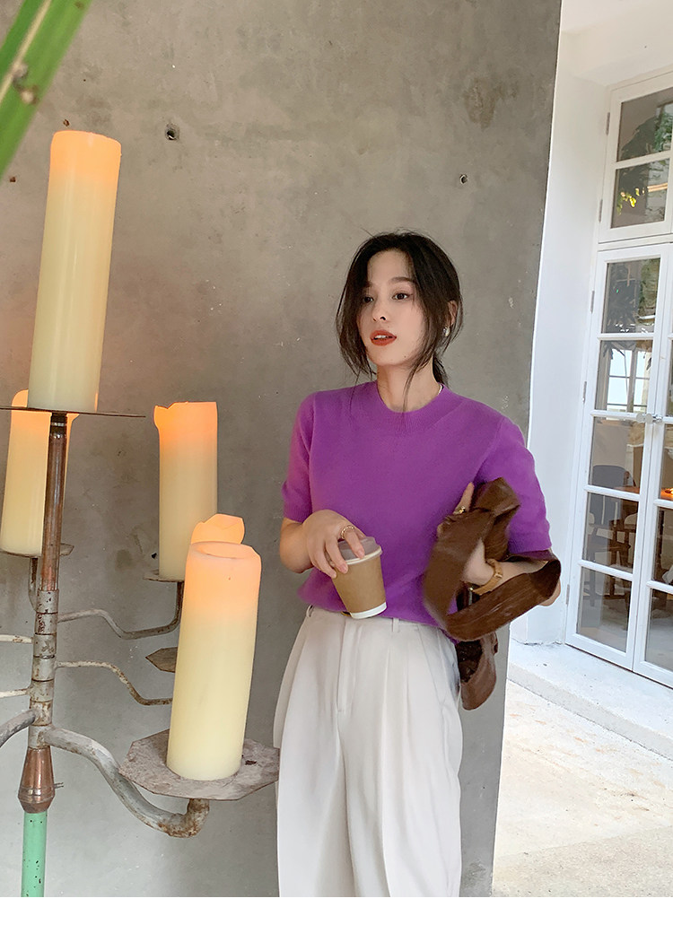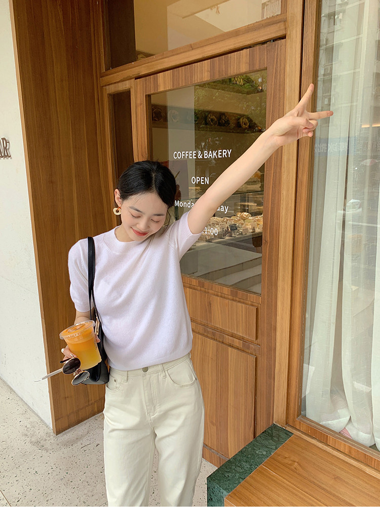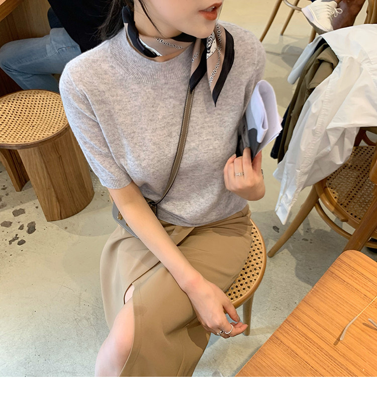 Трикотажный осенний свитер с круглым воротником