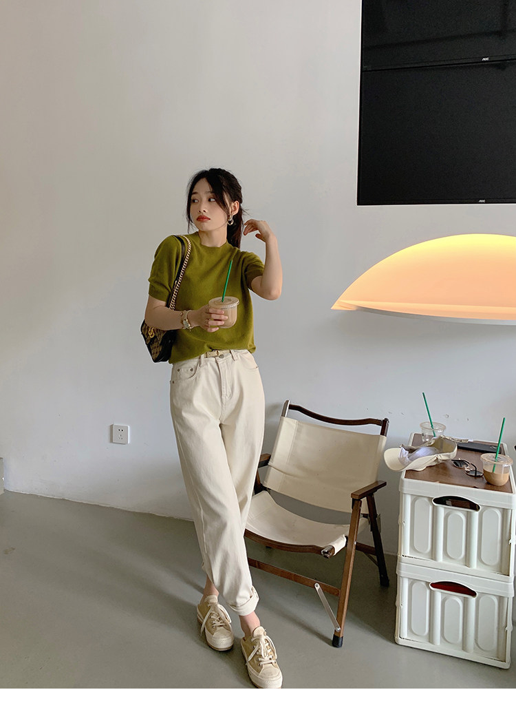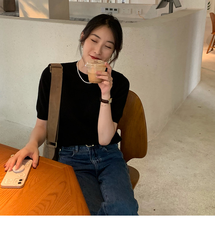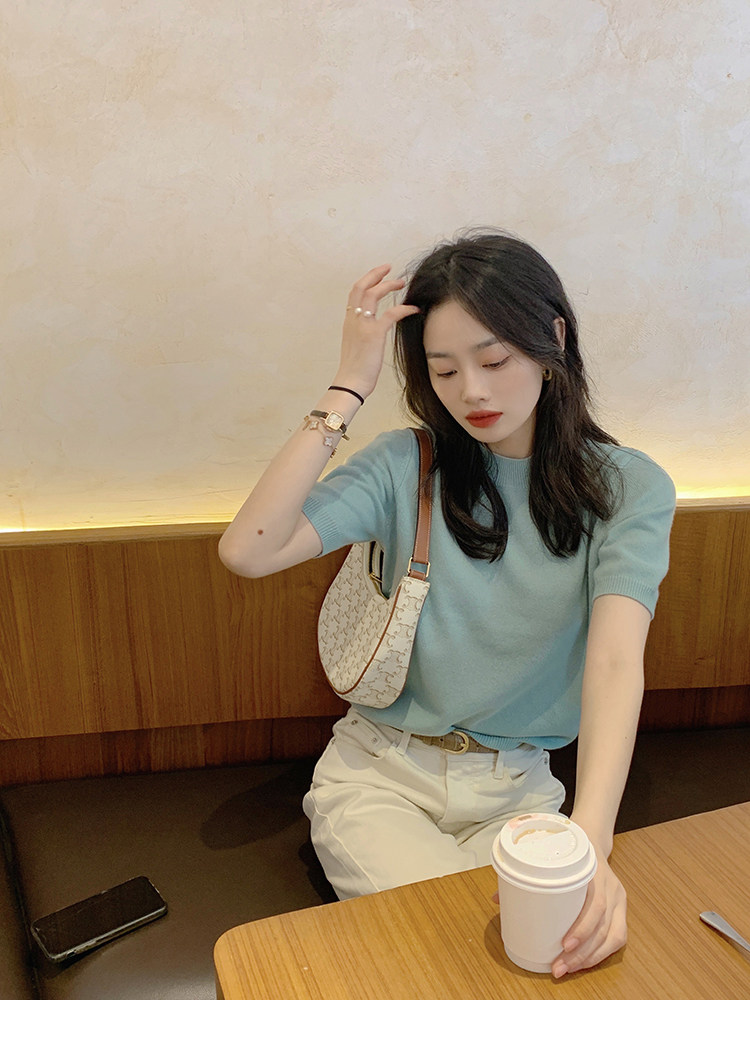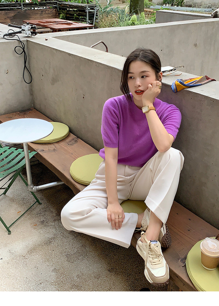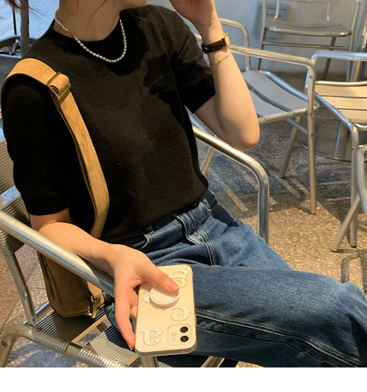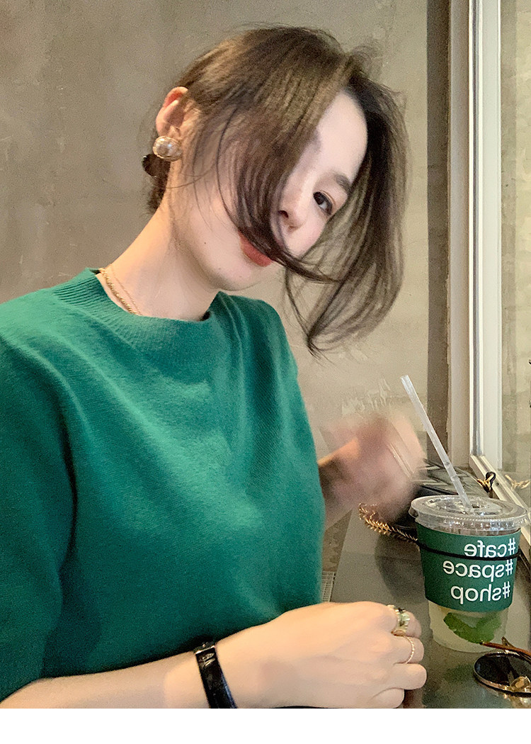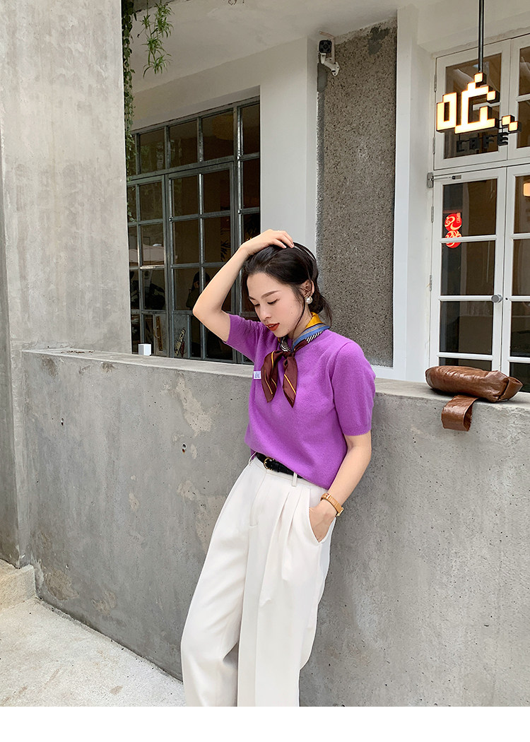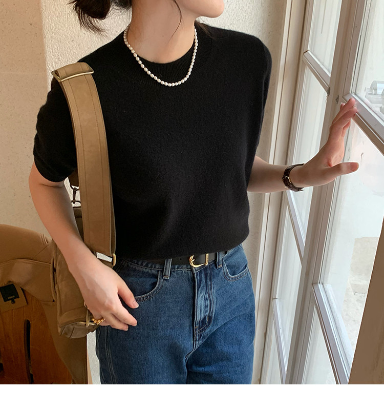 Трикотажный осенний свитер с круглым воротником