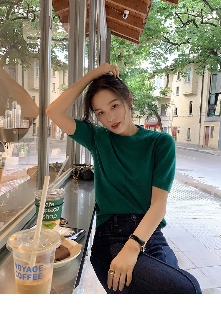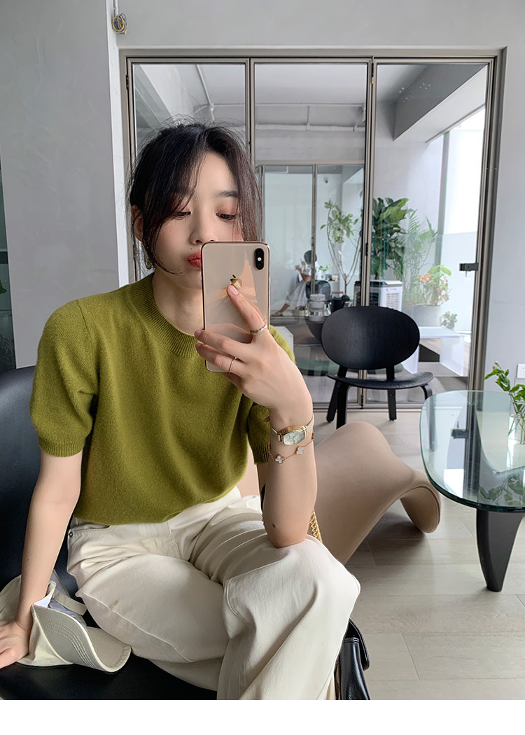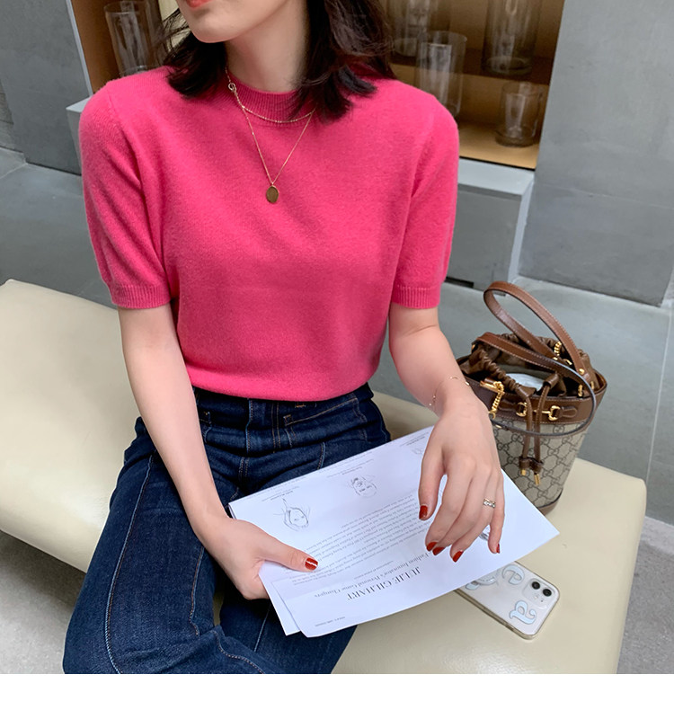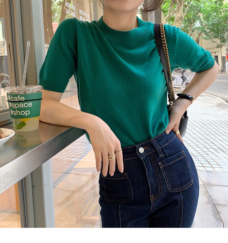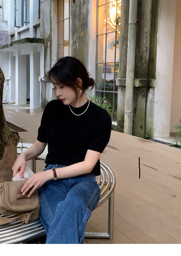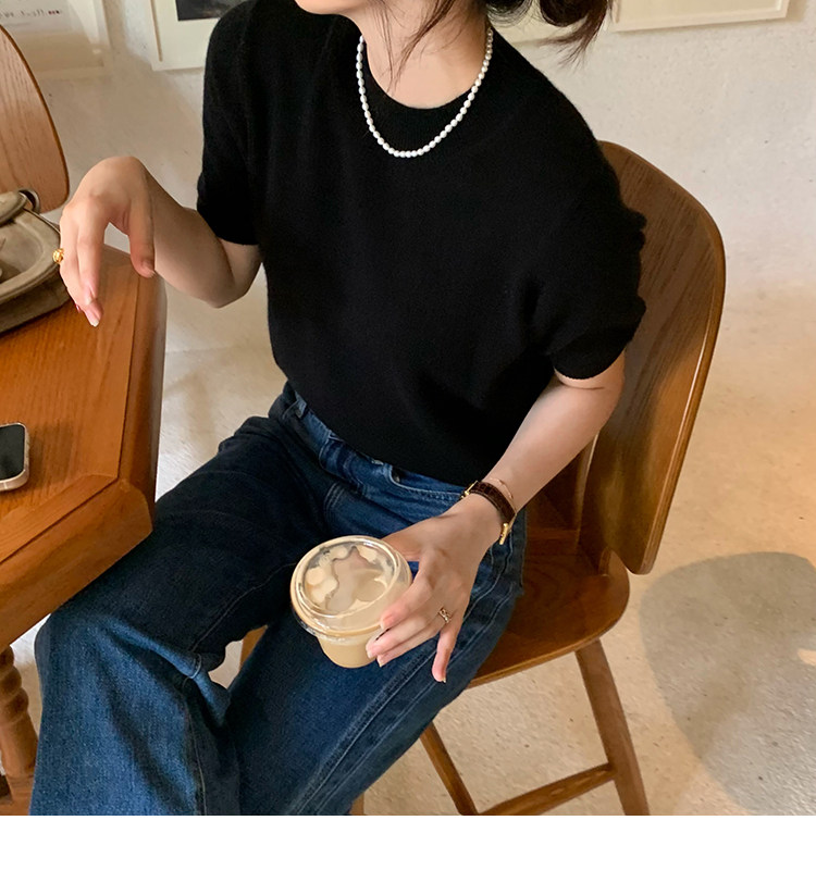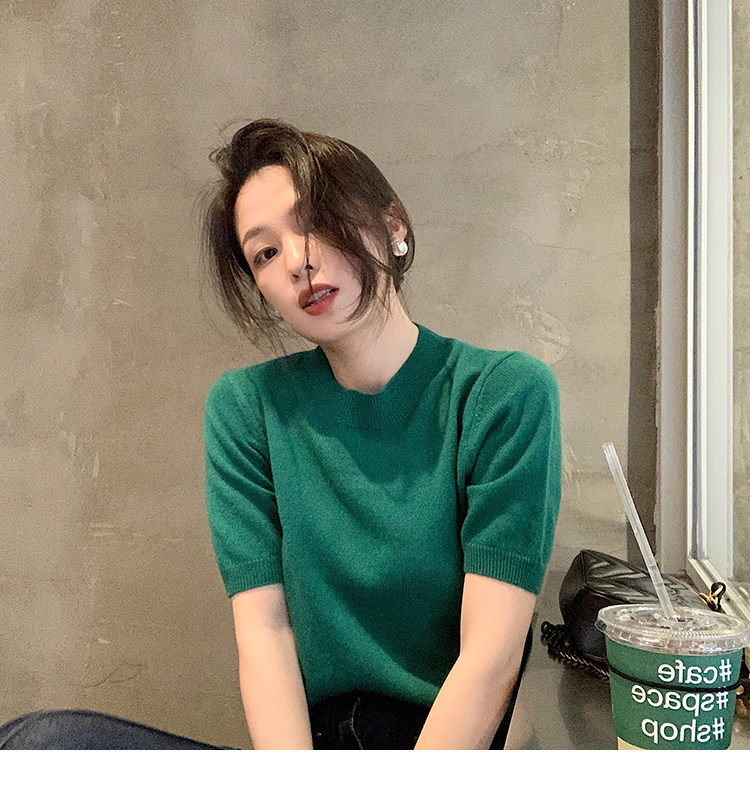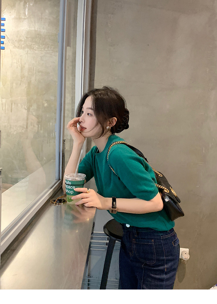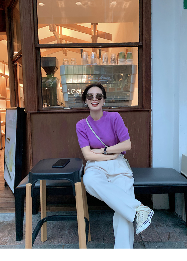 Трикотажный осенний свитер с круглым воротником