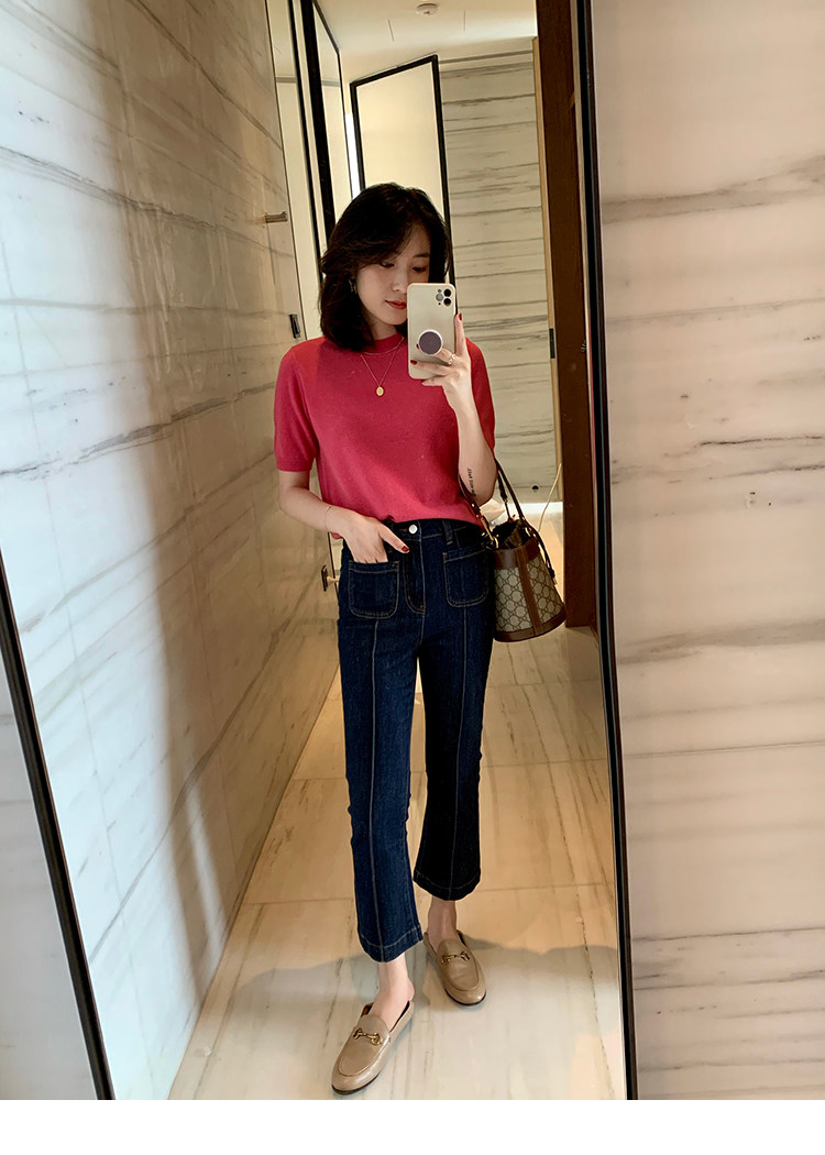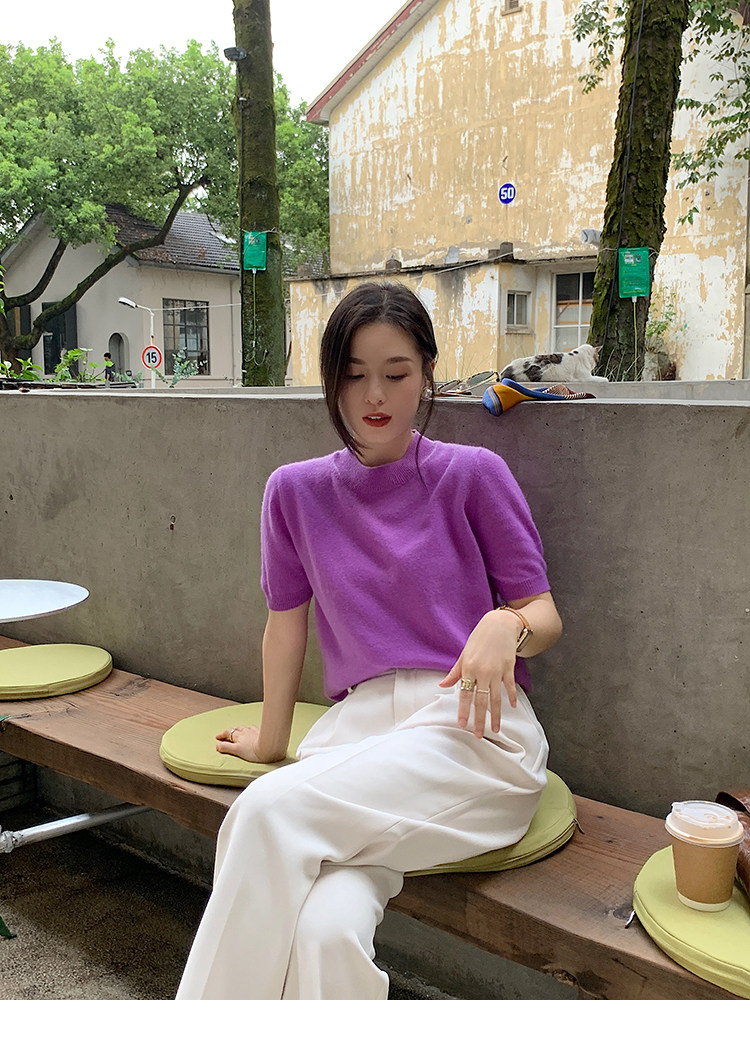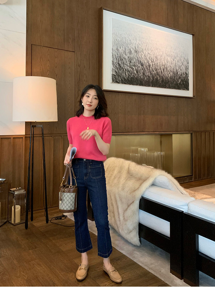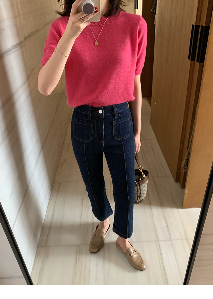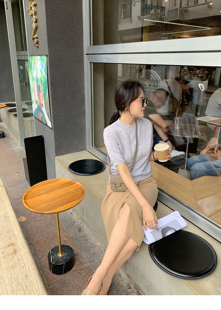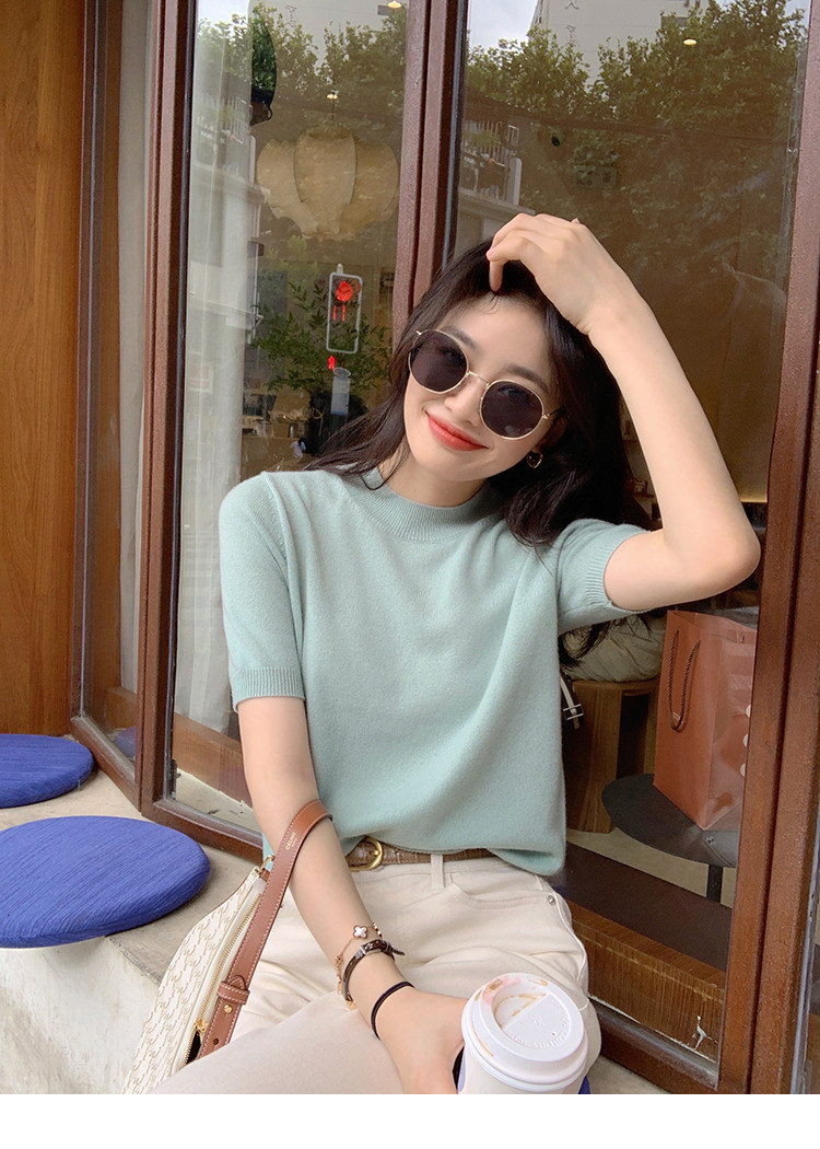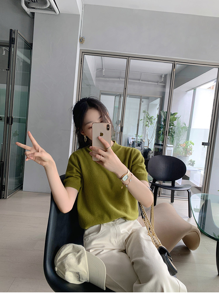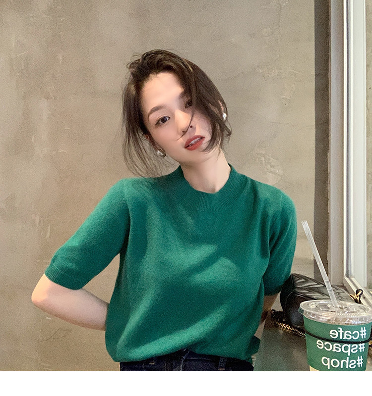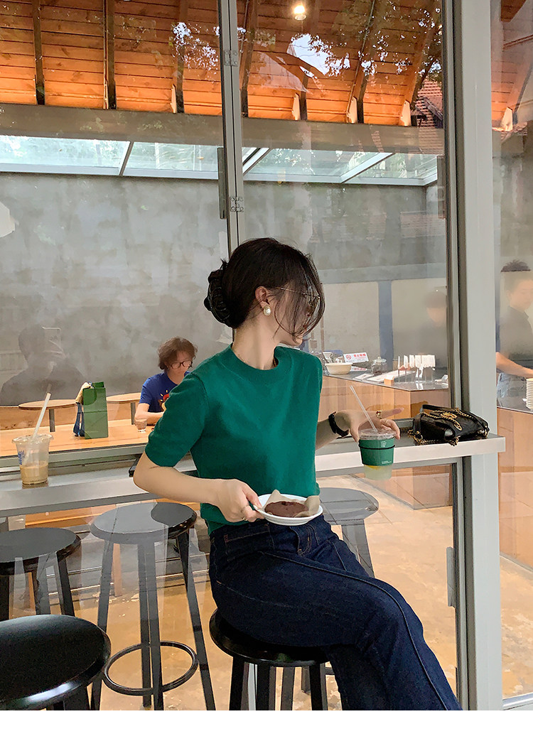 Трикотажный осенний свитер с круглым воротником