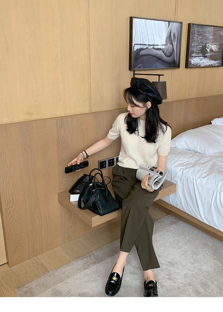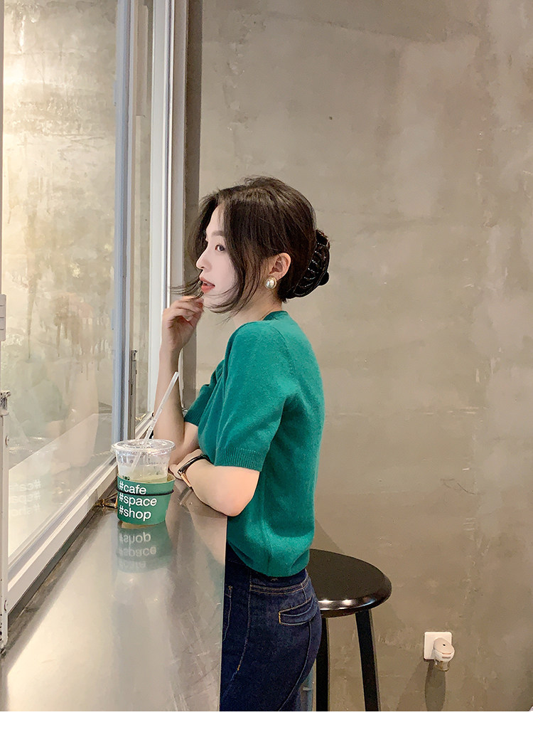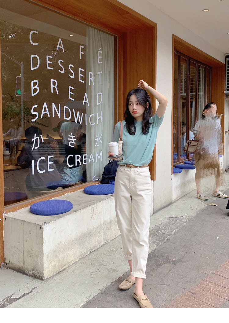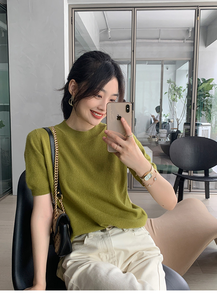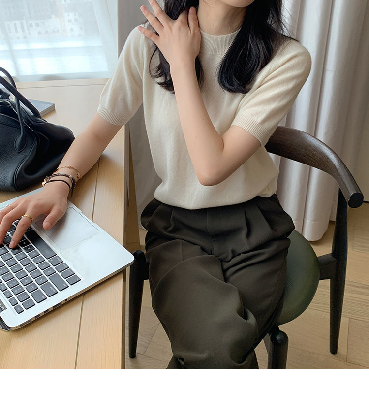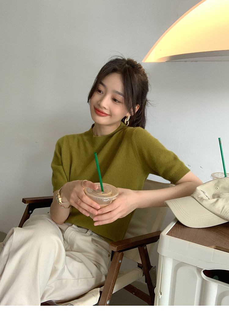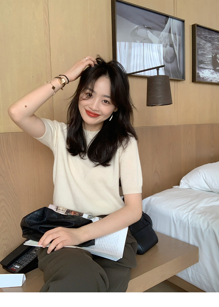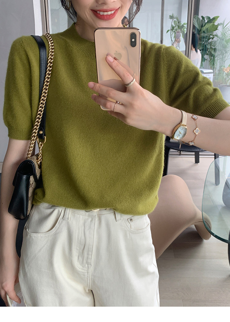 Трикотажный осенний свитер с круглым воротником