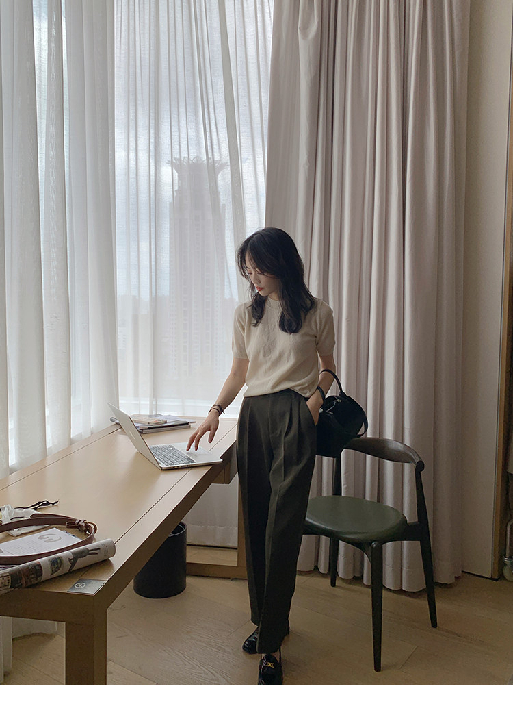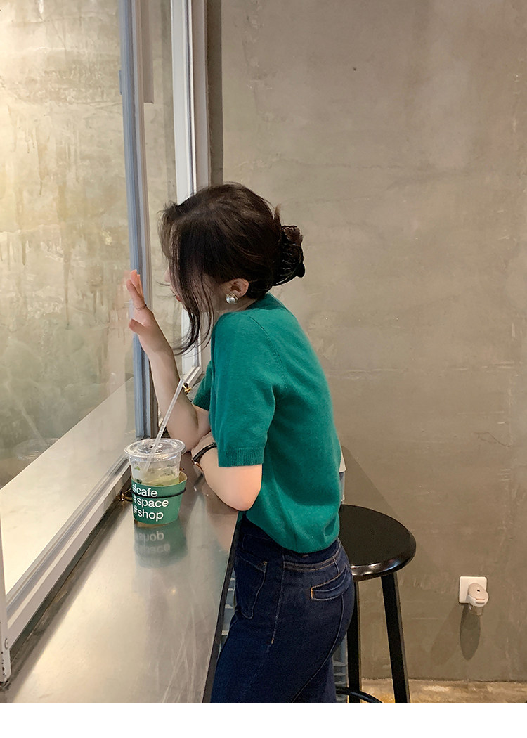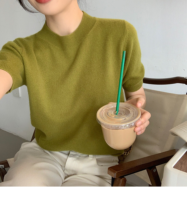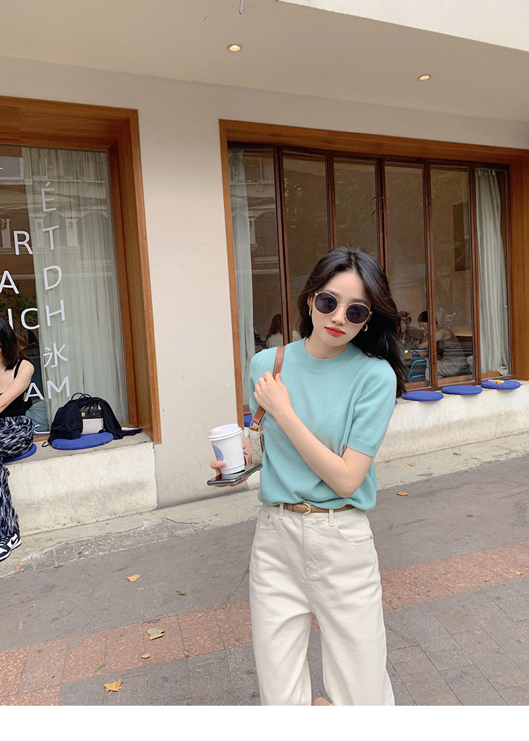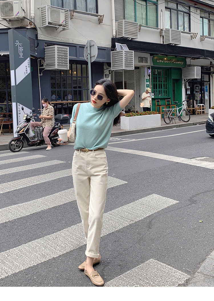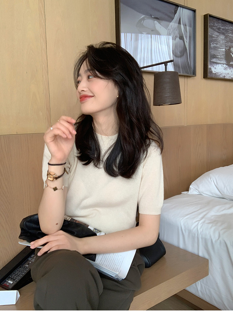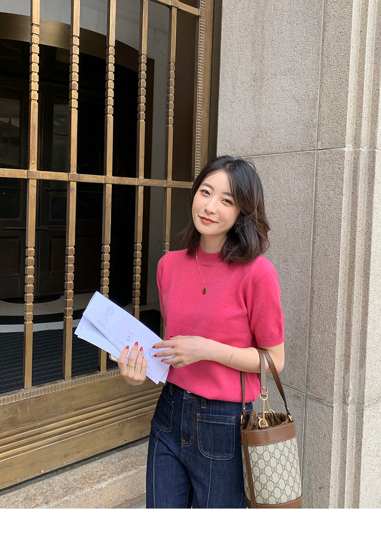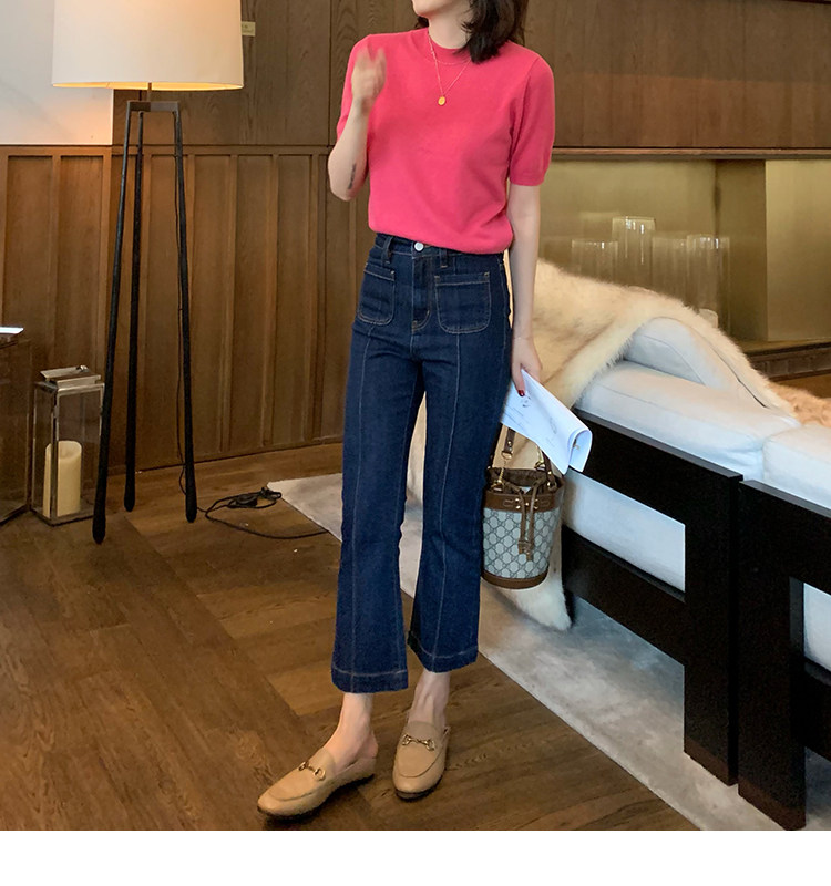 Трикотажный осенний свитер с круглым воротником