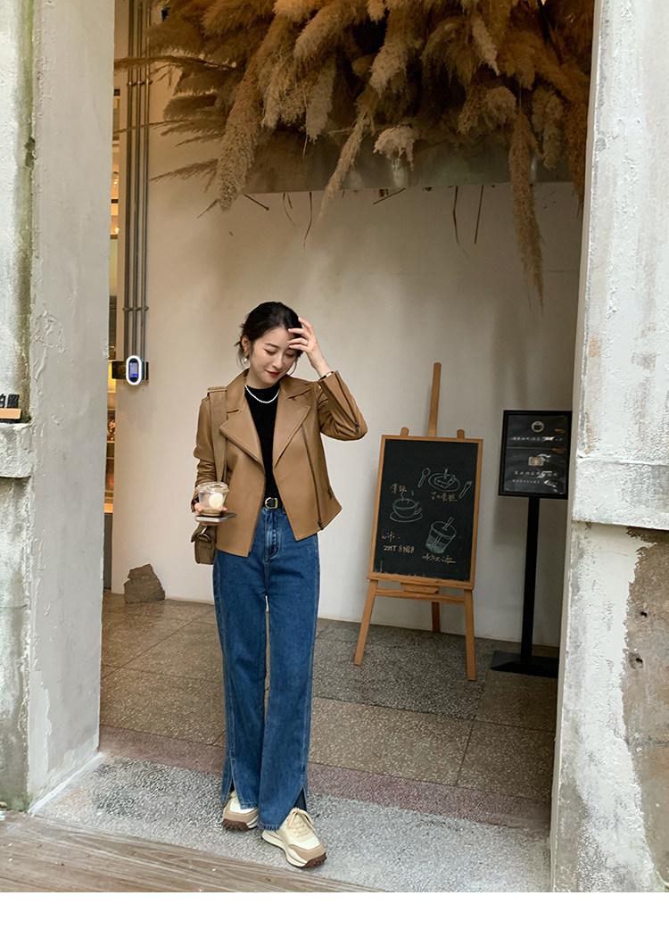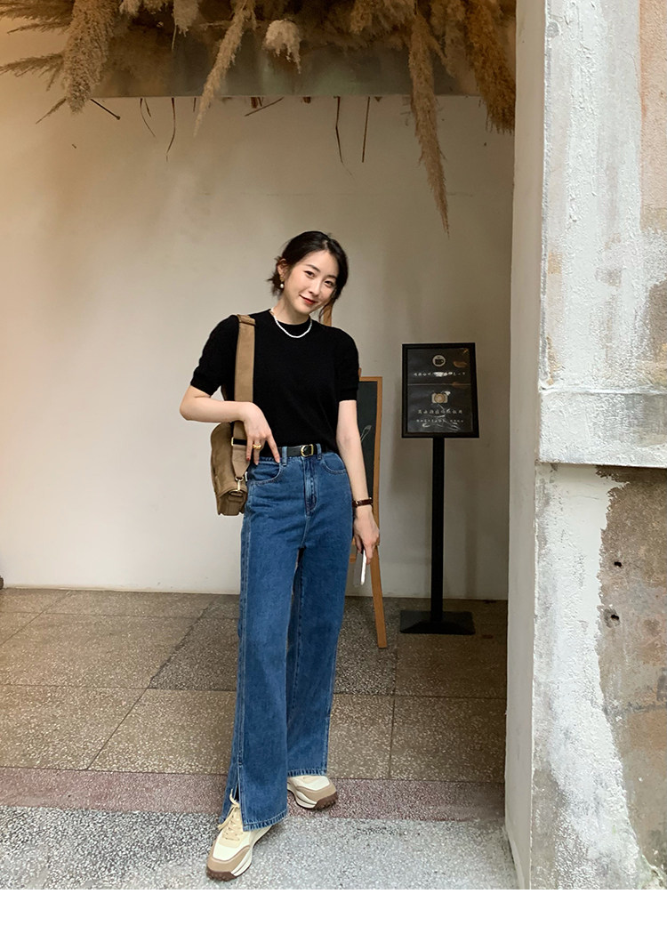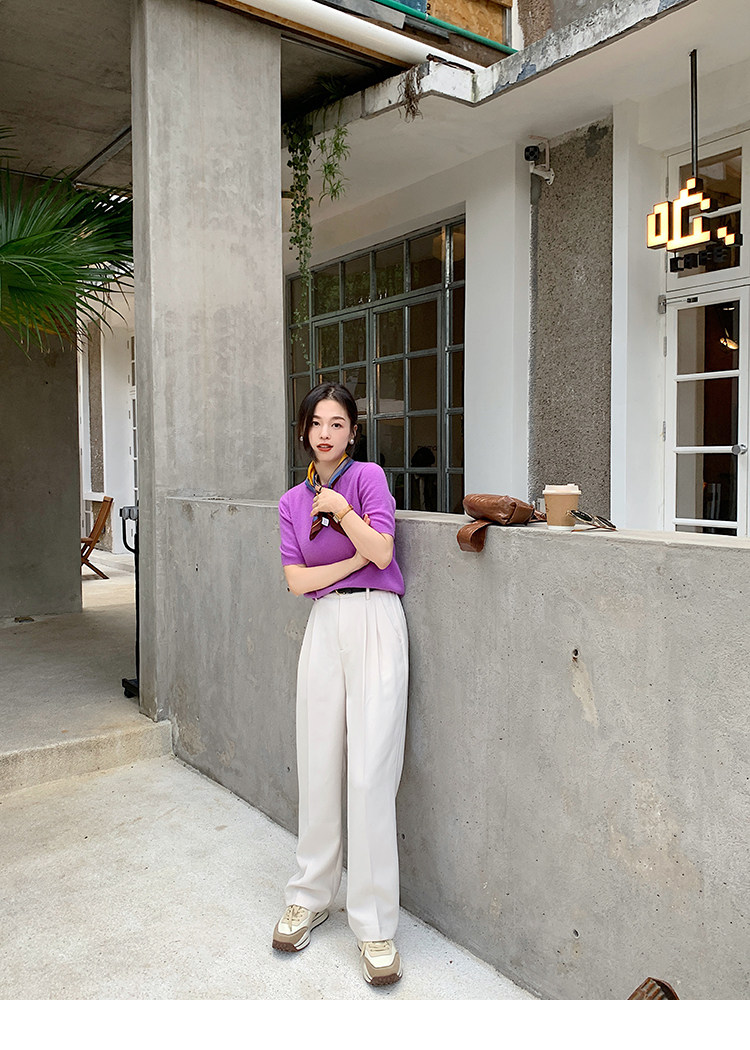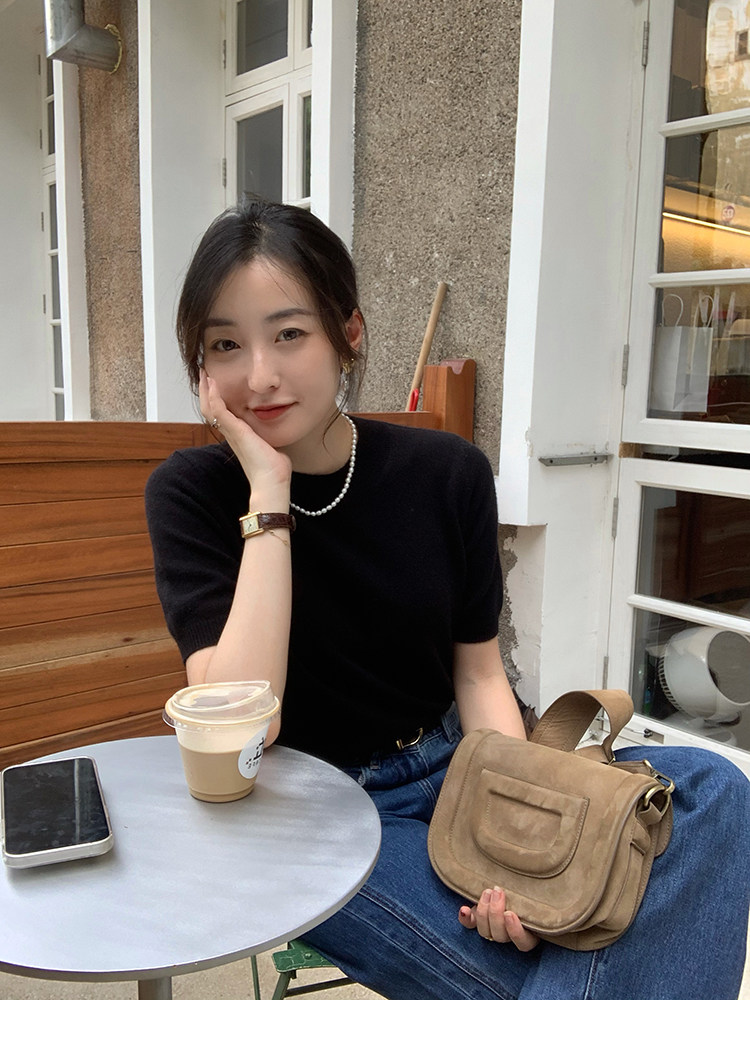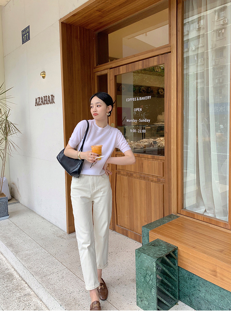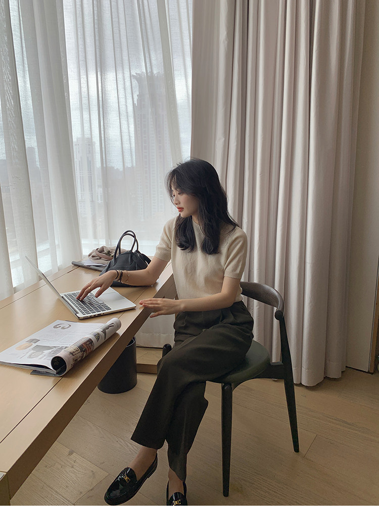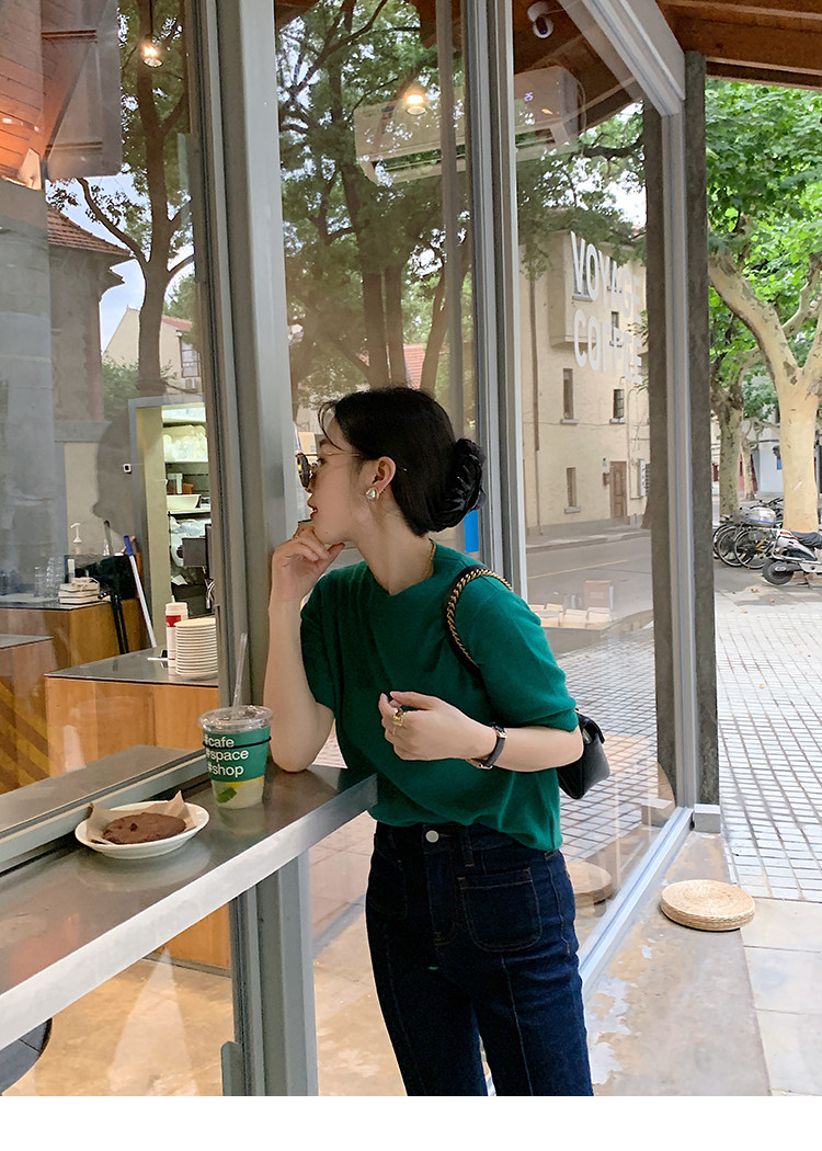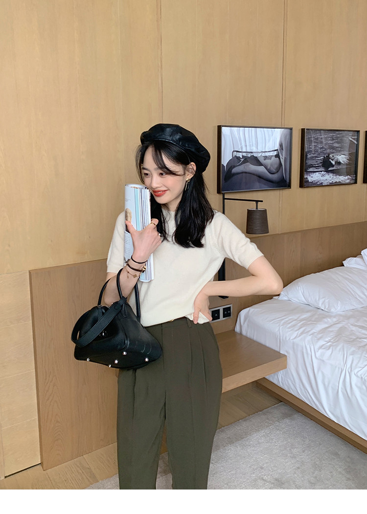 Трикотажный осенний свитер с круглым воротником