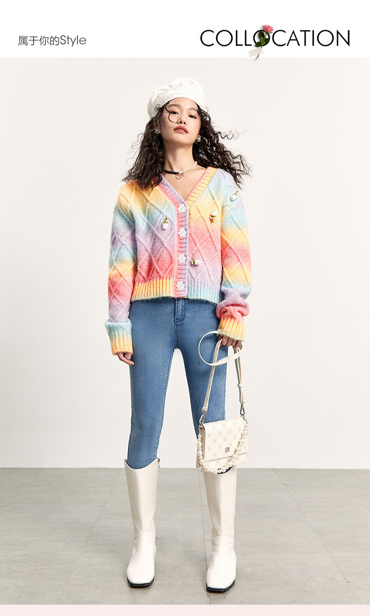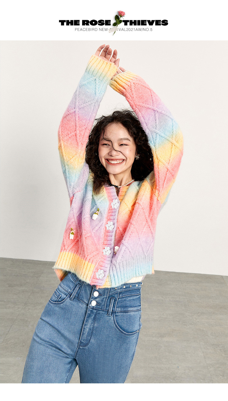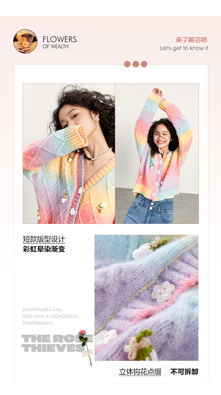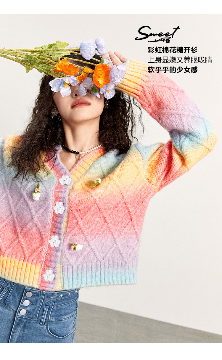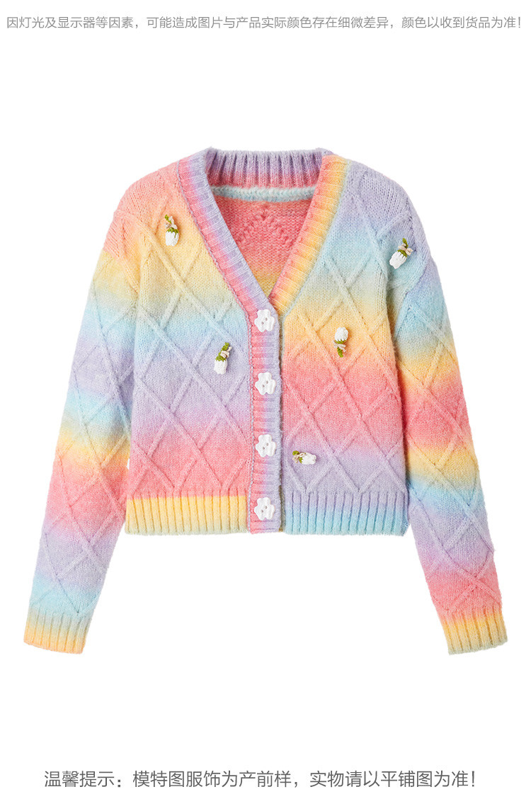 Трехмерный трикотажный осенний кардиган, радужный свитер, в цветочек, коллекция 2021