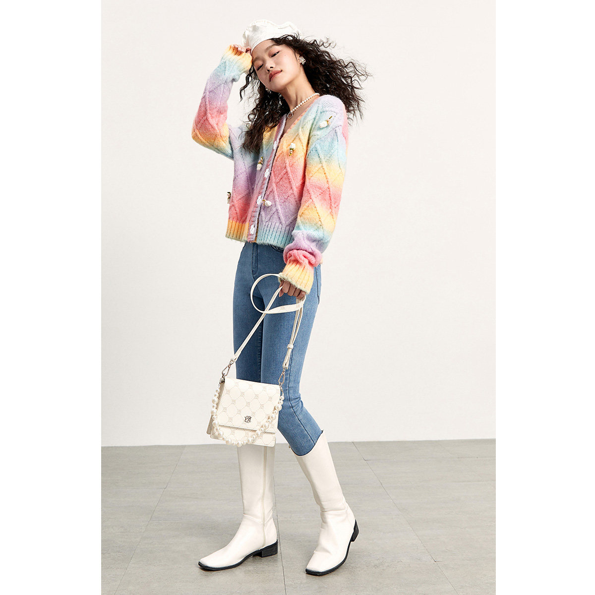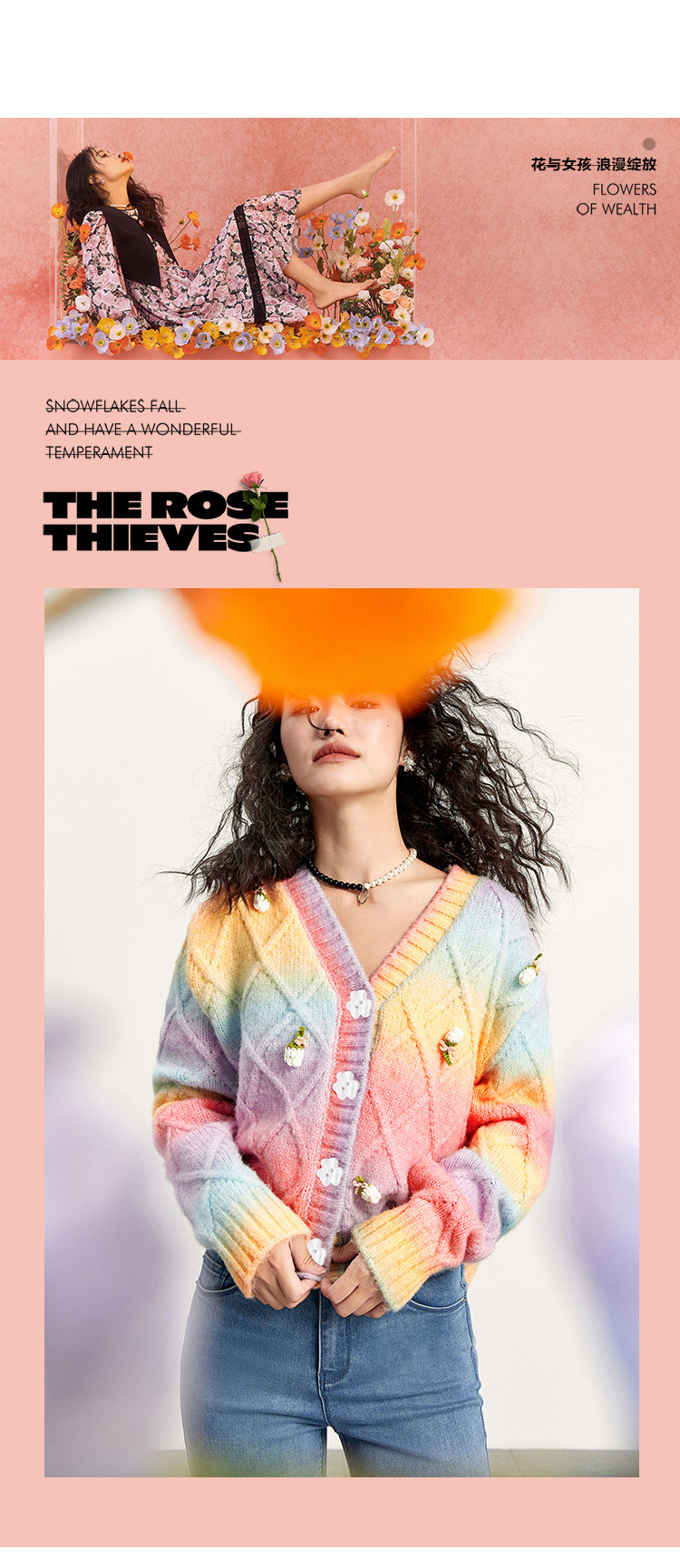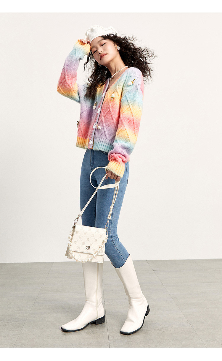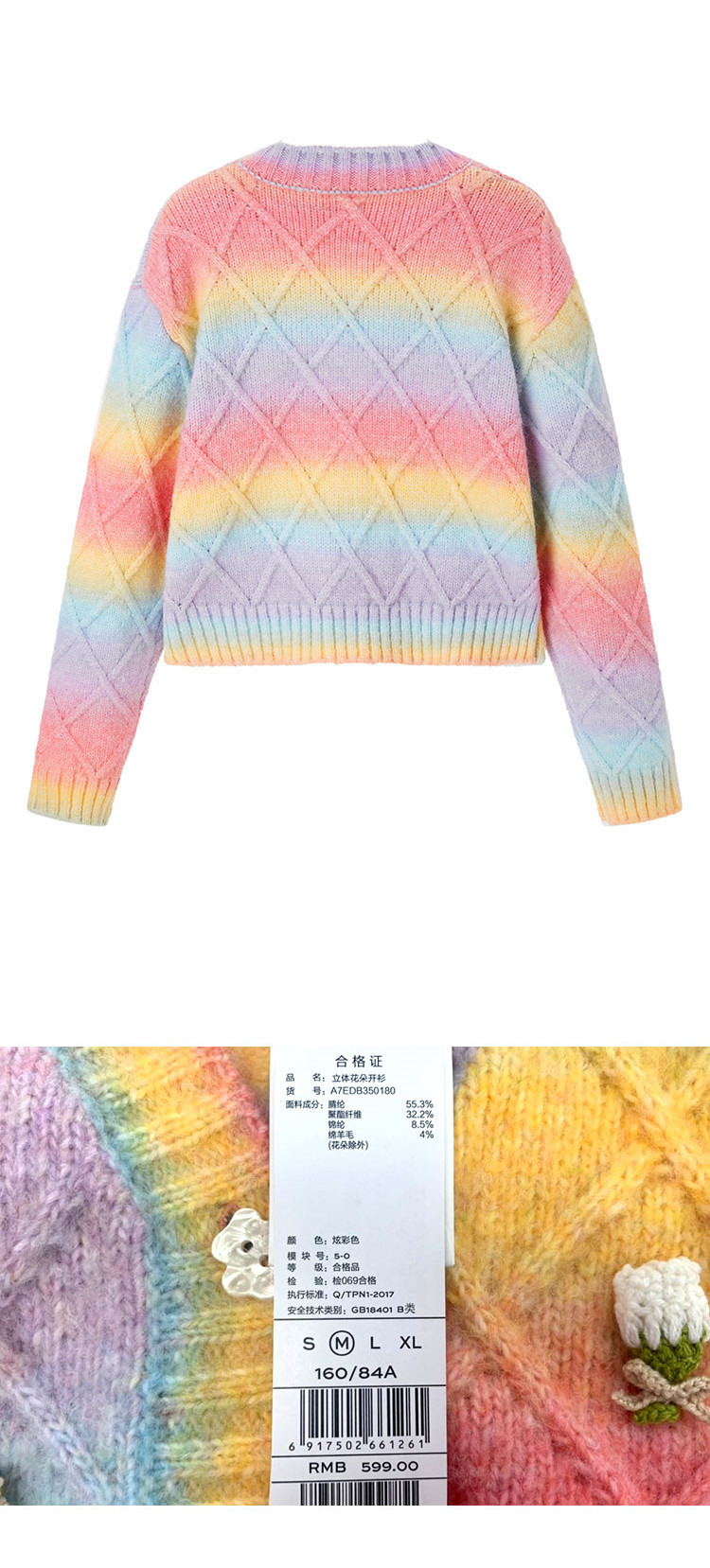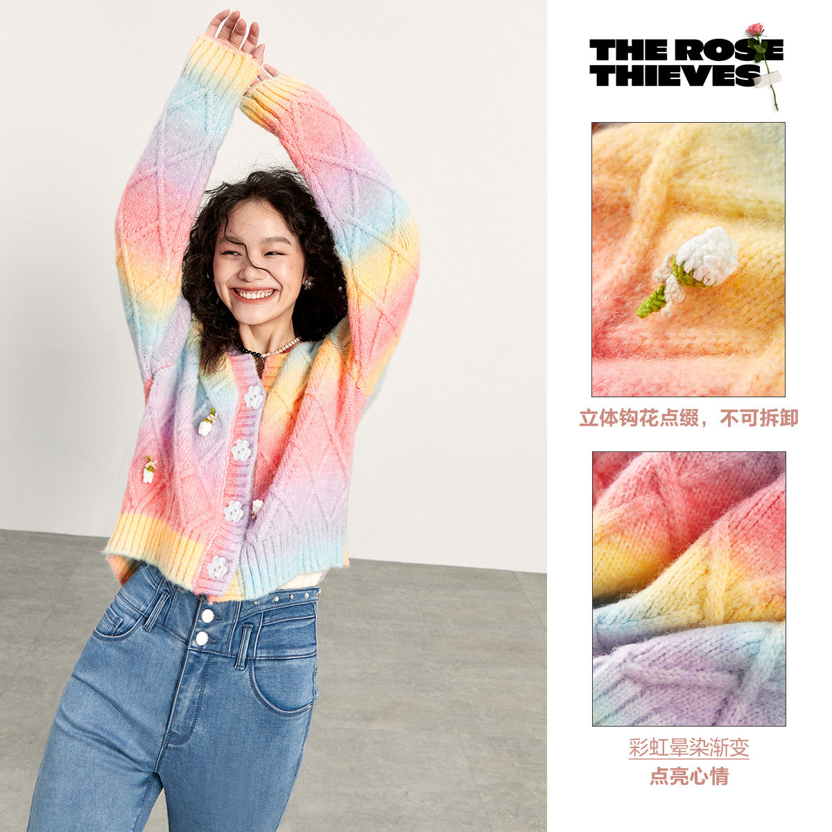 Трехмерный трикотажный осенний кардиган, радужный свитер, в цветочек, коллекция 2021