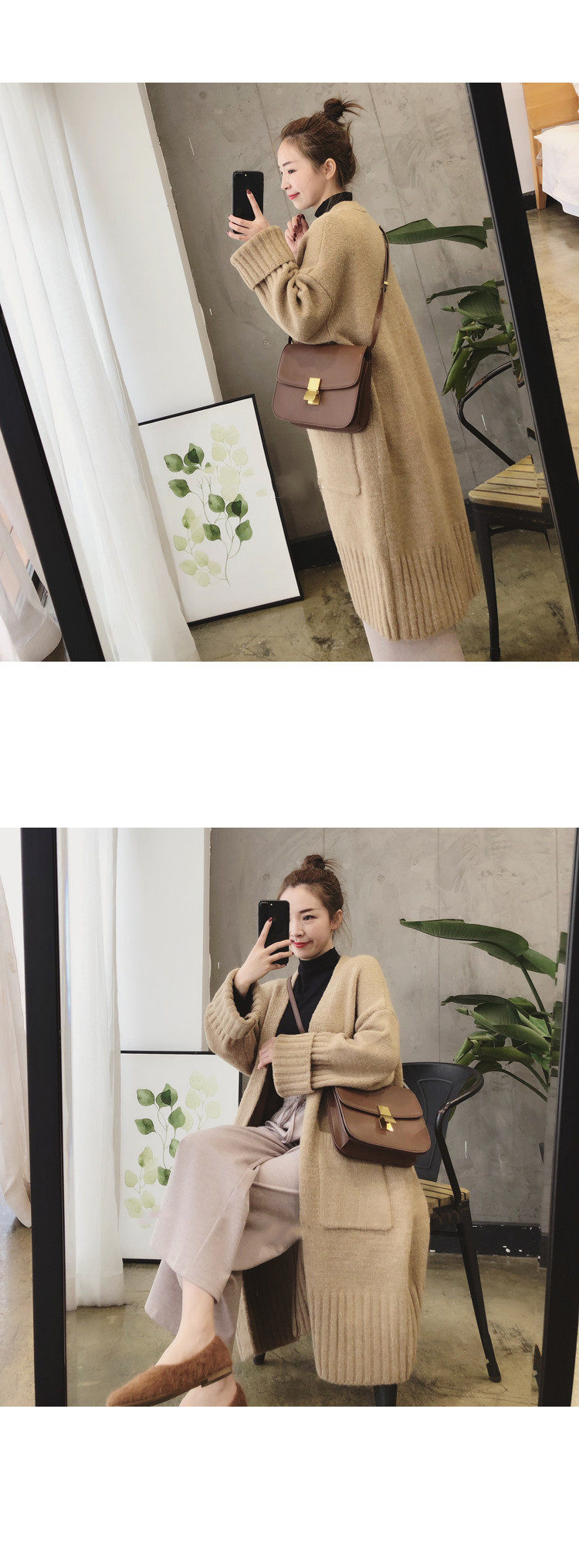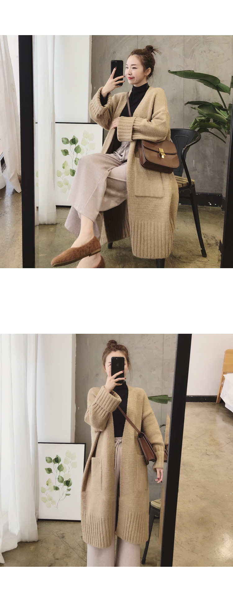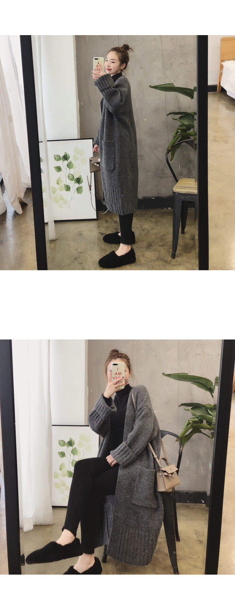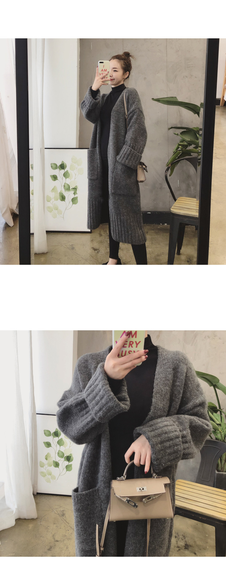 Демисезонный свитер, длинный кардиган, оверсайз, 2025 года, городской стиль, средней длины, европейский стиль