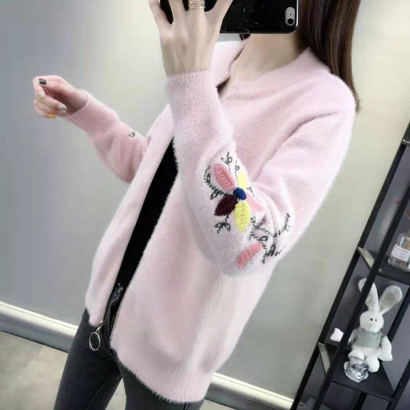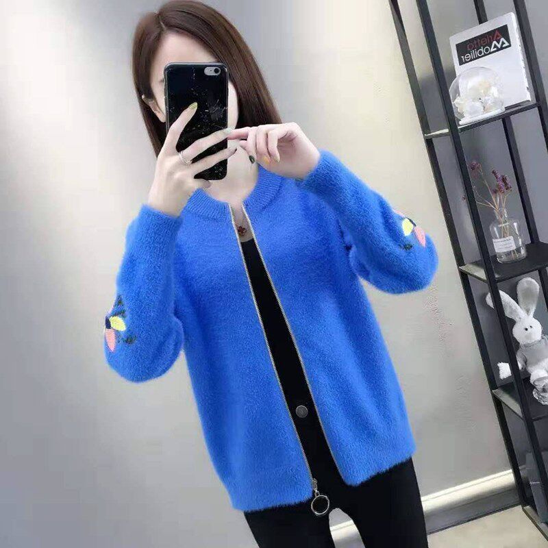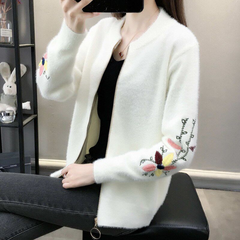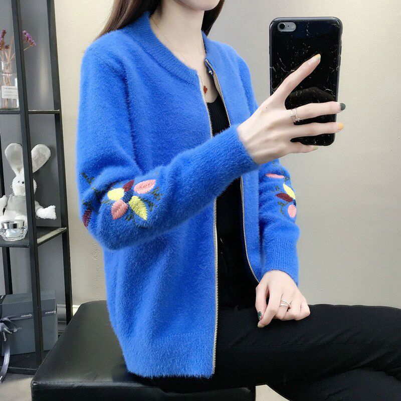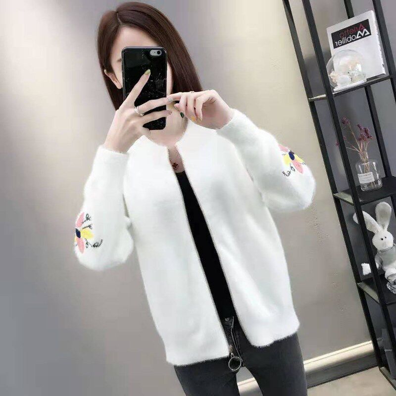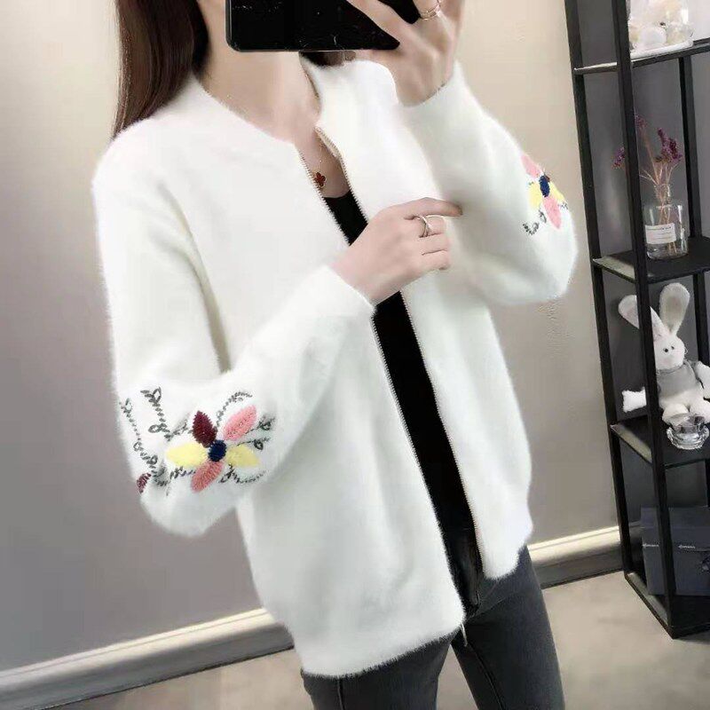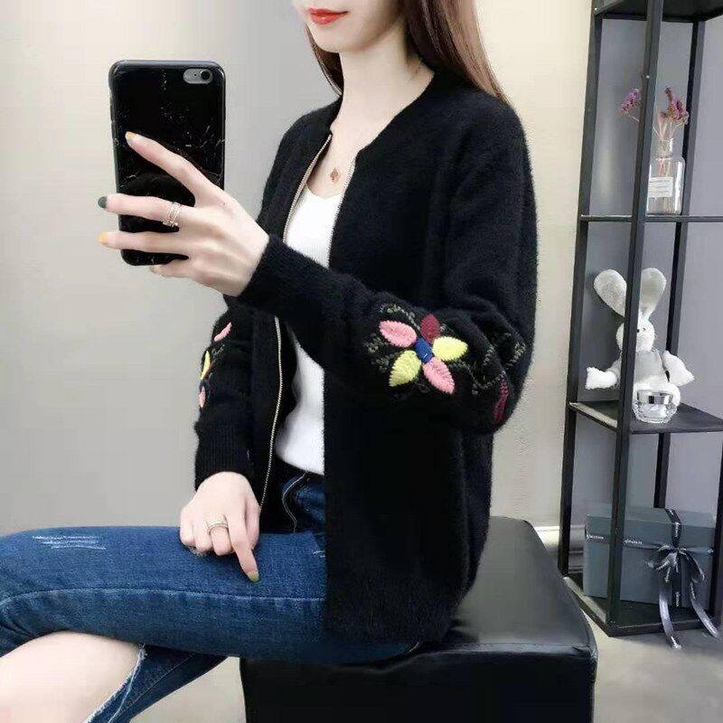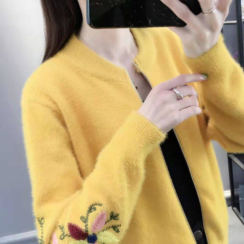 Осенний бархатный трикотажный короткий кардиган, свитер, куртка, коллекция 2022, с вышивкой, в корейском стиле, оверсайз