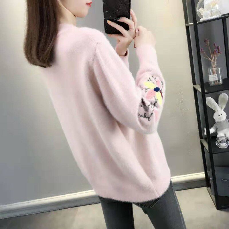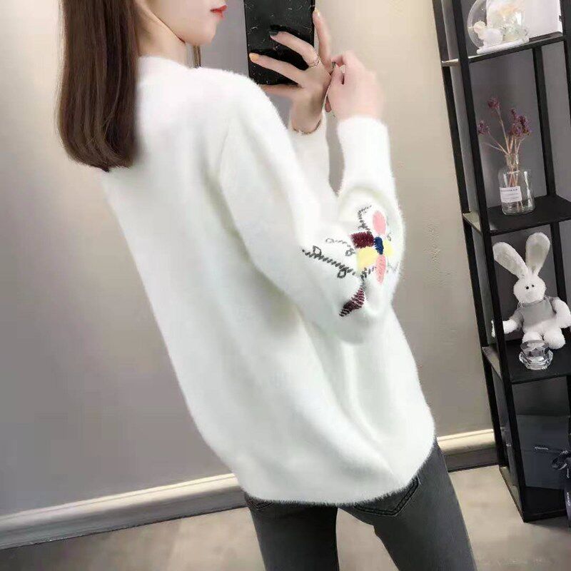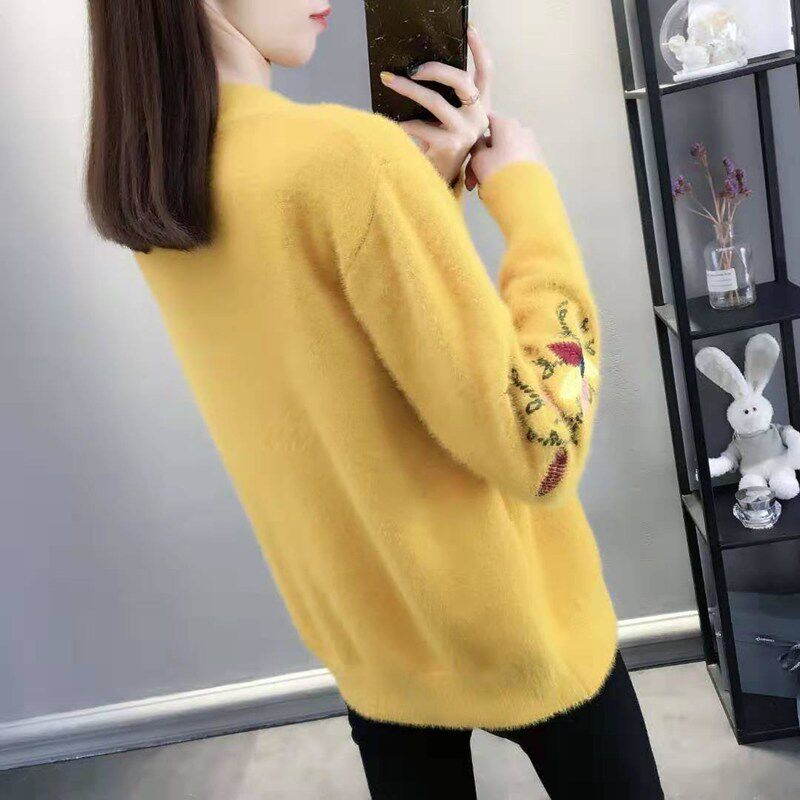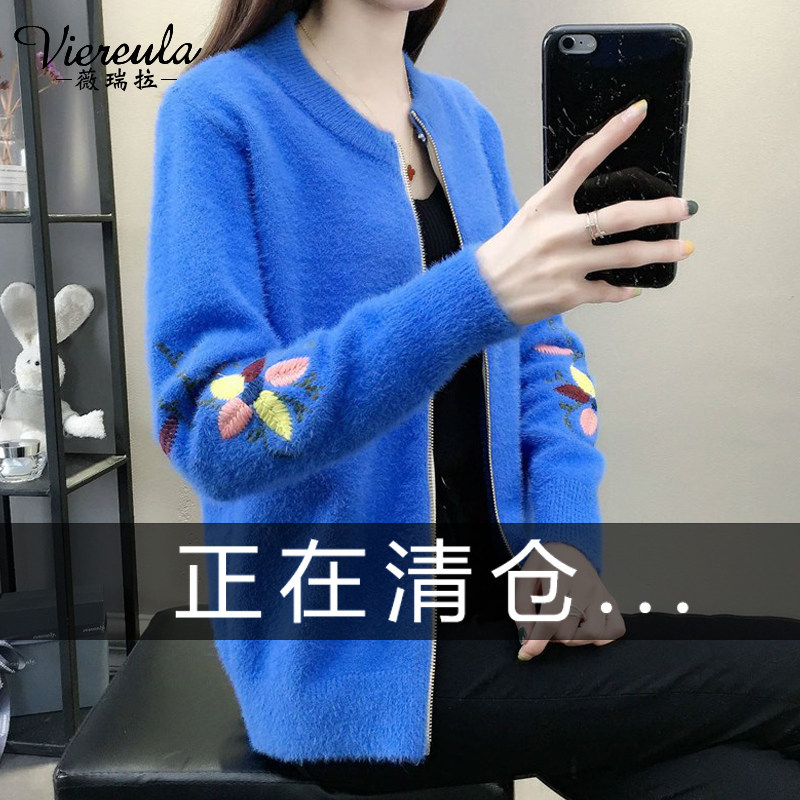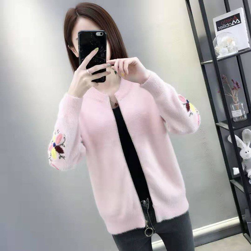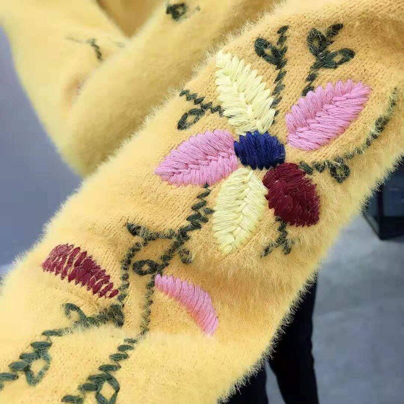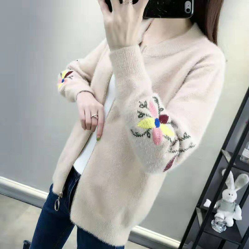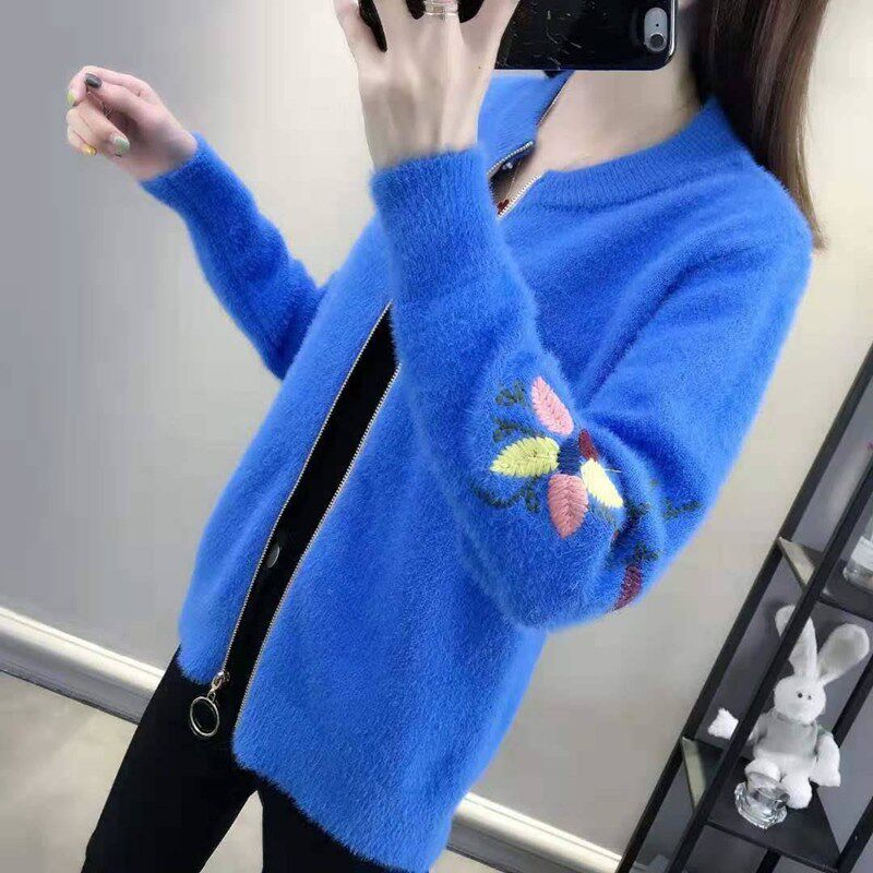 Осенний бархатный трикотажный короткий кардиган, свитер, куртка, коллекция 2022, с вышивкой, в корейском стиле, оверсайз