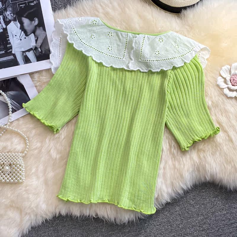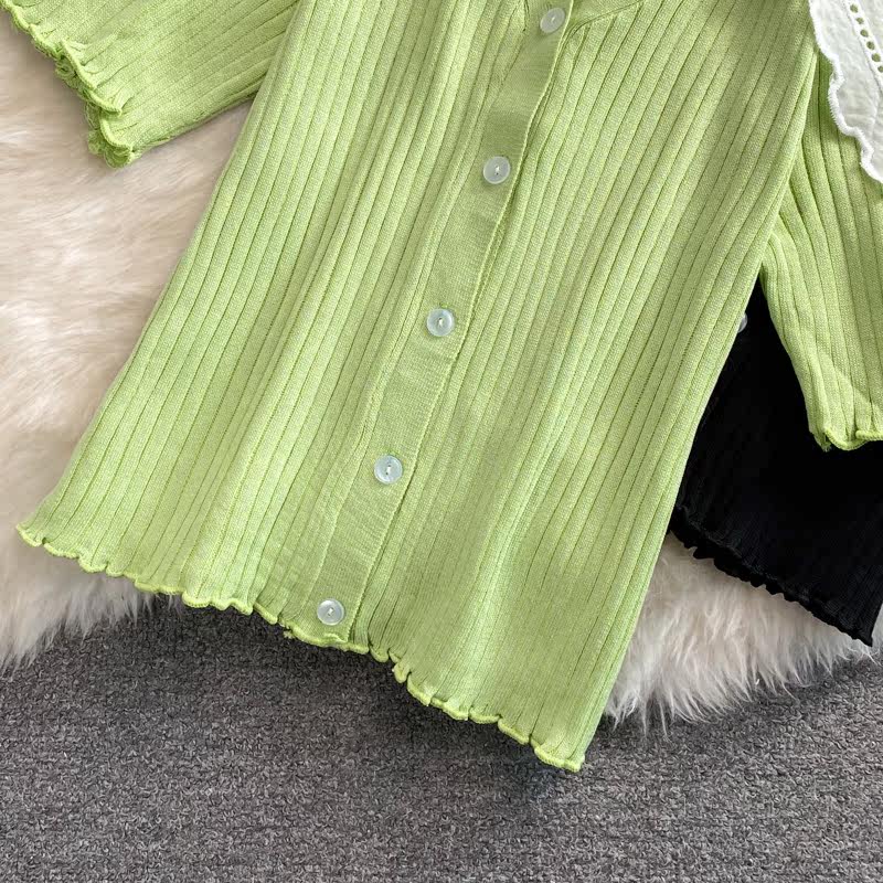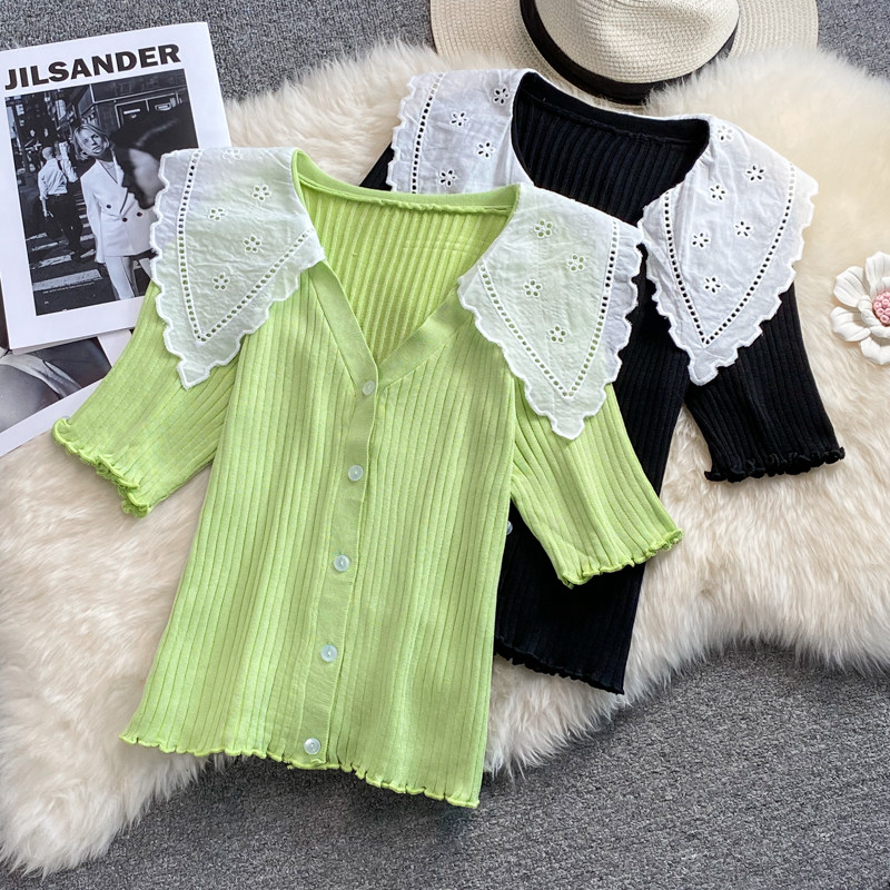 Летняя милая трикотажная кукла, трикотажный свитер, универсальный кардиган, 2021 года, новая коллекция, в западном стиле, короткий рукав