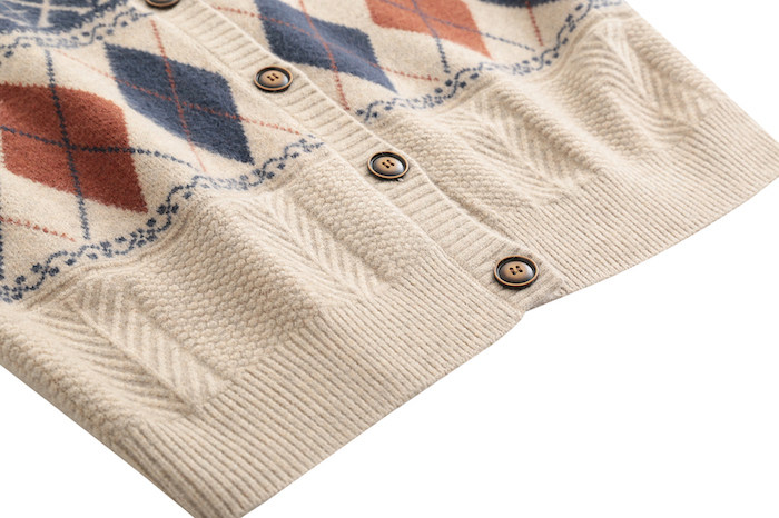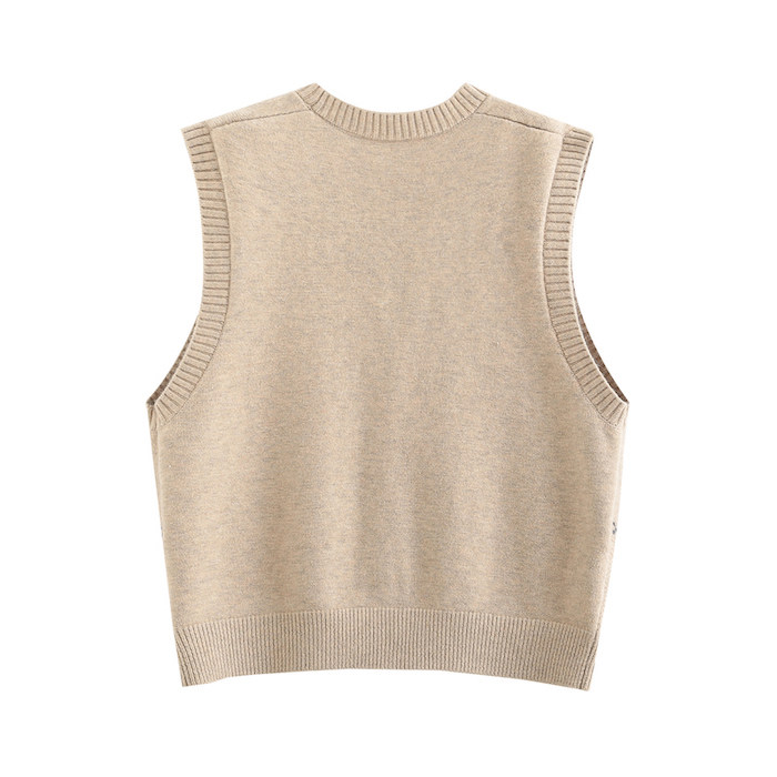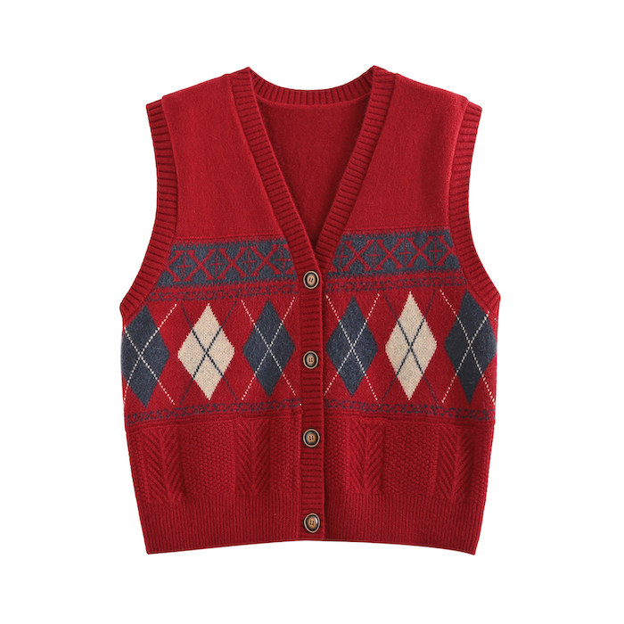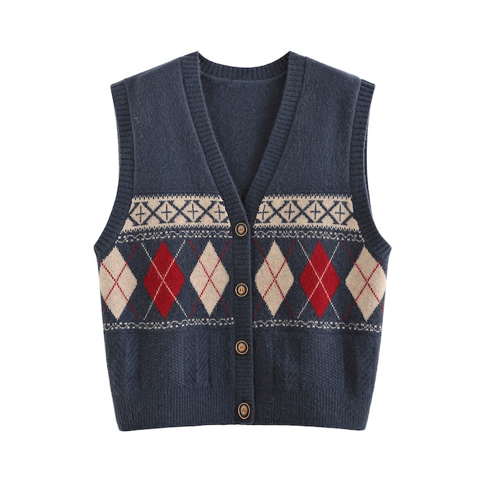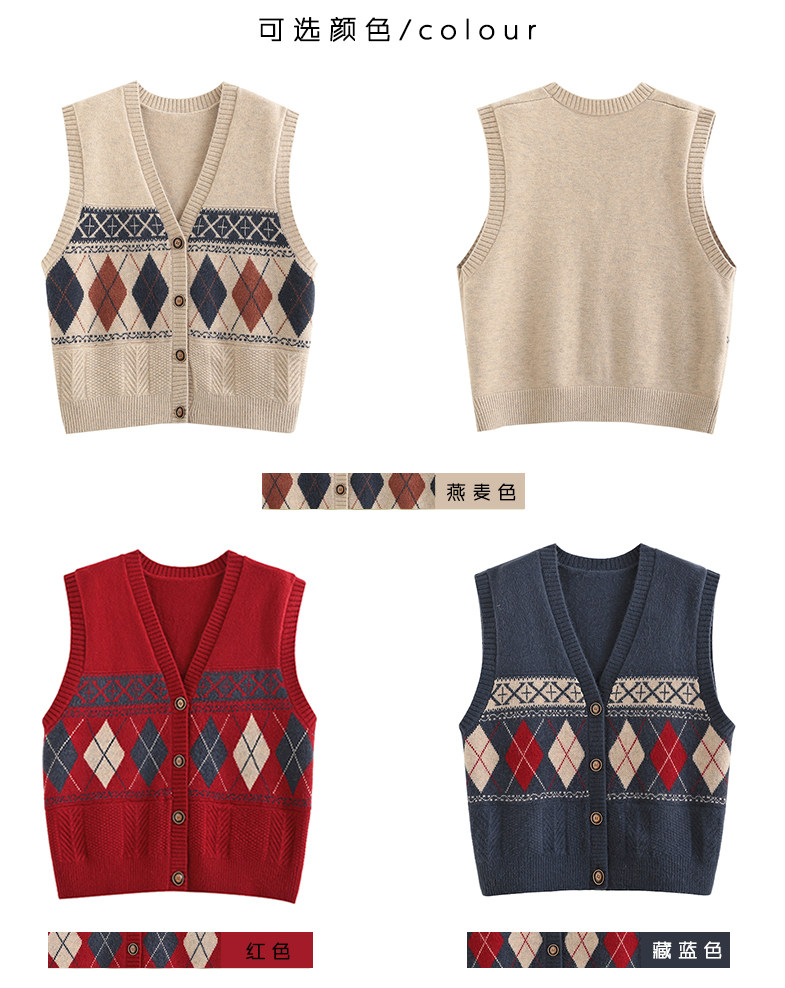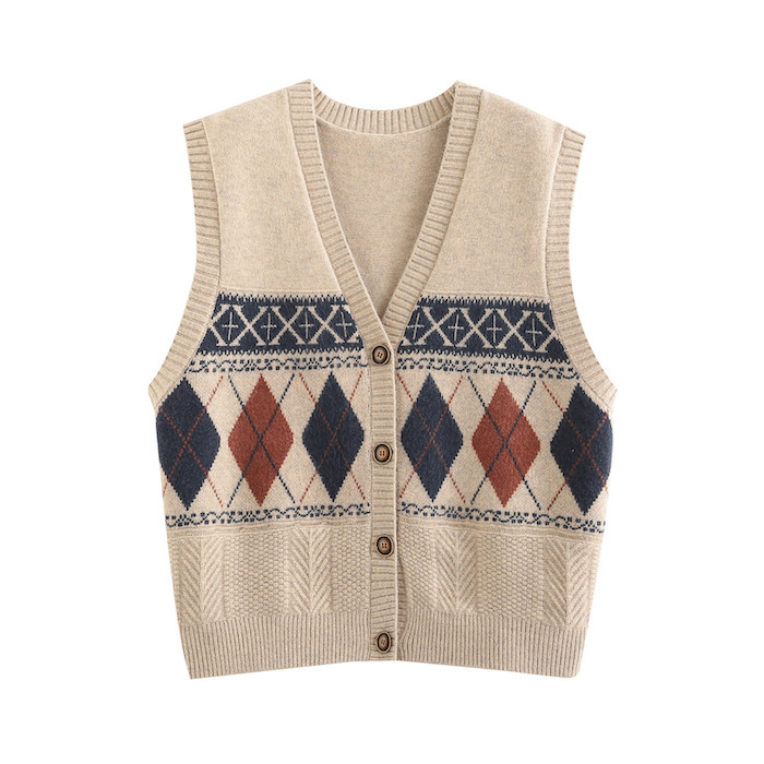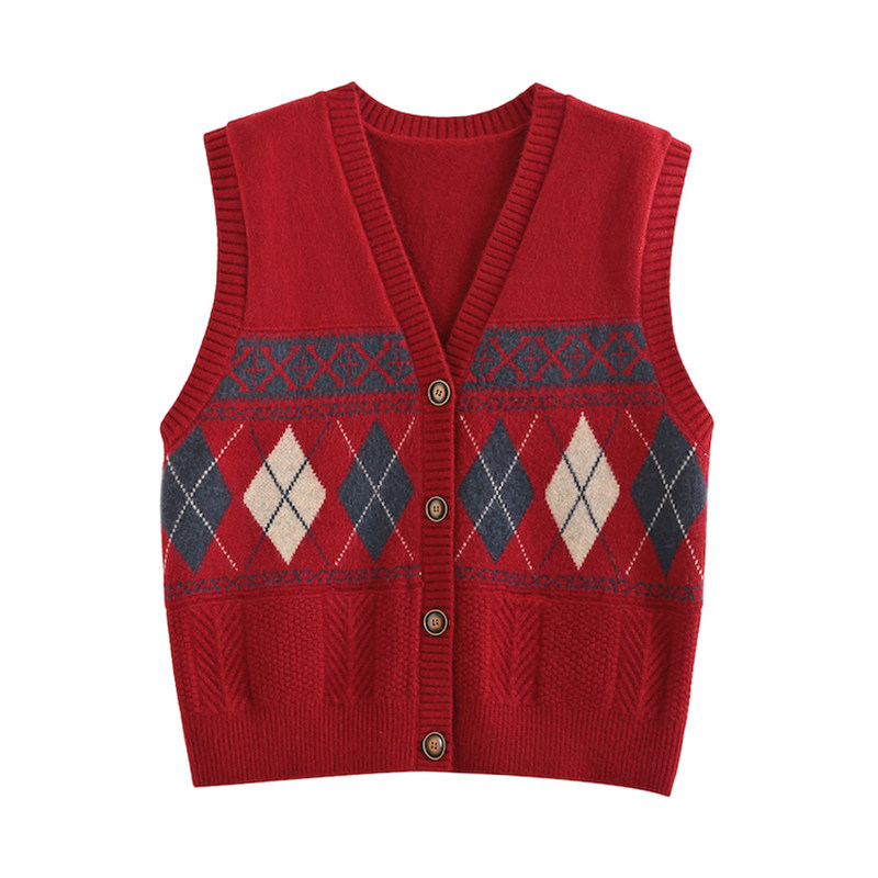 Демисезонный кардиган с ромбовидным узором, свитер, жилет, 2024 года, городской стиль, V-образный вырез, оверсайз