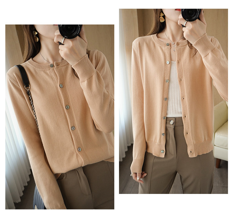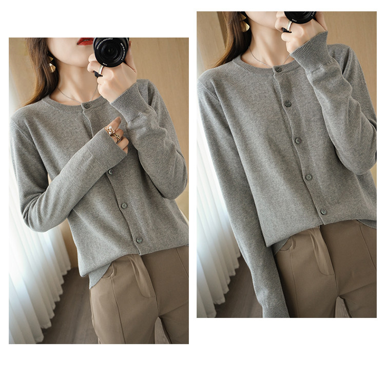 Осенний кардиган с круглым воротником, однотонный лонгслив, свитер, куртка, оверсайз
