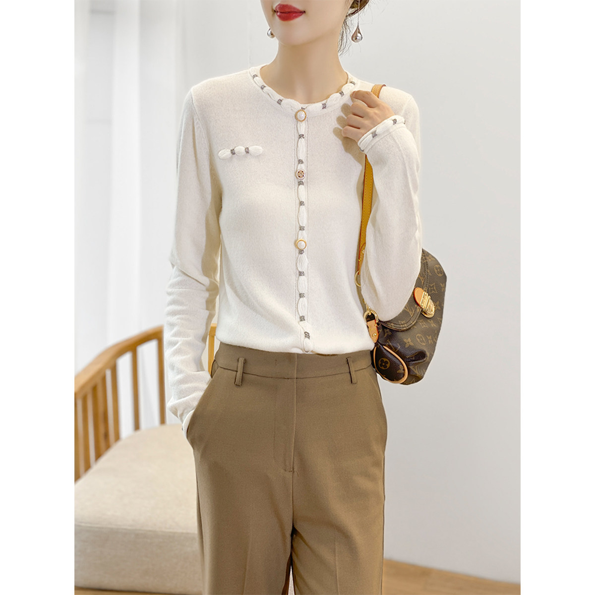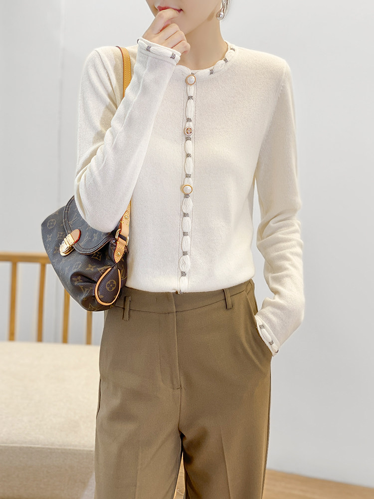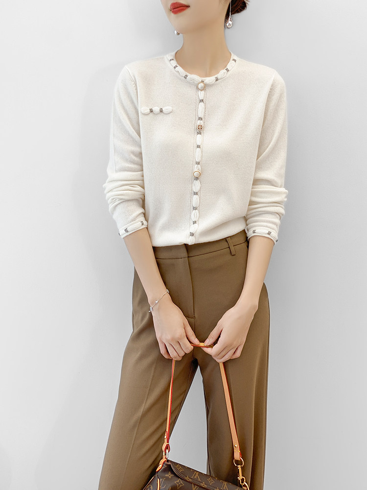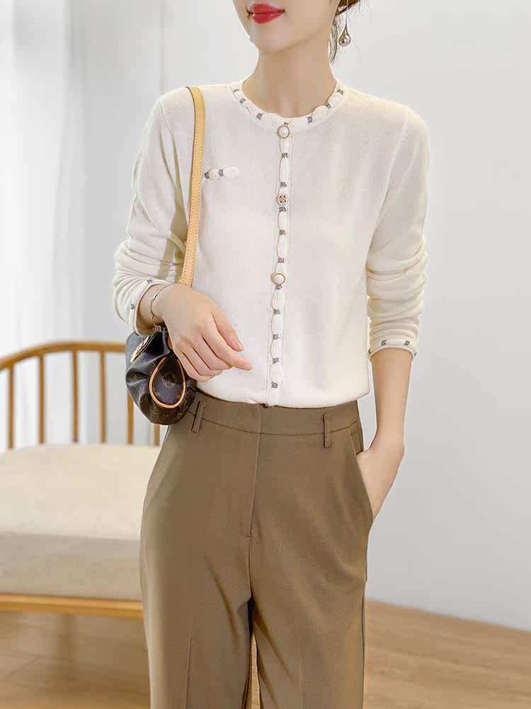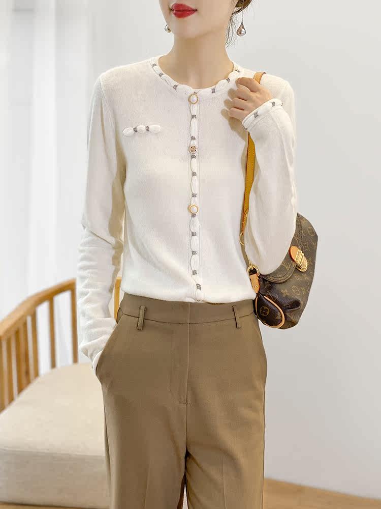 Белый лонгслив, шерстяной тонкий осенний свитер, французский стиль, коллекция 2021