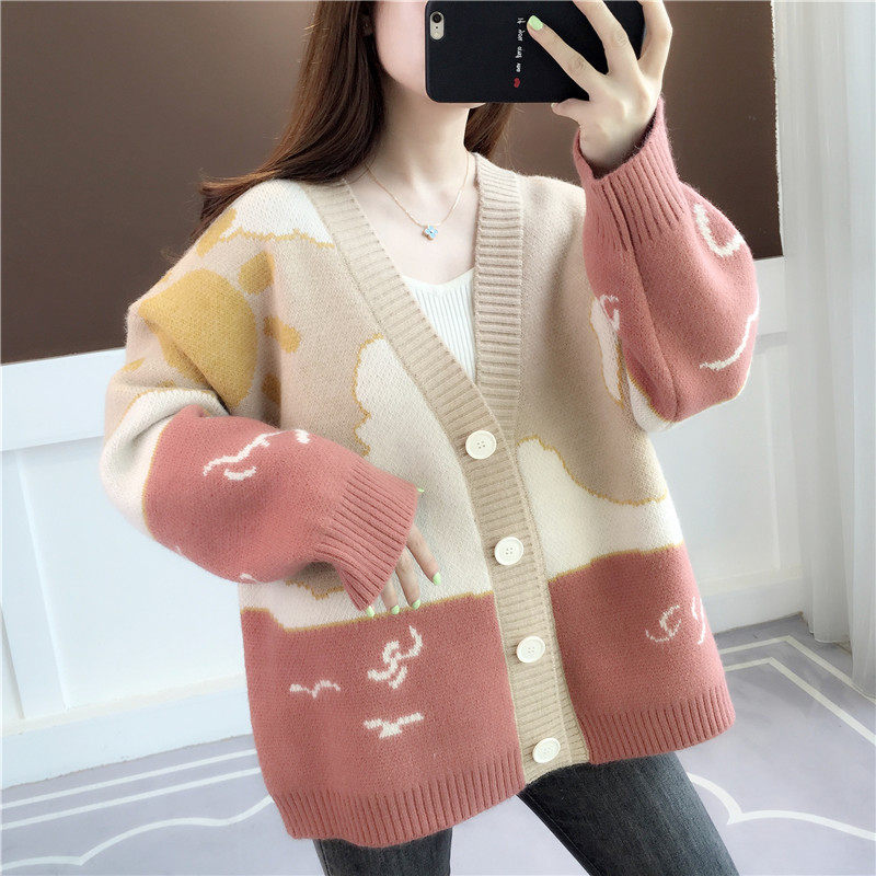 Трикотажный весенний демисезонный кардиган, свитер, куртка, 2024 года, городской стиль, в корейском стиле, оверсайз