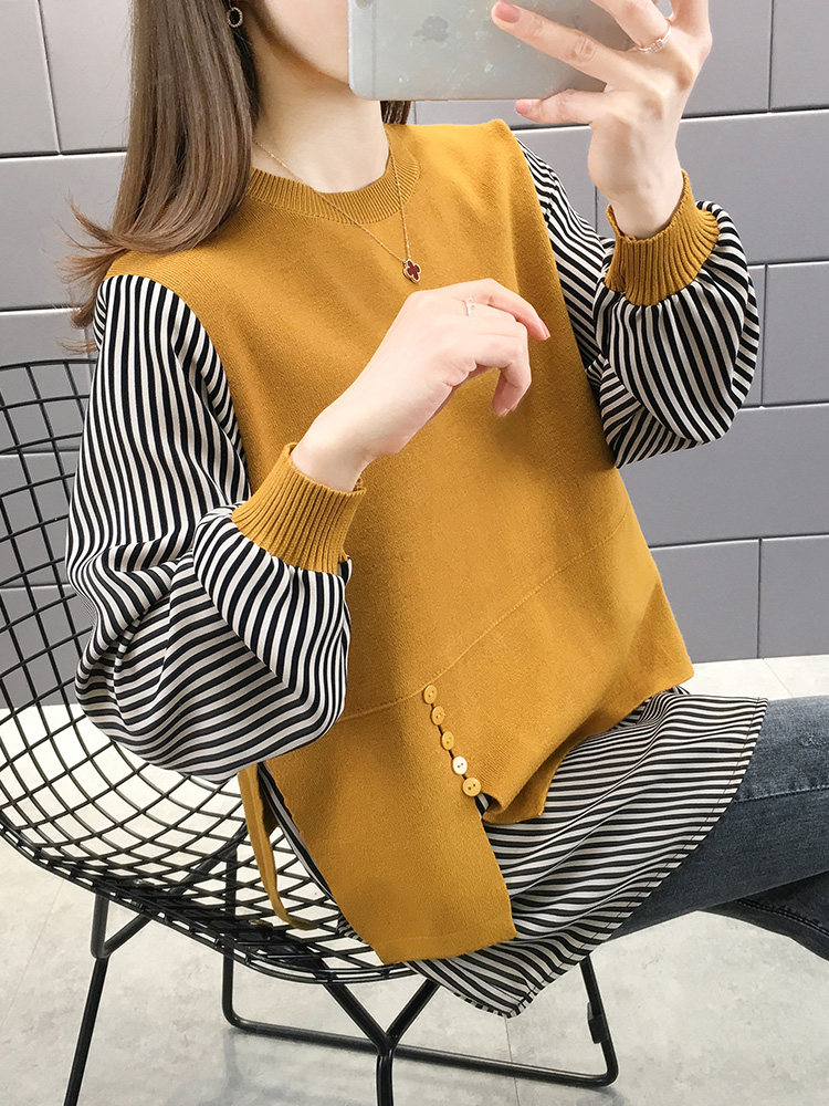 Осенняя рубашка, трикотажный комплект, свитер, куртка, коллекция 2023, оверсайз, в западном стиле