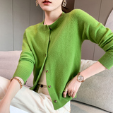 Весенний шерстяной трикотажный кардиган, короткая куртка, осенний кашемировый свитер с круглым воротником, облегающий крой