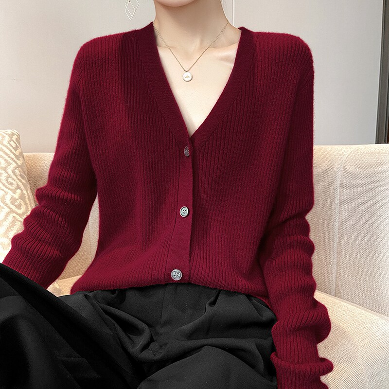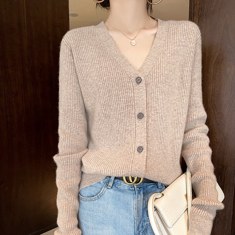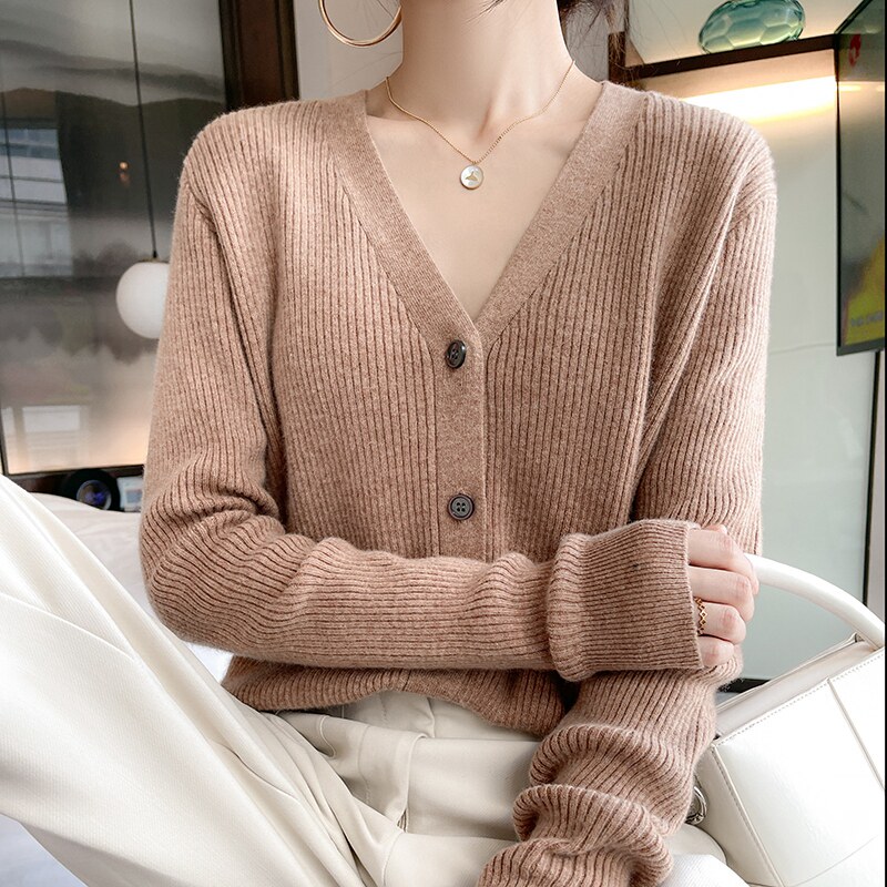 Осенний кардиган, лонгслив, шерстяной свитер, куртка, коллекция 2021, в корейском стиле, V-образный вырез