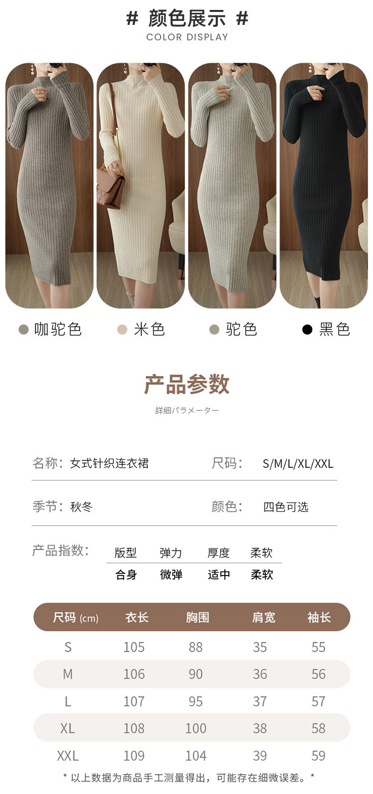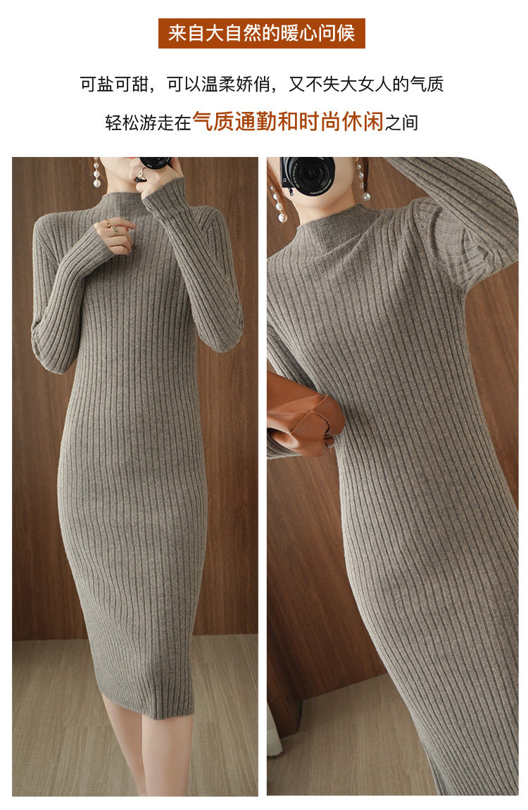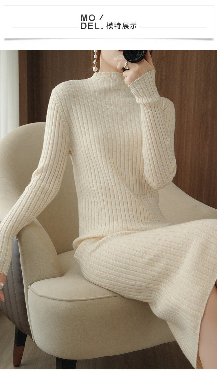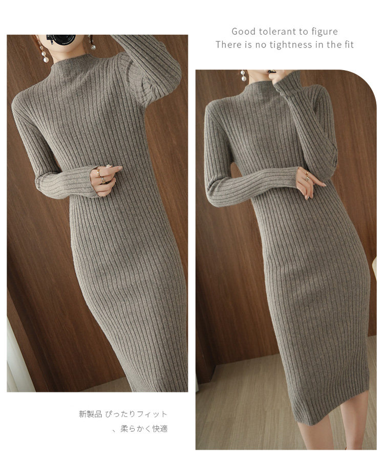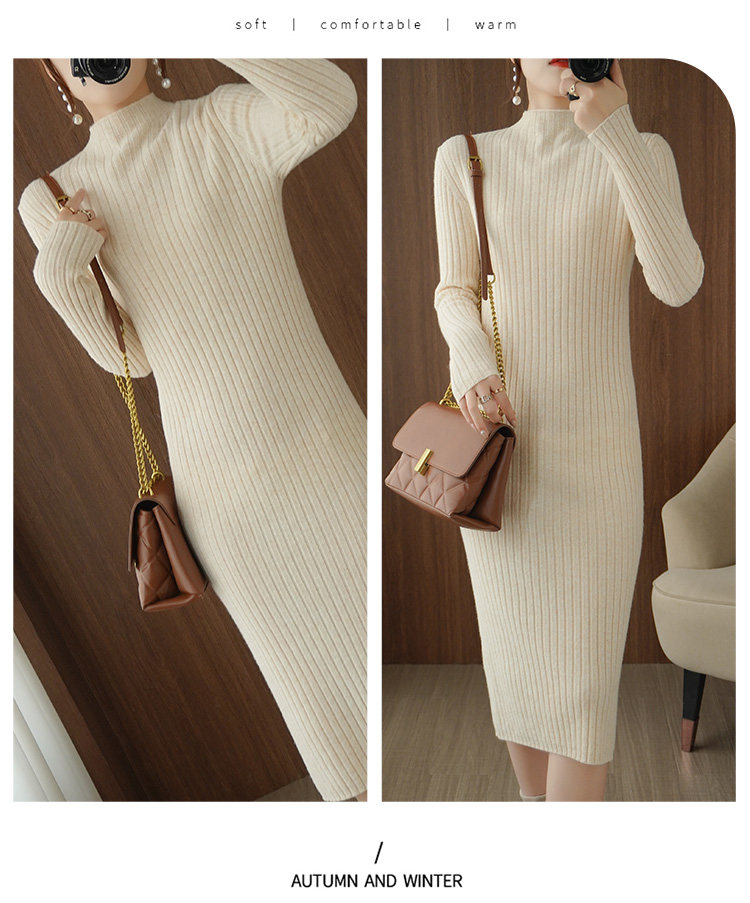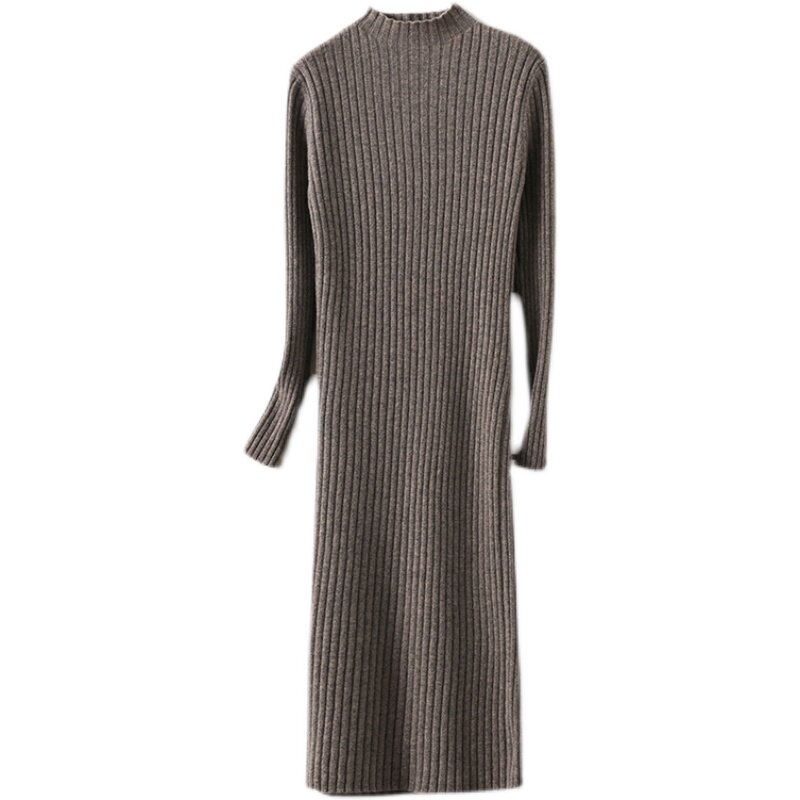 Длинное трикотажное платье, удерживающее тепло шерстяное платье, юбка, базовый лонгслив, средней длины, высокий воротник, облегающий крой