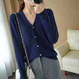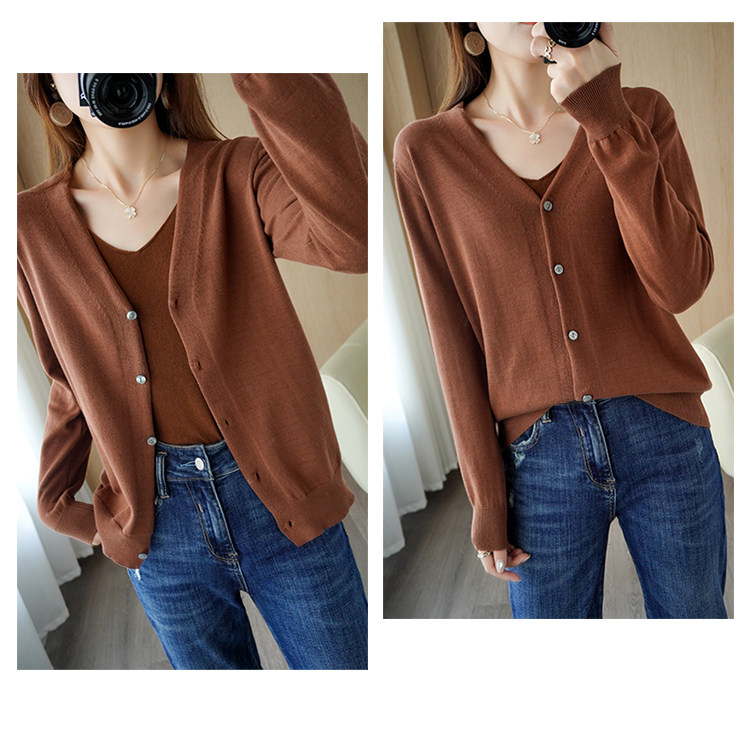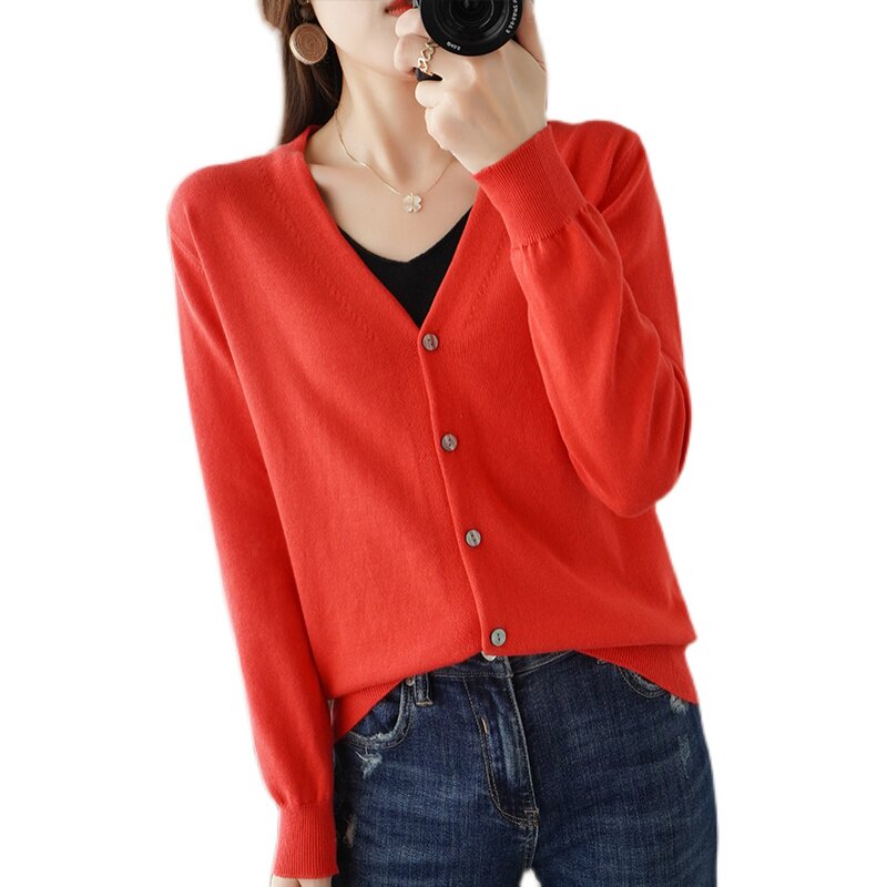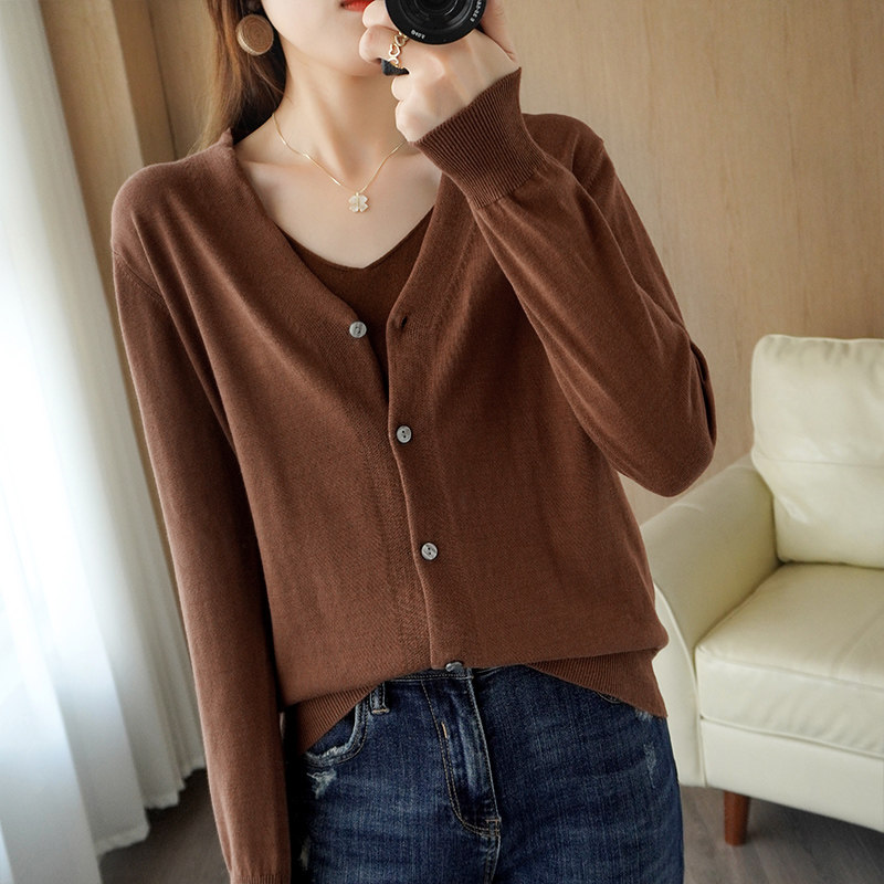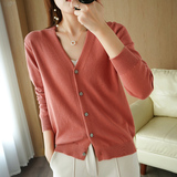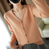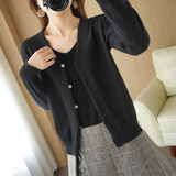 Демисезонный кардиган, трикотажный свитер, куртка, V-образный вырез, коллекция 2021, оверсайз, свободный крой