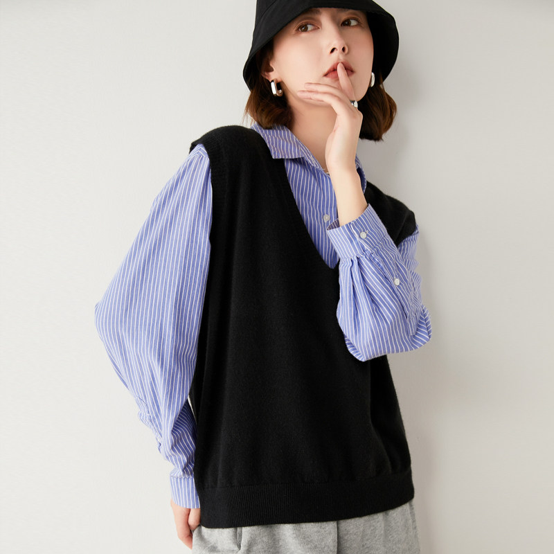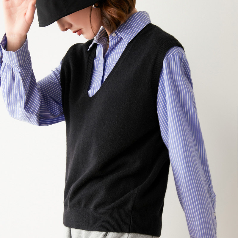 Трикотажный жилет без рукавов, шерстяная куртка, V-образный вырез, свободный крой
