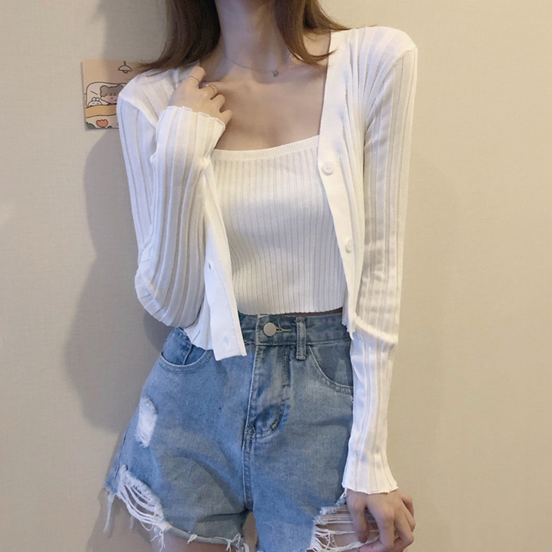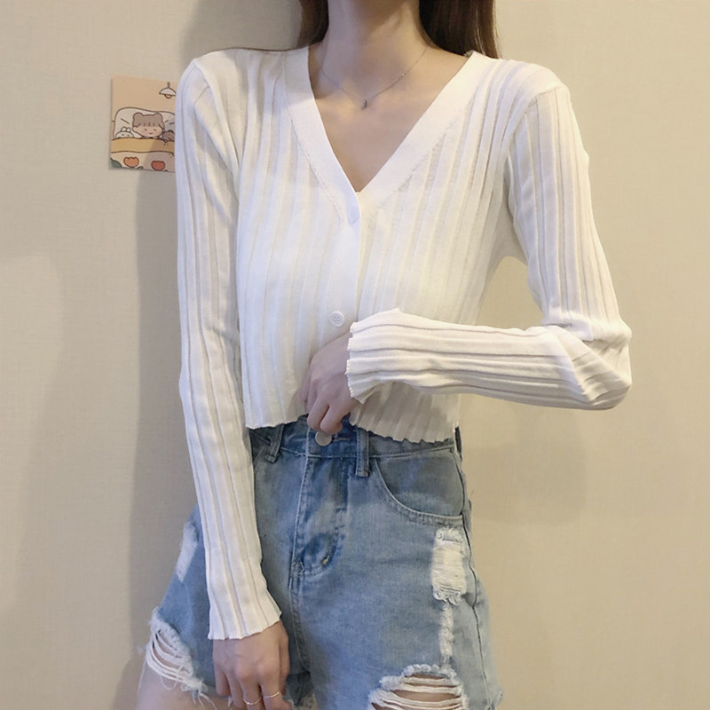 Осенний комплект, тонкий короткий белый лонгслив, кардиган, коллекция 2022, подходит для подростков, с рукавом