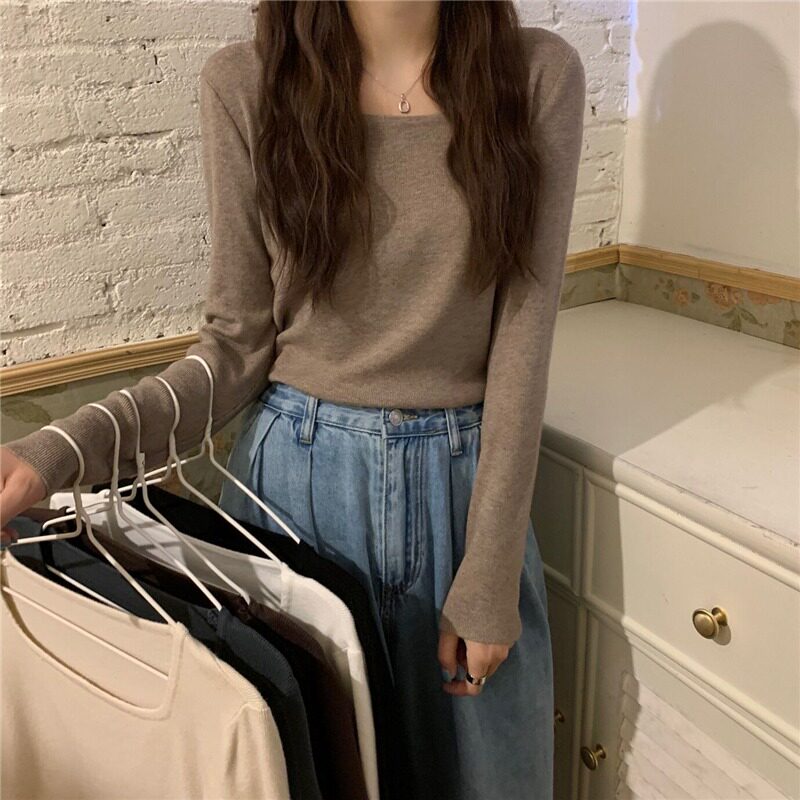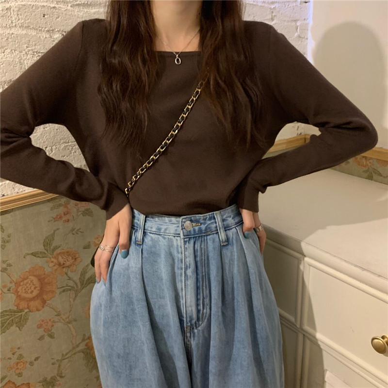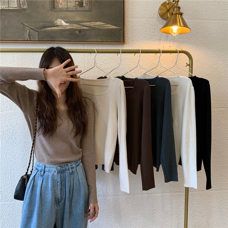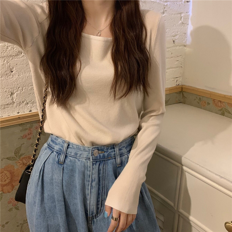 Приталенный трикотажный свитер, лонгслив, 2024 года, в корейском стиле