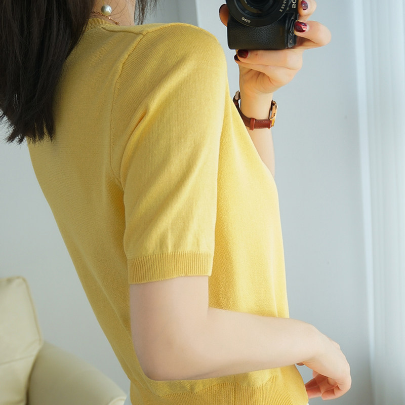 Хлопковый трикотажный базовый приятный телу короткий летний кардиган с круглым воротником