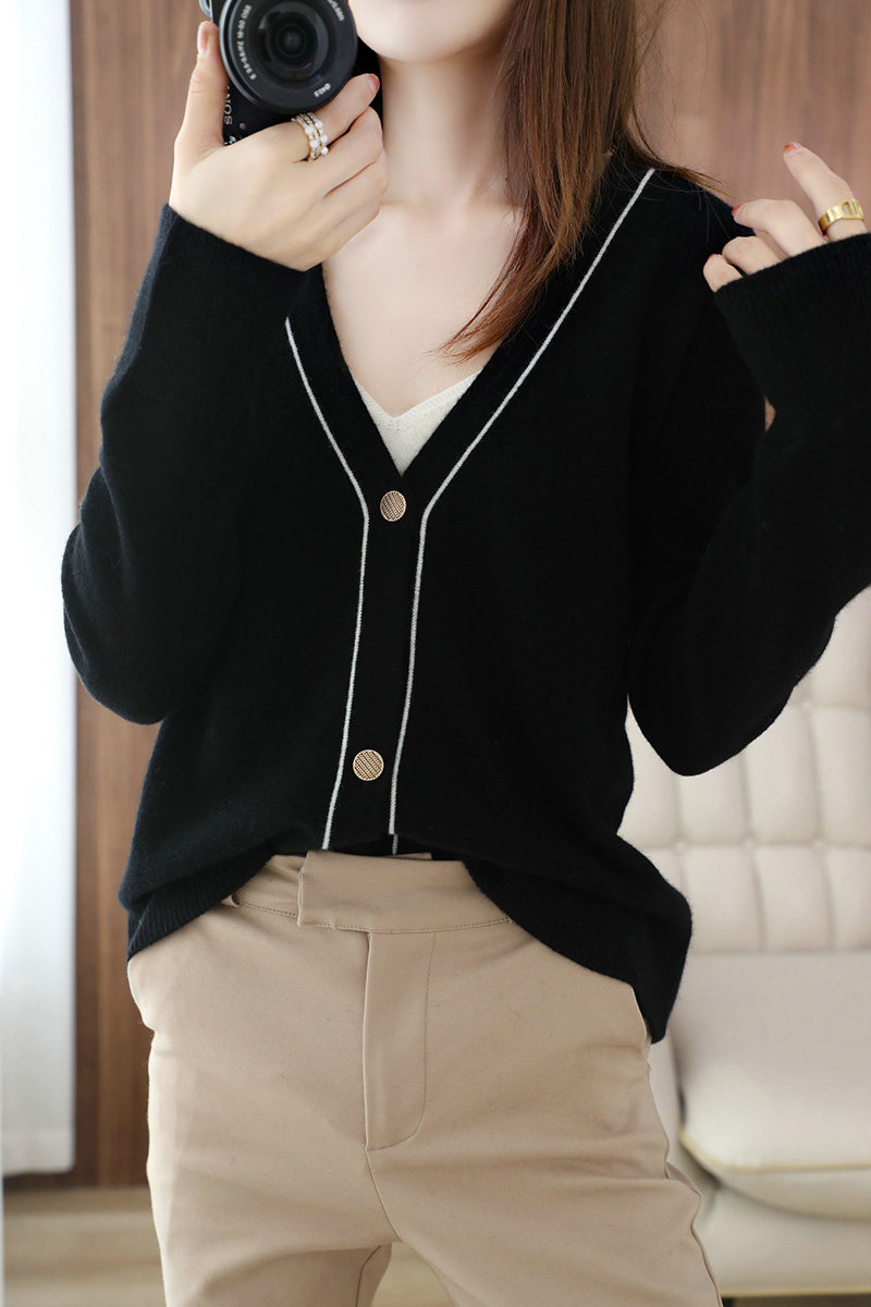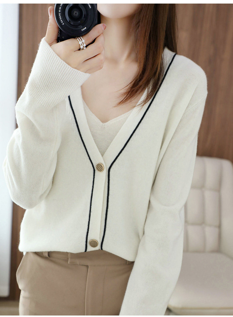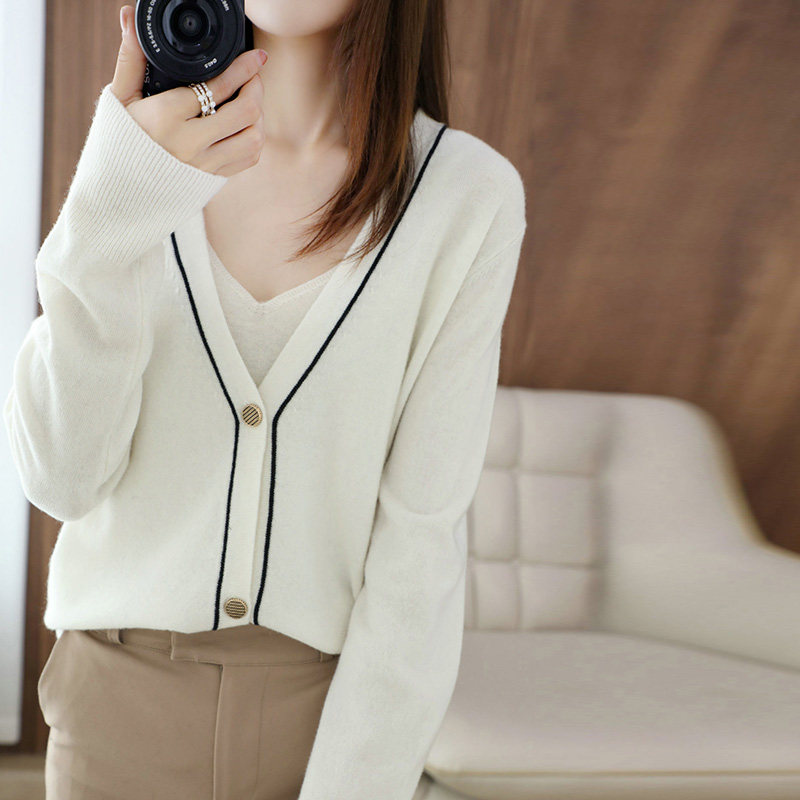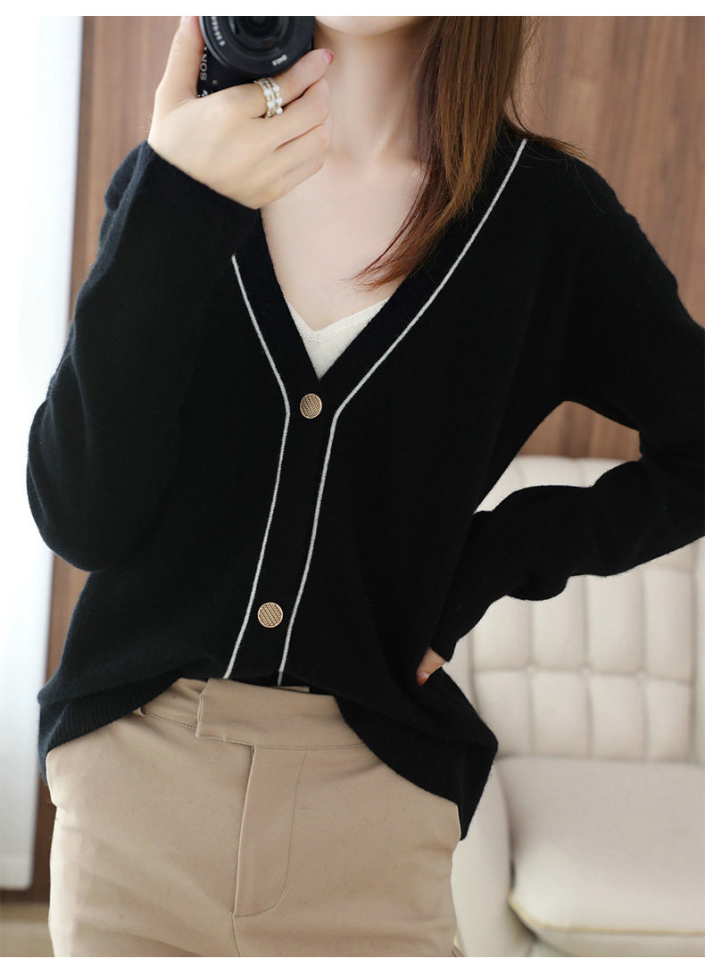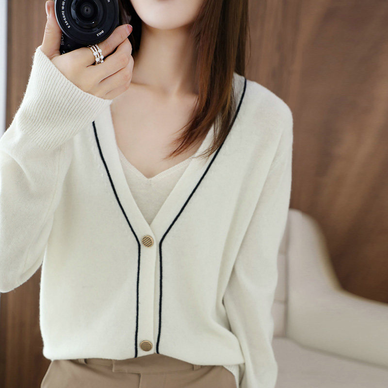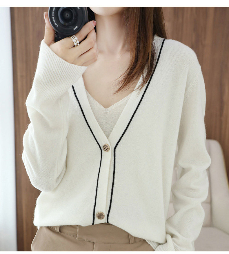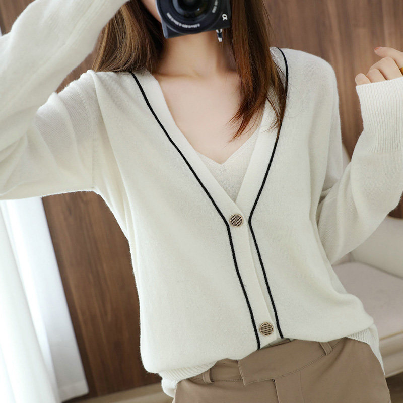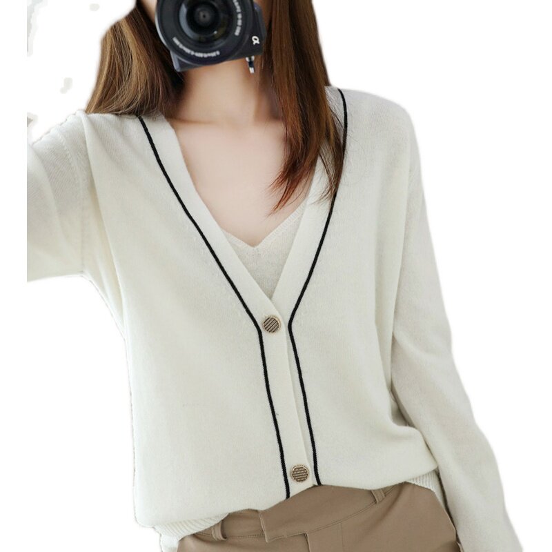 Демисезонный кашемировый кардиган, трикотажный свитер, куртка, коллекция 2021, V-образный вырез, оверсайз, большой размер