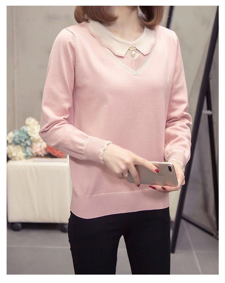 Трикотажный приятный телу осенний демисезонный универсальный комплект, свитер, коллекция 2022, большой размер, в западном стиле
