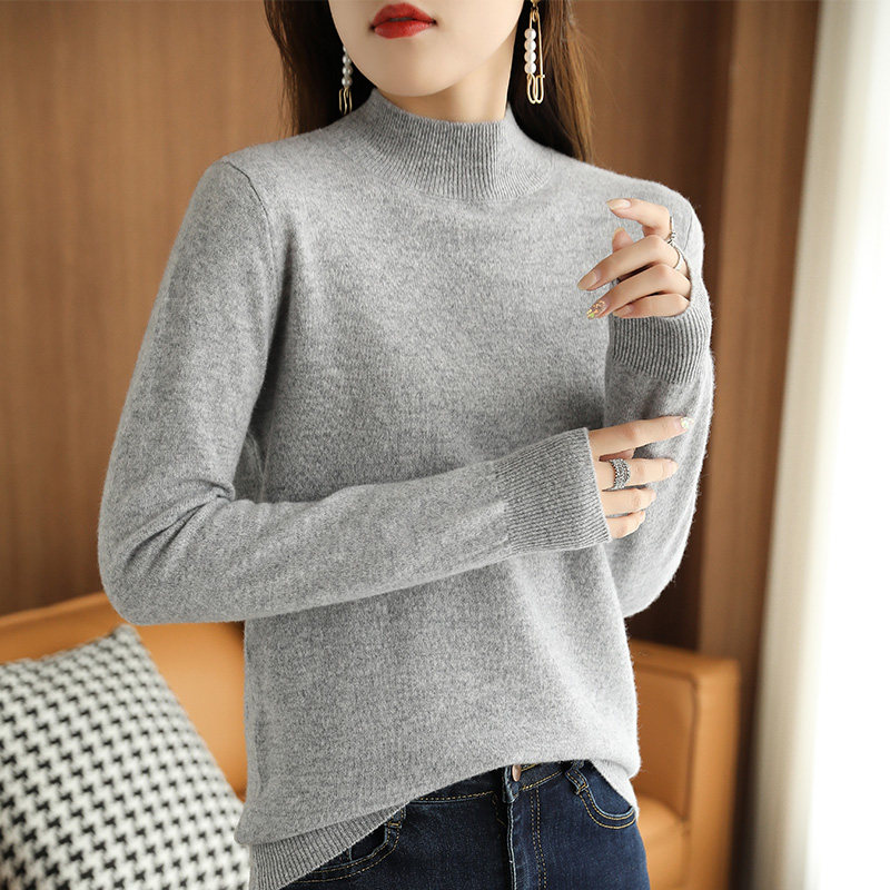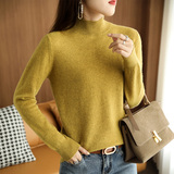 Кашемировый демисезонный свитер, базовый приятный телу короткий трикотажный лонгслив, высокий воротник, увеличенная толщина, в западном стиле