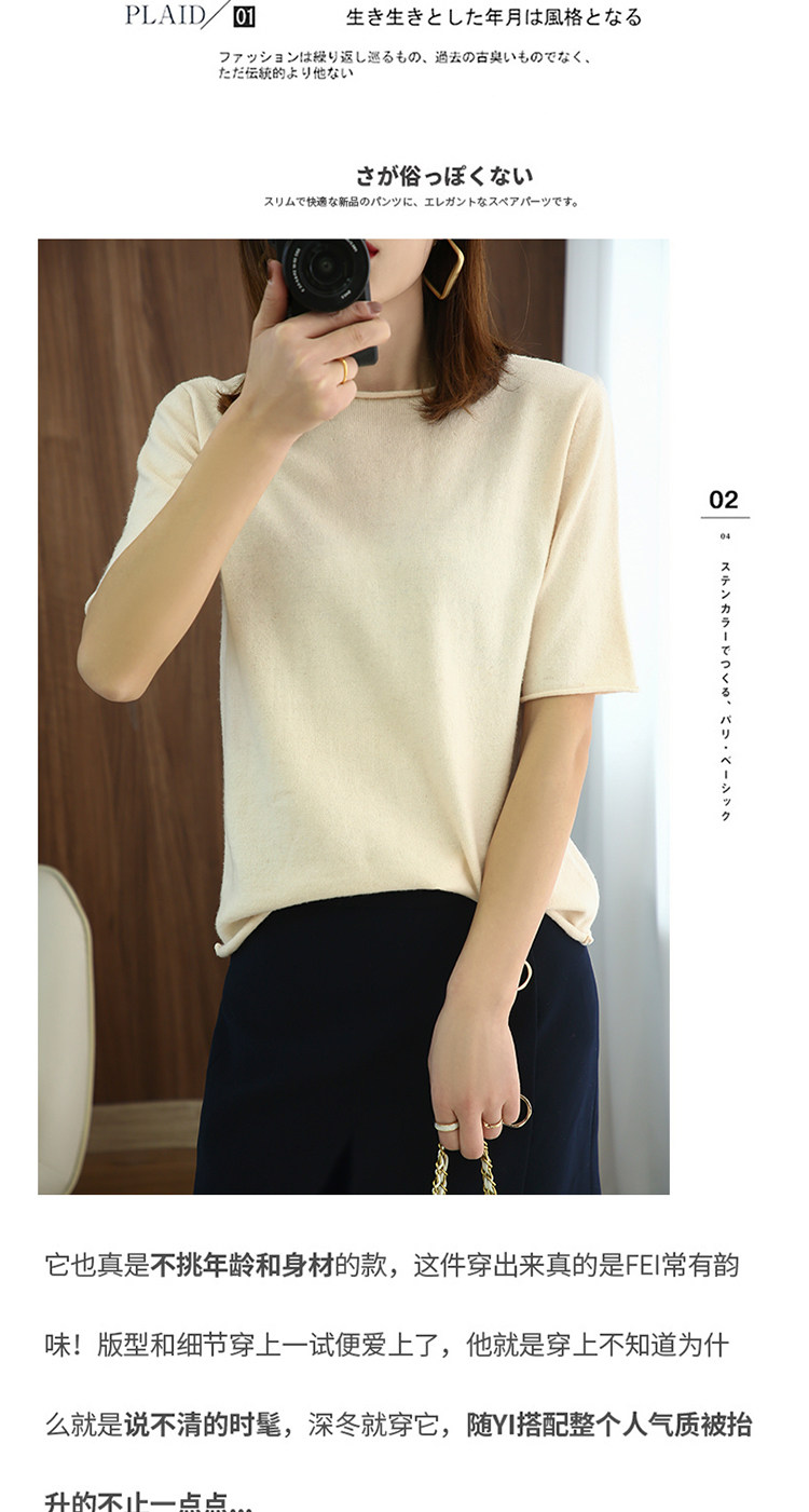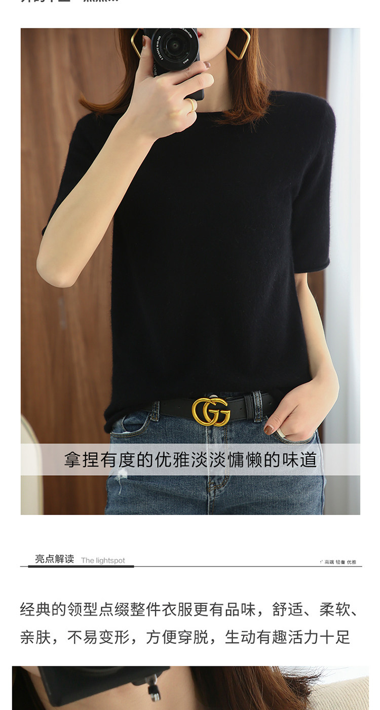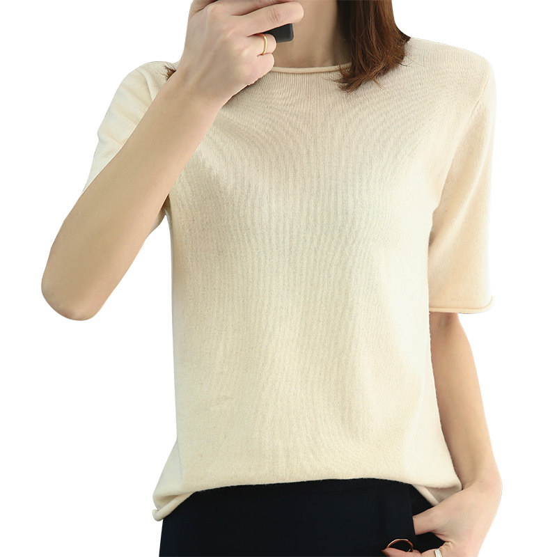 Кашемировый трикотажный короткий шерстяной свитер с круглым воротником, оверсайз