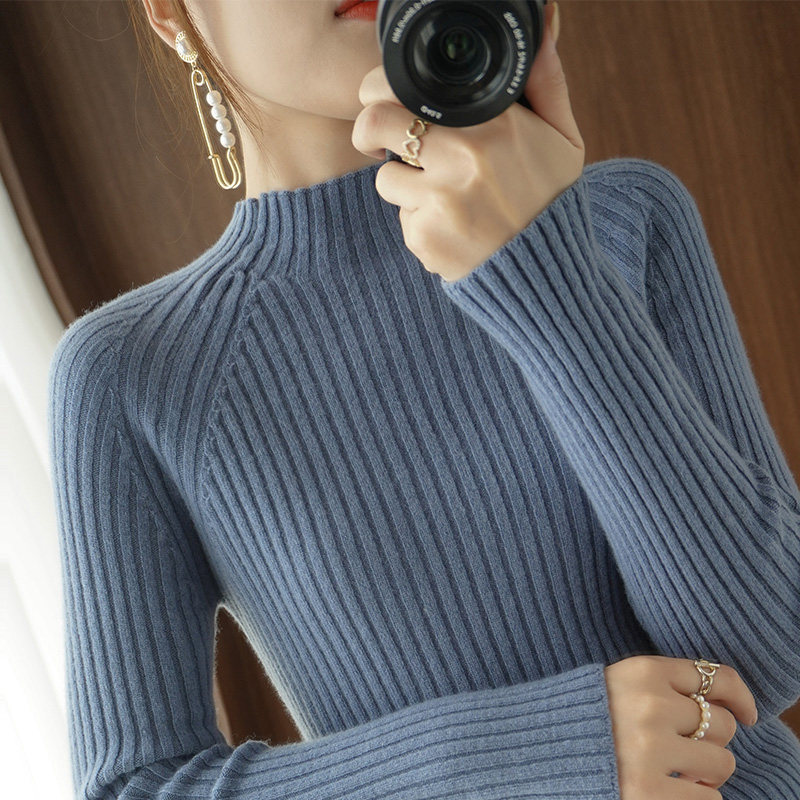 Демисезонный базовый приятный телу шерстяной свитер, 2021 года, в западном стиле, высокий воротник, облегающий крой