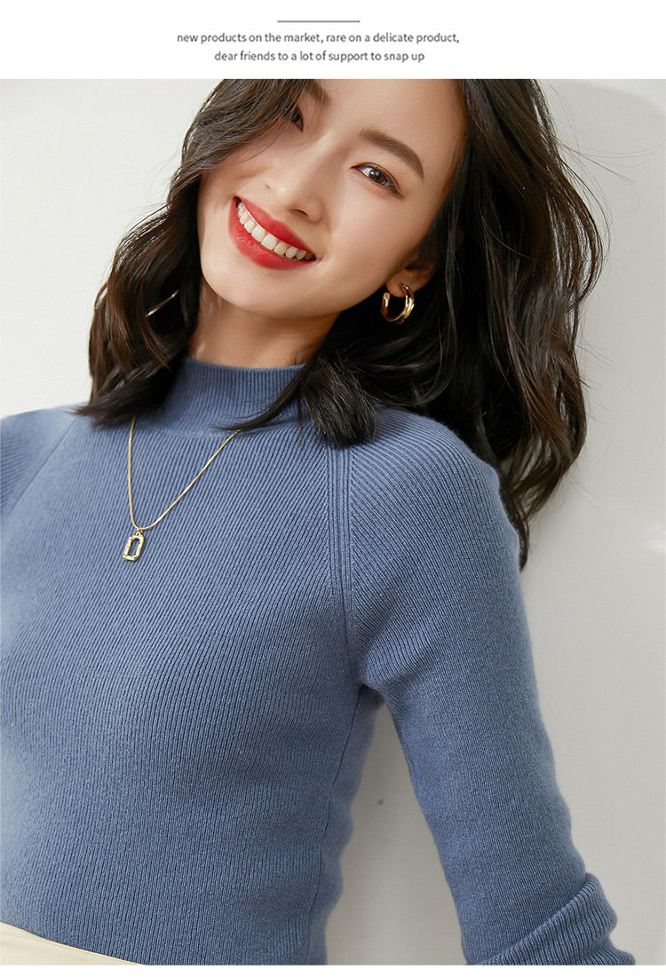 Осенний короткий трикотажный свитер, высокий воротник, в западном стиле, облегающий крой
