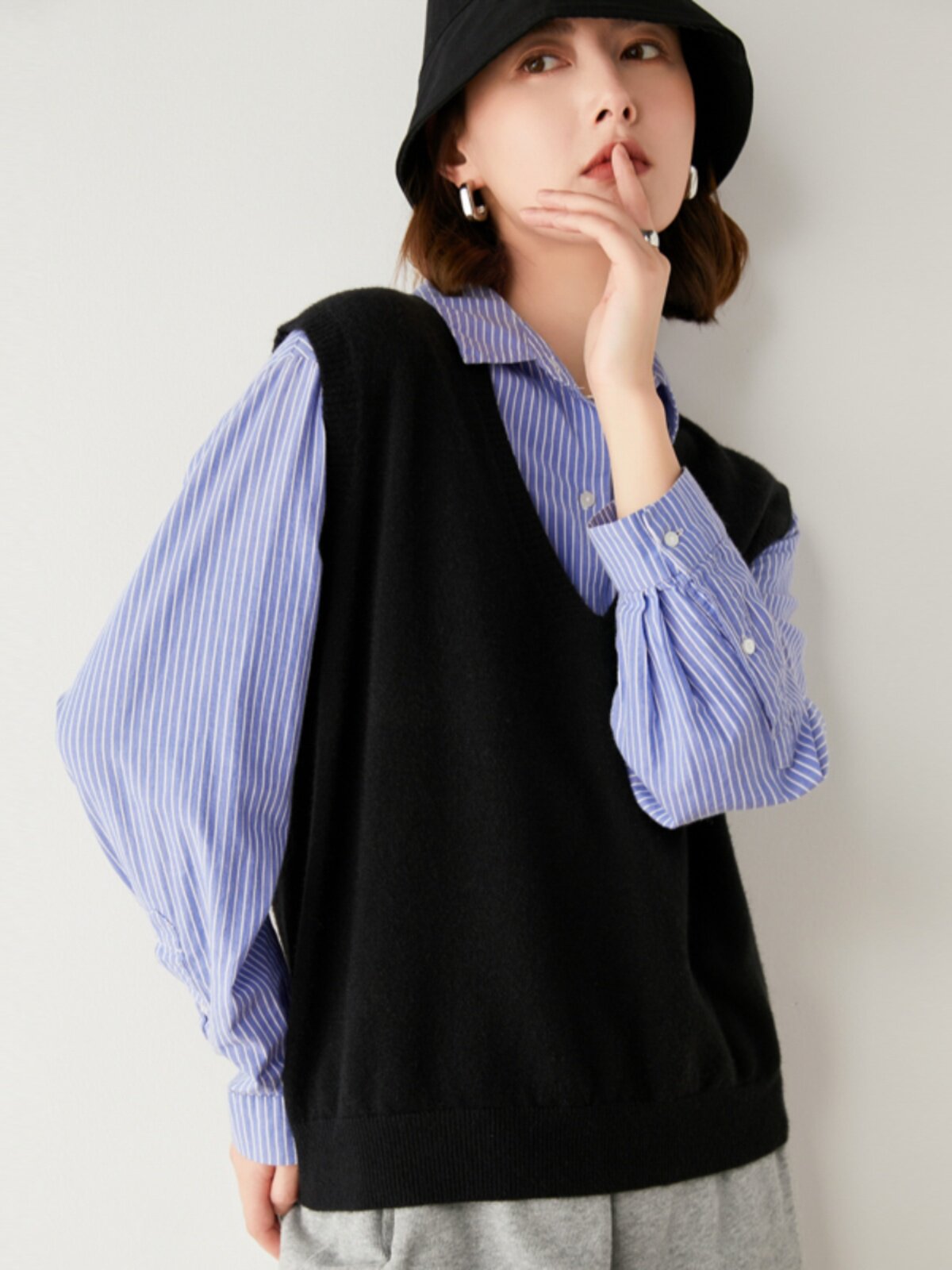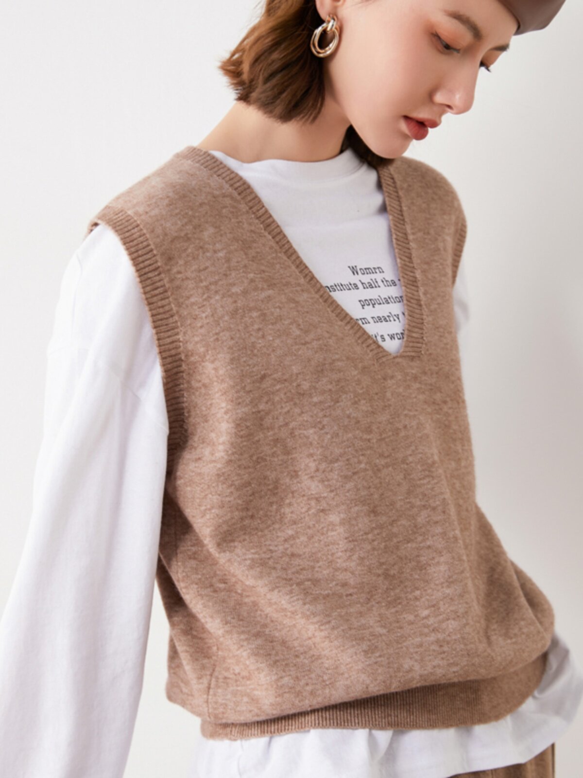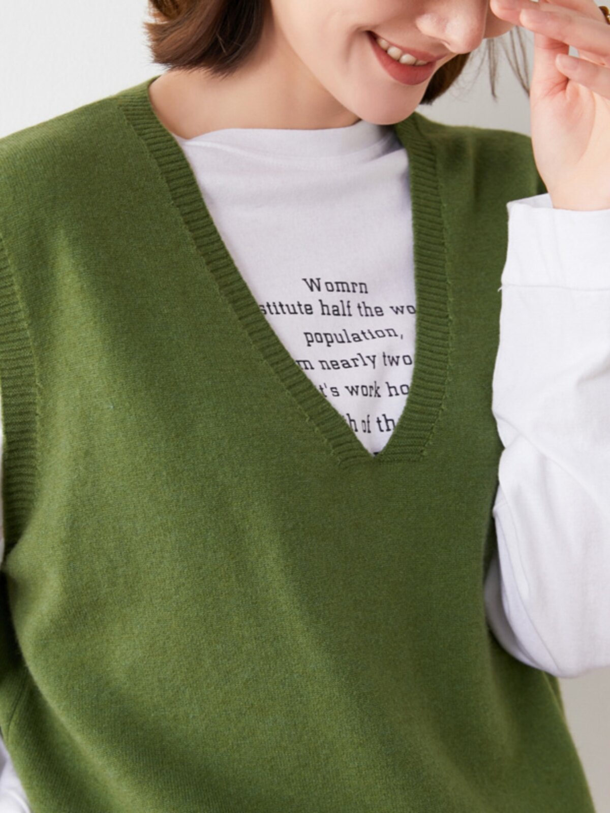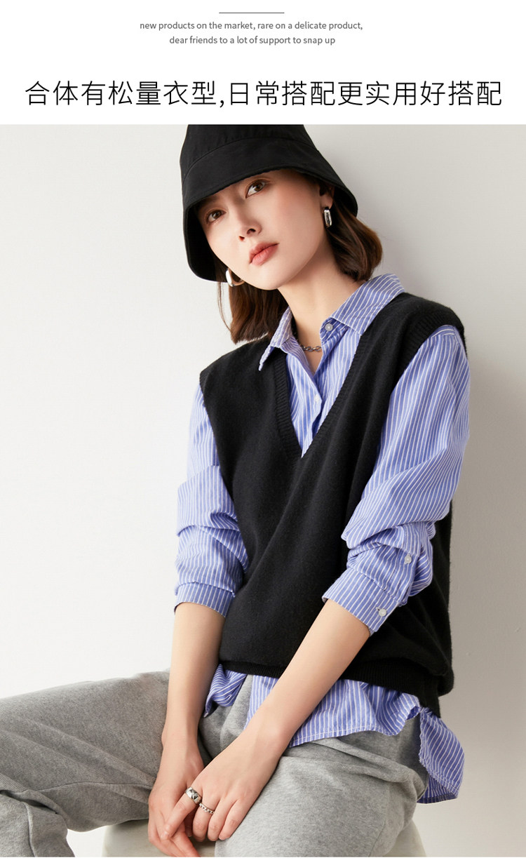 Трикотажный жилет, шерстяной осенний свитер без рукавов, свободный крой, V-образный вырез, в корейском стиле